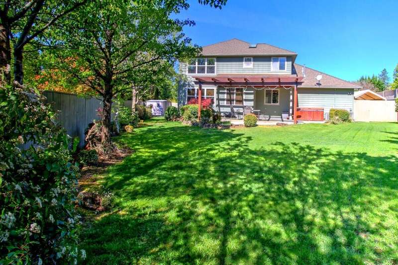 Welcome to this beautiful home in the desirable Summerfield neighborhood! This 2,483 sq ft residence offers 4 bedrooms, 2.5 bathrooms, and sits on a generous 0.24-acre lot. You'll love the elegant hardwood and tile flooring throughout the main living areas, as well as the stylish kitchen featuring granite countertops, a pantry, and ample cabinetry. The cozy family room is centered around a gas fireplace, perfect for relaxing evenings. The primary suite is a true retreat with ceiling fan, recessed lighting, and a luxurious ensuite bathroom with a large soaking tub and a tiled shower. Each of the four bedrooms has a walk-in closet. The oversized garage includes additional space perfect for a golf cart or extra storage. Only a 4 1/2 minute ride in the cart to the first tee of the RVCC! Step outside to enjoy a private and thoughtfully-designed backyard with a covered patio, hot tub, putting green, and side yard parking—ideal for RVs, boats, or other toys. This home checks all the boxes!