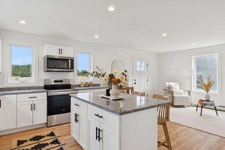 Move in ready! This thoughtfully designed single-level home balances ease and comfort. With an open-concept kitchen, living area at its core, this plan offers an easy flow and flexible space for everyday living. A primary bedroom with a walk-in close and direct access to the bath sits in the back of the house - with the second bedroom just off the hallway. Lots of closet space and a full basement offer plenty of storage. At Mineral Springs you will find excellent quality construction at a more accessible price, just 20 minutes from Portland. As part of the association you will have access to nature trails, a pond, a sports court, a playground and lots of open space. Mineral Springs is more than just a neighborhood—it's a place to feel grounded, connected, and at home. This is a limited opportunity for income-qualified buyers to own a new home in one of Maine's most desirable communities. Various home styles are available — reach out to learn more about qualifications and available floor plans!
