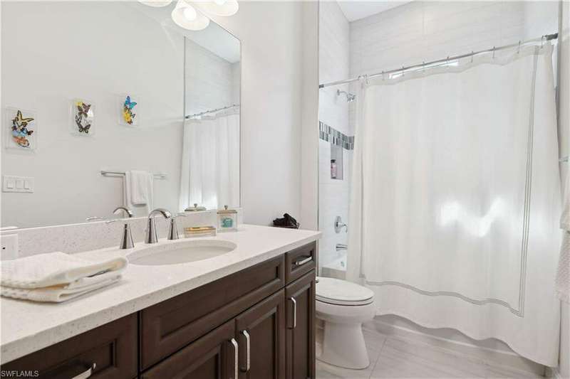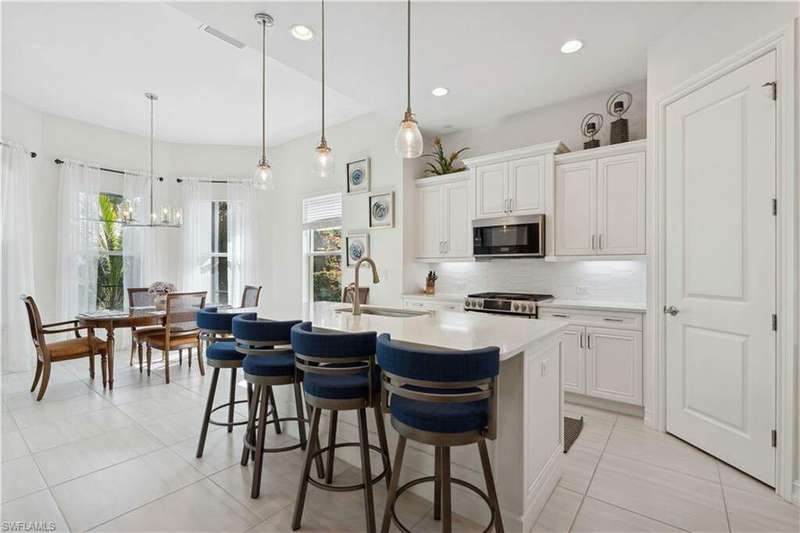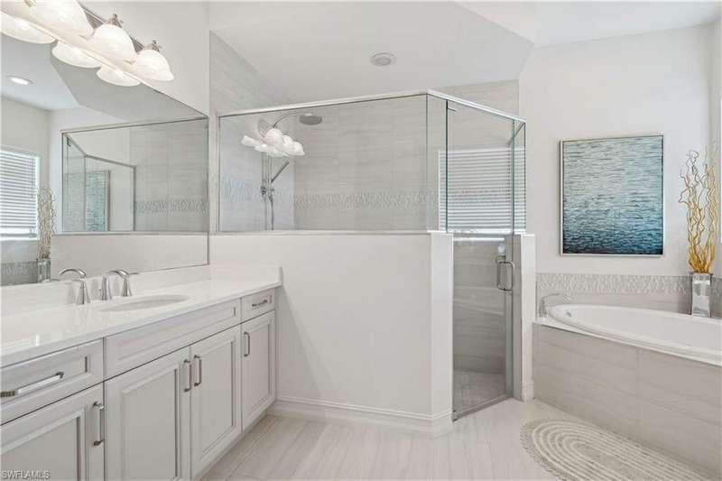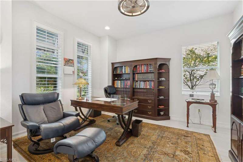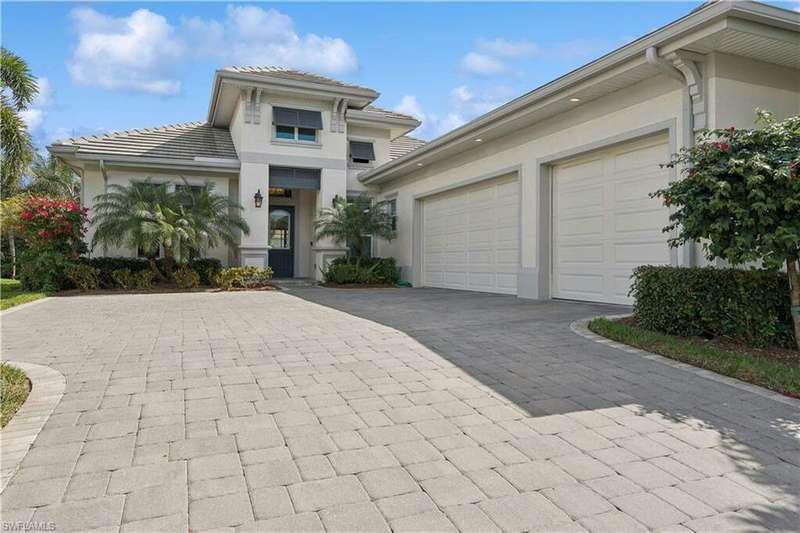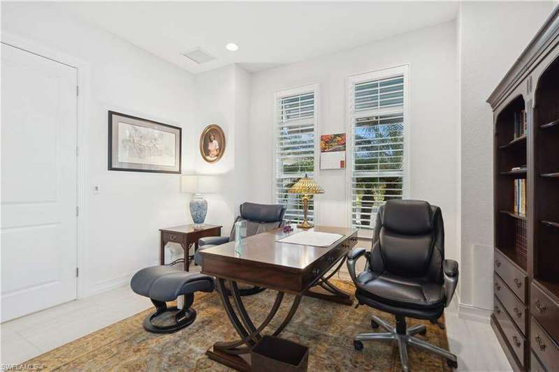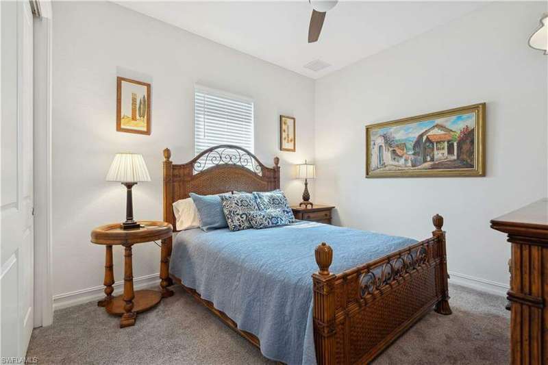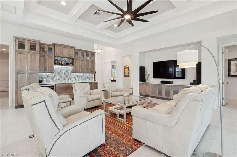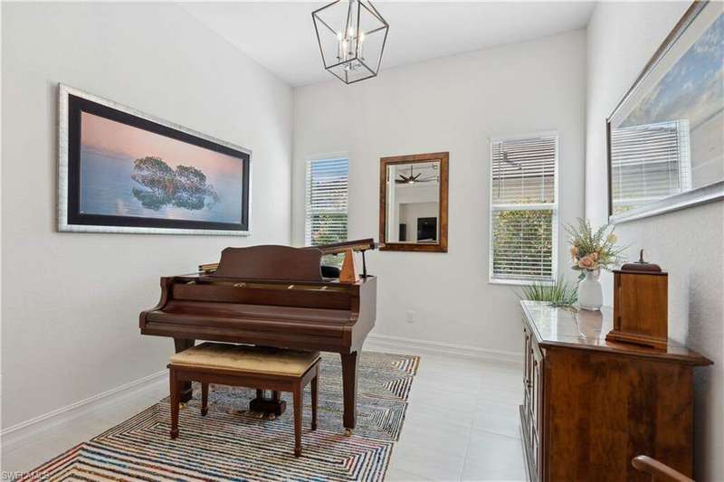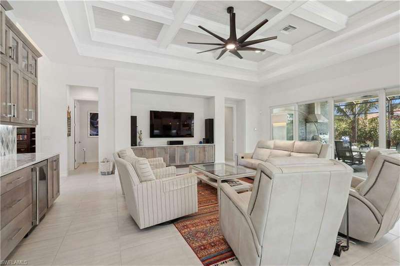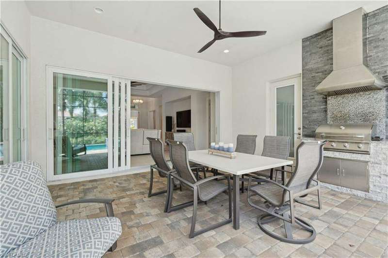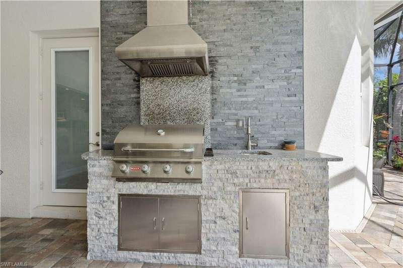 Impeccable details are showcased in this 4 bedroom, 2.5 bath, climate controlled 3 car garage estate. This home is a true hidden gem in the most amazing community located within minutes to Gulf Coast Hospital with easy access to area islands; beaches; RSW airport and shopping. This exquisite luxury home is situated amongst a very well maintained gated community that boasts one of the best kayaking excursions in Lee County, community kayaks are available or bring your own - and paddle through the mangrove covered shorelines; or enjoy fishing in the back bay or end up at Lover's Key to enjoy a picnic on the beach. The kitchen boasts gas cooking with an upgraded brand new GE Profile stove installed in January 2025. Upgraded built-in beverage center with wine cooler and beverage fridge with luxury cabinets match the upgraded luxury built-in TV center, cable is provided by the community with the HOA. The ceiling treatments were recently added in the living room and entry as well as some upgraded light fixtures, a new recirculating water heater pump for quick hot water was recently installed; new landscaping front and back; new pool heater 2025; new pool lights in pool/spa. New pool equipment. Upgraded CA closet systems. The HOA maintains the landscaping as well as exterior pest control; hedging; street maintenance; & community facilities. The elegant and tropical lanai and pool area are very private and boast an outdoor kitchen with a built-in grill with a nice covered area. The very large 3 car garage is climate controlled and includes a nice workbench area. This home is well equipped with wind rated windows and has never flooded. Community amenities include a fitness room; firepit area; gorgeous pool area overlooking a waterway out to the Gulf of Mexico/America; small library area; and a gorgeous large event room with bar/kitchen area; outdoor grilling and kitchen area at community pool; community docks and kayaks. Built by Stock this home is almost like new construction. Schedule your private showing to really see the level of upgrades and finishes this estate boasts.