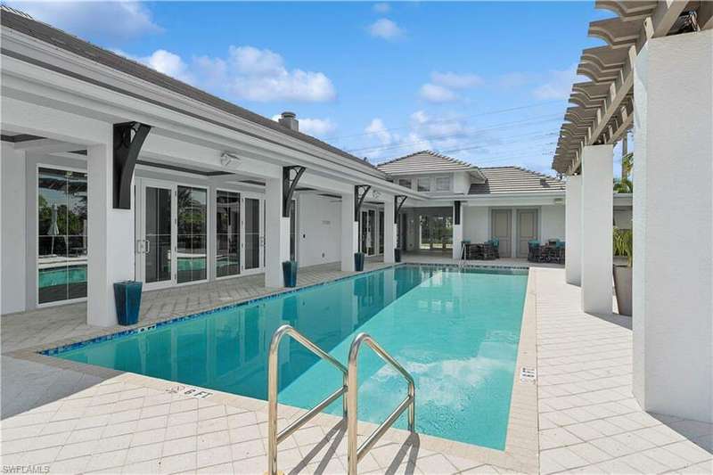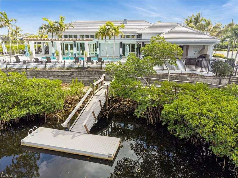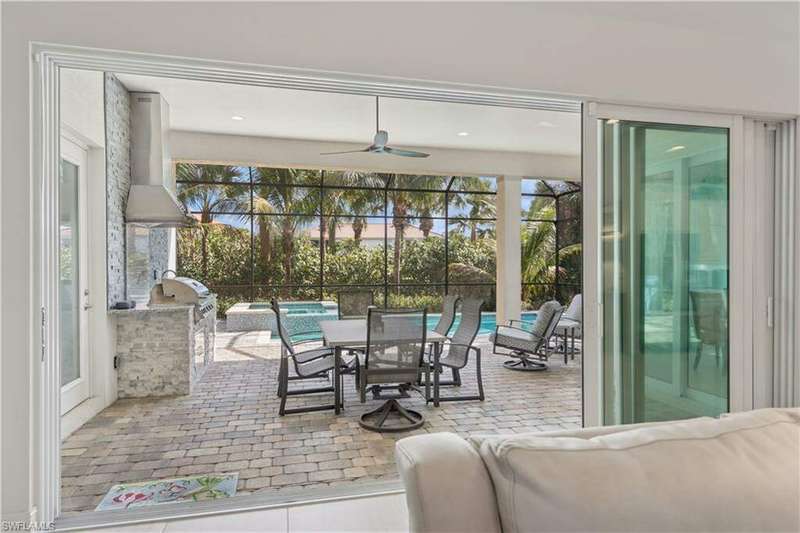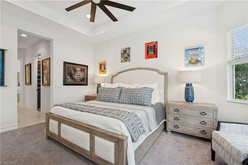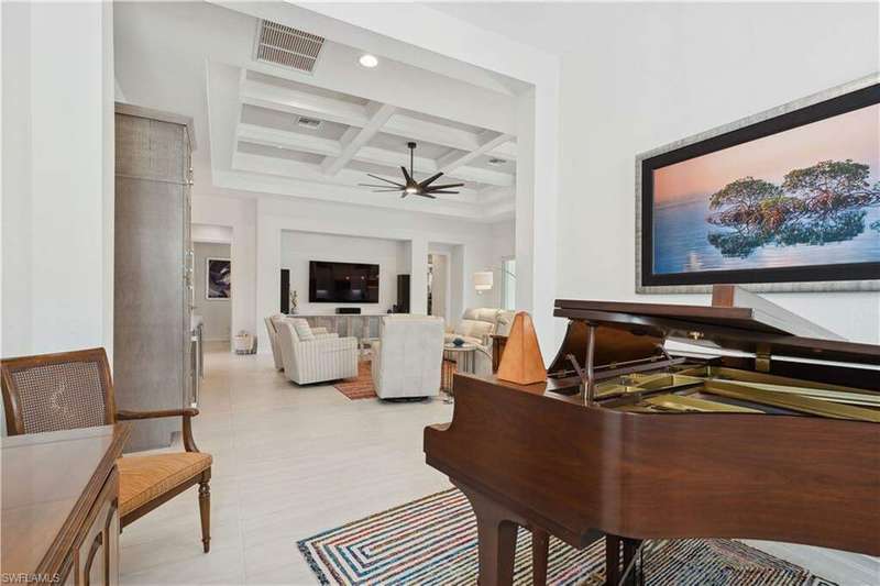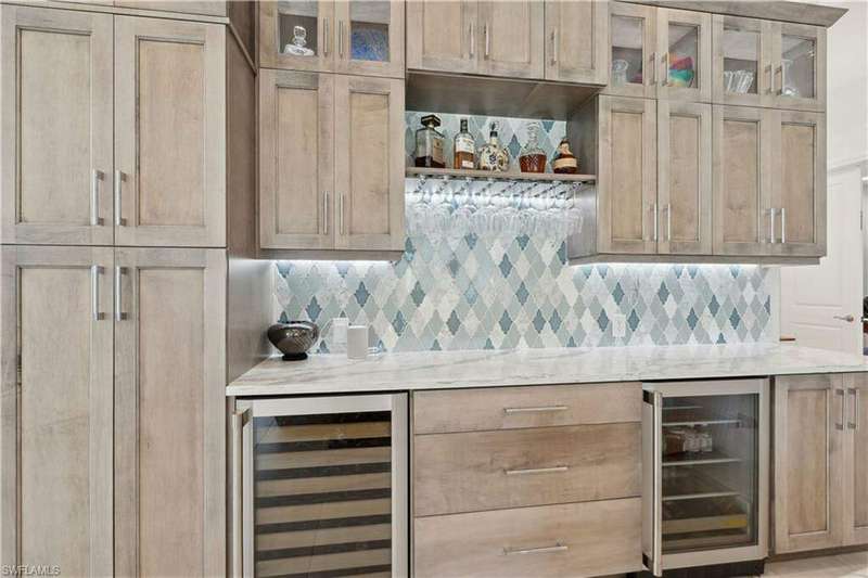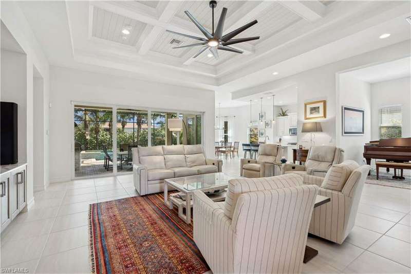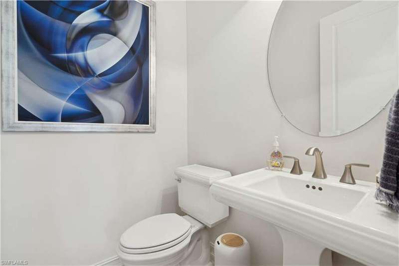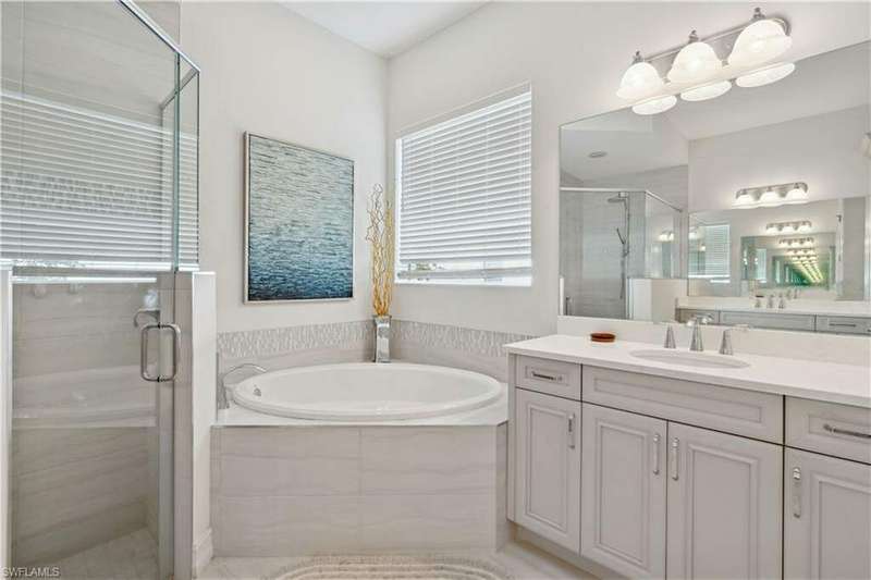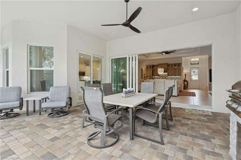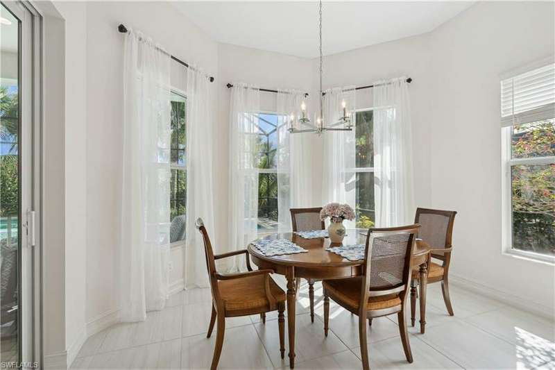 Impeccable details are showcased in this 4 bedroom, 2.5 bath, climate controlled 3 car garage estate. This home is a true hidden gem in the most amazing community located within minutes to Gulf Coast Hospital with easy access to area islands; beaches; RSW airport and shopping. This exquisite luxury home is situated amongst a very well maintained gated community that boasts one of the best kayaking excursions in Lee County, community kayaks are available or bring your own - and paddle through the mangrove covered shorelines; or enjoy fishing in the back bay or end up at Lover's Key to enjoy a picnic on the beach. The kitchen boasts gas cooking with an upgraded brand new GE Profile stove installed in January 2025. Upgraded built-in beverage center with wine cooler and beverage fridge with luxury cabinets match the upgraded luxury built-in TV center, cable is provided by the community with the HOA. The ceiling treatments were recently added in the living room and entry as well as some upgraded light fixtures, a new recirculating water heater pump for quick hot water was recently installed; new landscaping front and back; new pool heater 2025; new pool lights in pool/spa. New pool equipment. Upgraded CA closet systems. The HOA maintains the landscaping as well as exterior pest control; hedging; street maintenance; & community facilities. The elegant and tropical lanai and pool area are very private and boast an outdoor kitchen with a built-in grill with a nice covered area. The very large 3 car garage is climate controlled and includes a nice workbench area. This home is well equipped with wind rated windows and has never flooded. Community amenities include a fitness room; firepit area; gorgeous pool area overlooking a waterway out to the Gulf of Mexico/America; small library area; and a gorgeous large event room with bar/kitchen area; outdoor grilling and kitchen area at community pool; community docks and kayaks. Built by Stock this home is almost like new construction. Schedule your private showing to really see the level of upgrades and finishes this estate boasts.