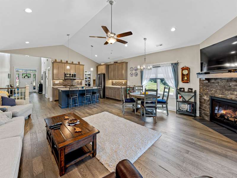 Discover sophisticated living in this exquisitely crafted townhouse, ideally located near the Sports & Wellness Center and the Clubhouse?featuring fine dining, elegant lounges, meeting spaces, and all set amidst a picturesque, year-round golf course. The expansive open-concept design is elevated by rich hardwood floors, gleaming quartz countertops, GE Profile appliances, custom cabinetry, designer vanities, upscale lighting, curated paint palettes, and fully tailored closets. A soaring cultured stone fireplace adds dramatic warmth and character. Enjoy tranquil community features including a stream-fed fishing pond, fire pit, and scenic gathering areas. Resort-style amenities abound: a heated pool and spa, tennis, pickleball, bocce, and a lively calendar of social events. The state-of-the-art Fitness Center offers advanced equipment, group classes, and massage therapy. POA, HOA, and club membership fees apply. This is a Standalone Single Family Townhome.