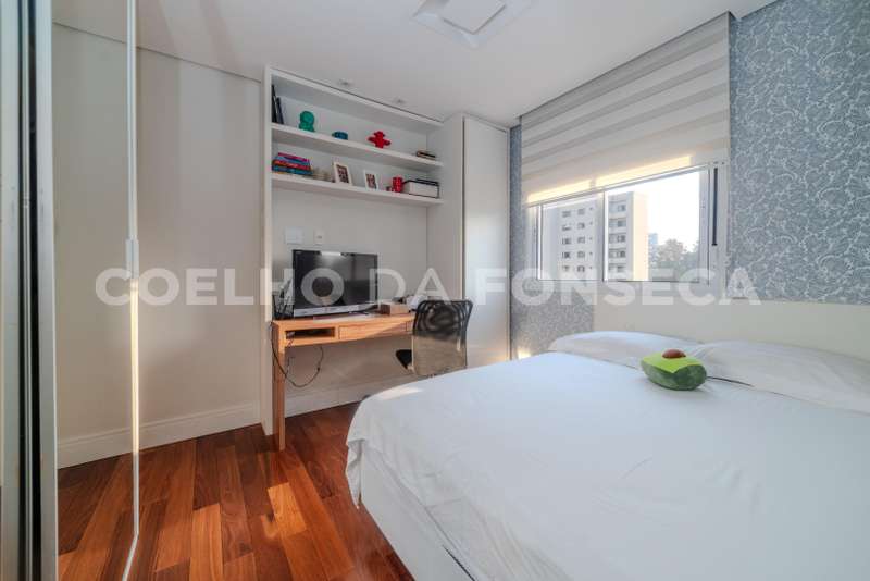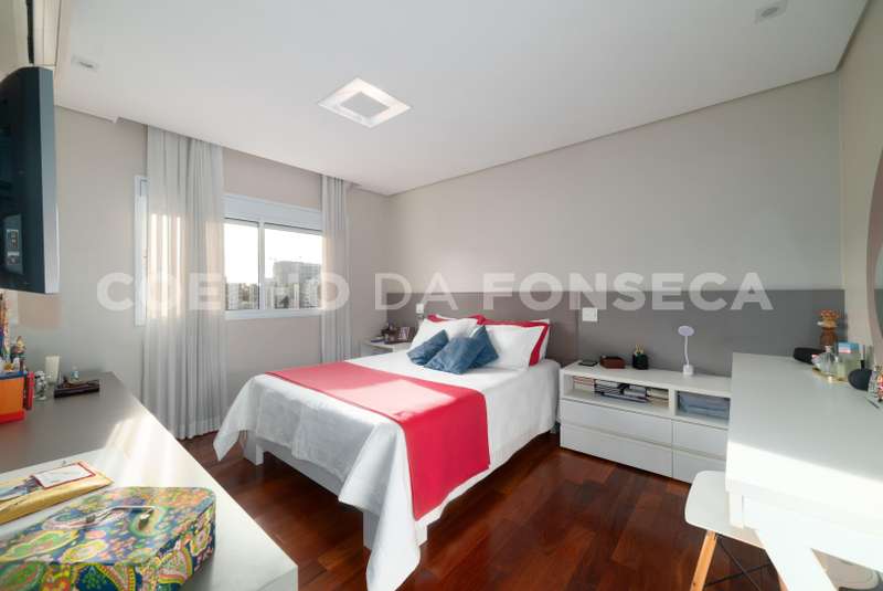 Clean, moderno e de bom gosto. A sensação de amplitude com varanda gourmet integrada ao living com muita luz natural e vista livres para o verde e sky line da cidade e ainda com o por do sol dão a este apartamento aquela sensação de aconchego que um lar tem. Há uma sala de TV com ótimo tamanho. A cozinha foi ampliada e também conta com uma despensa. A suíte master tem grande closet e banheiro super espaçoso. A outra suíte é puro charme com ótimos armários. Os outros dois quartos que dividem o banheiro social estão como novos e é possível fazer uma terceira suíte e usar o outro dormitório como escritório. Pela amplitude dos comodos e projeto é muito confortável para quem precisa de acessibilidade. O edifício tem lazer completo com piscina aquecida e externa, excelente academia além de brinquedoteca, sala de jogos, salão gourmet, quadra, playground.