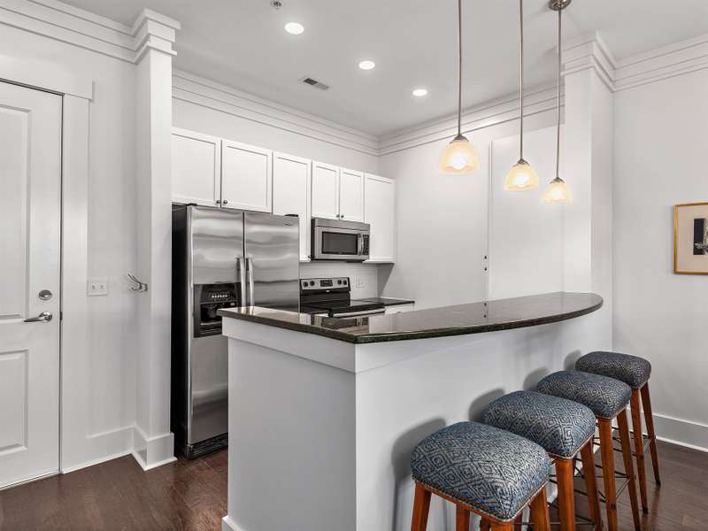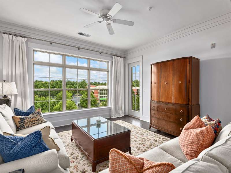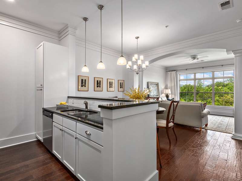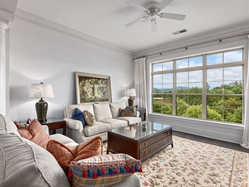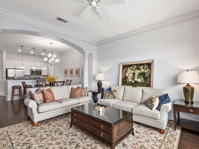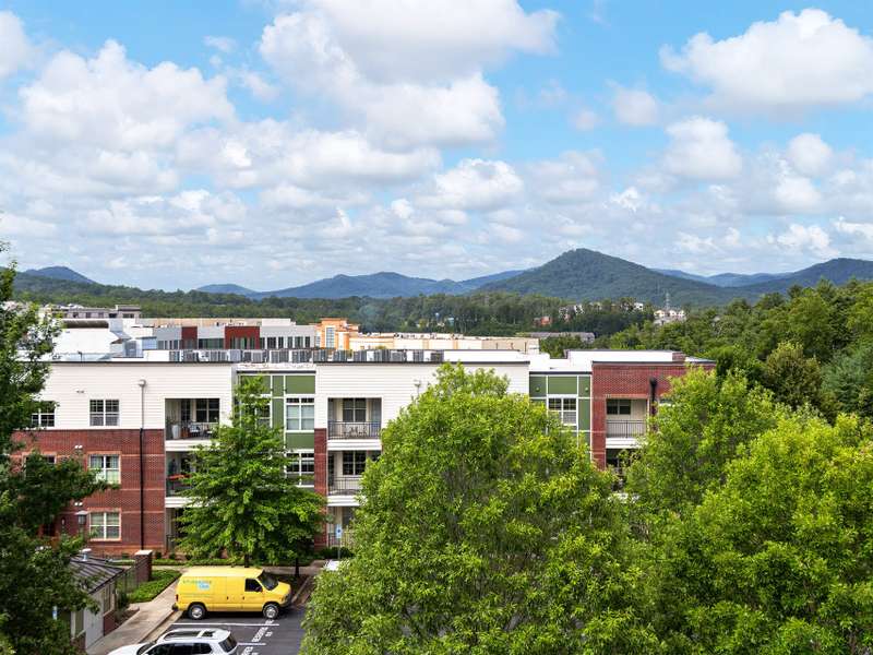 Top-Floor Turnkey Condo in Biltmore Park! This move-in ready, fully furnished 1BR/1BA condo is a stylish mountain retreat in the heart of upscale Biltmore Park. Enjoy breathtaking westerly views to Mt. Pisgah from your covered balcony, and interior that shines with fresh paint, beautiful floors, new tile and backsplash, new carpet, and high ceilings that help it live larger than its footprint. The sleek kitchen opens to a light-filled living area, and every room is outfitted with designer neutral furnishings and accessories?just unpack and enjoy! Includes washer/dryer, new HVAC (2022), and a separate storage unit. Two assigned parking spaces. Pet-friendly community (no short-term rentals) with amenities galore: clubroom, fitness center, pool, grilling patio, and unbeatable access to boutique shops, gourmet restaurants, movie theater, fitness venues, greenway trails, and seasonal farmers market?all just outside your door.