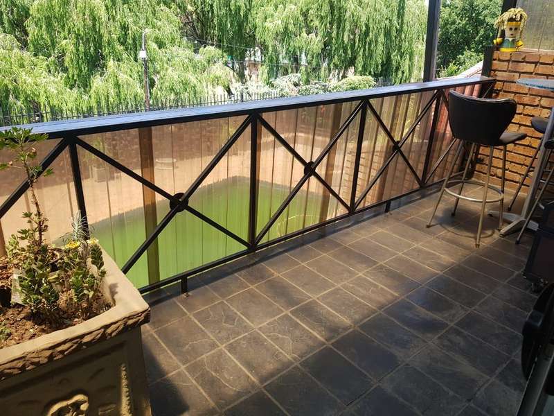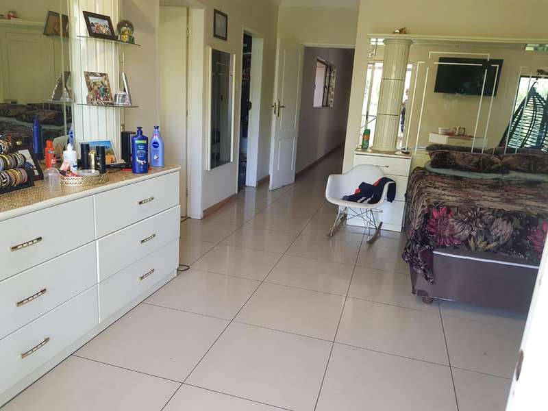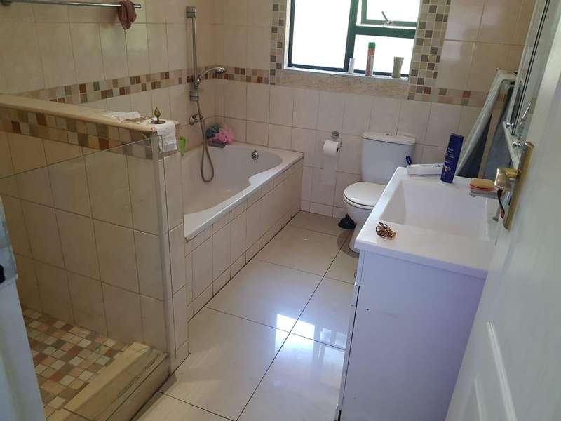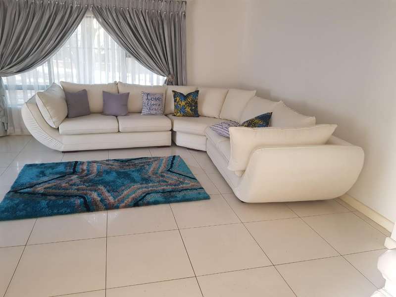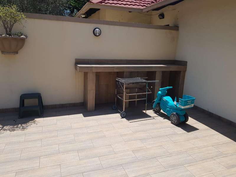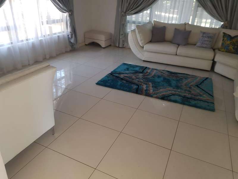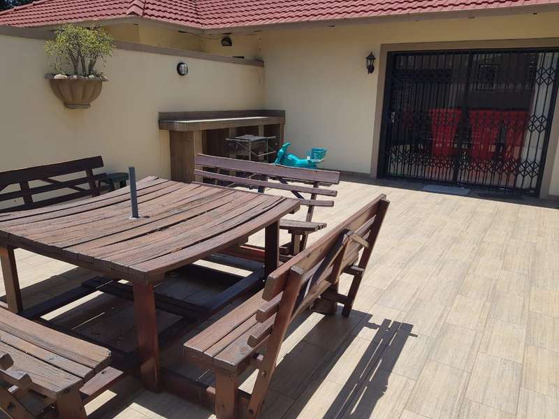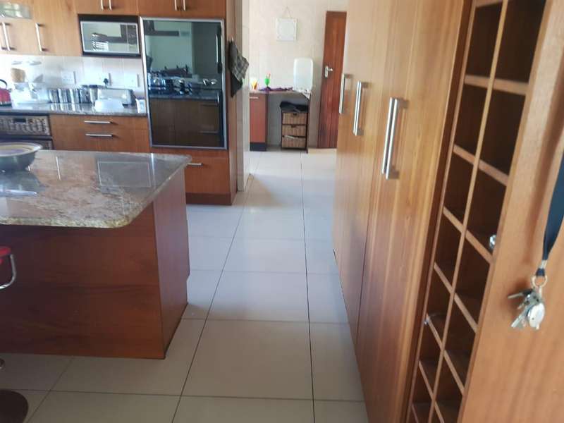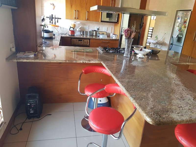 The property boasts two fully equipped kitchens, one on each level, creating flexibility for multi-generational living or convenient entertaining. The dining room is ideal for shared meals and celebrations, flowing seamlessly into the entertainment areas. An inviting lapa and a spacious balcony overlook a beautifully maintained garden, setting the perfect backdrop for outdoor dining, while the sparkling pool offers a refreshing oasis for warm days.