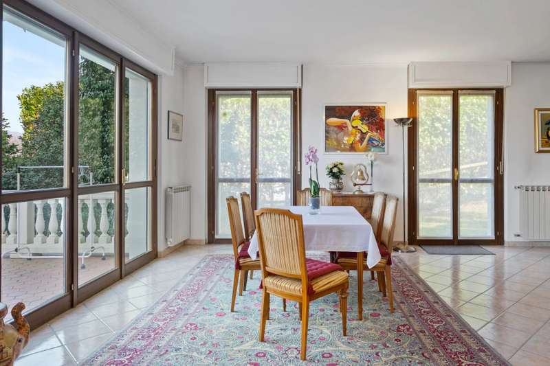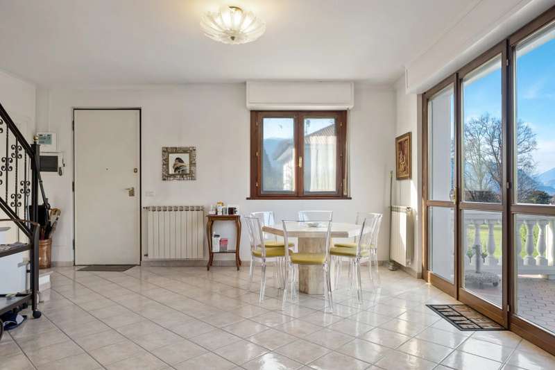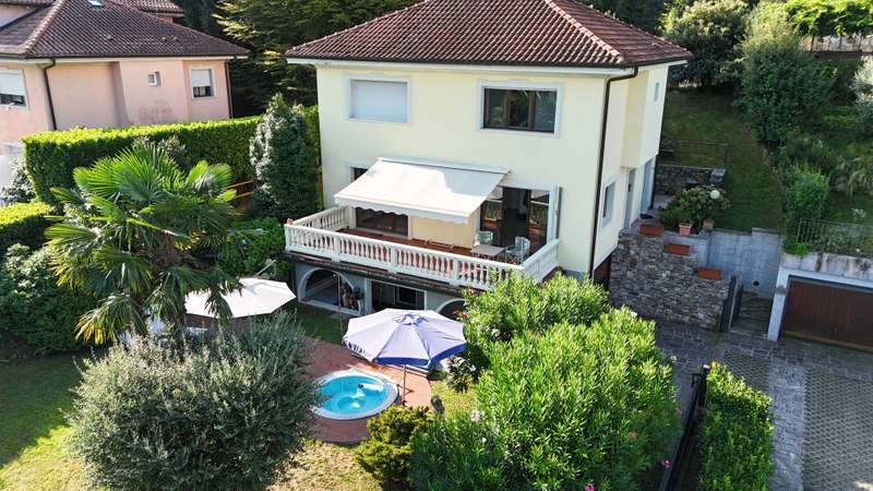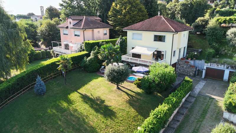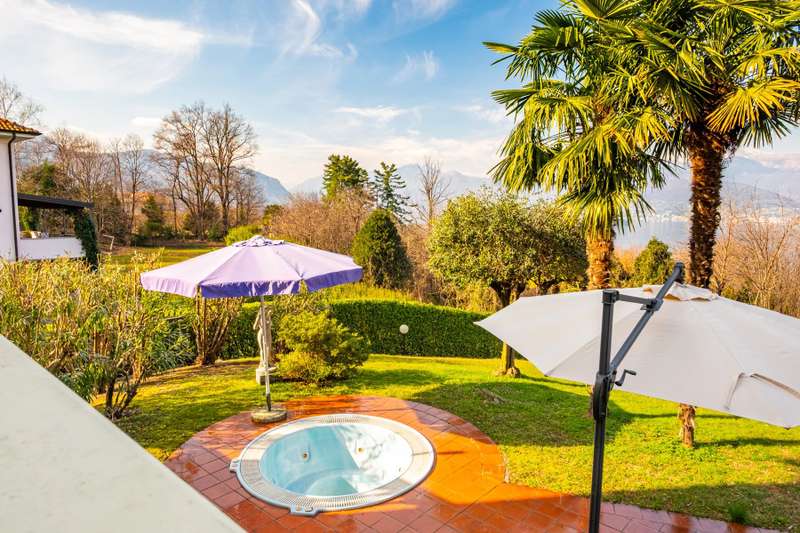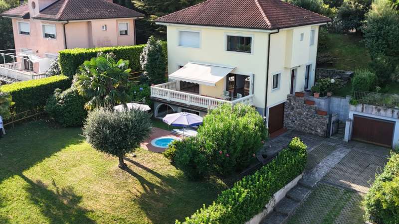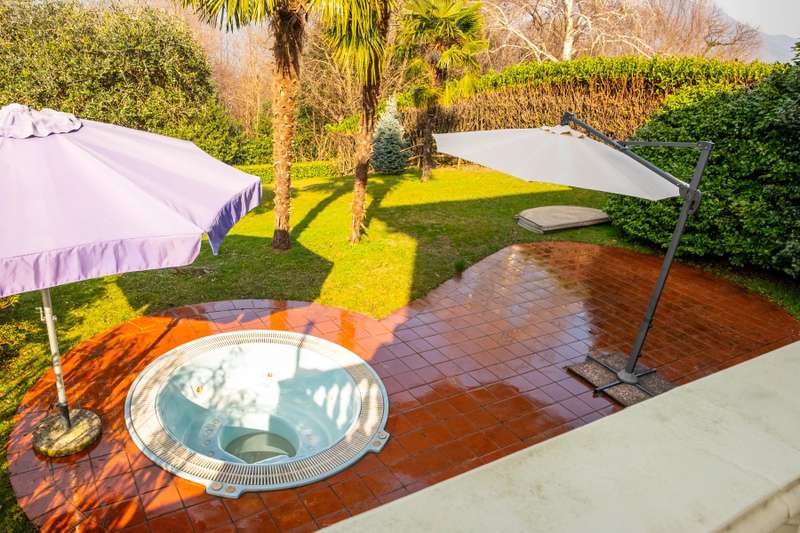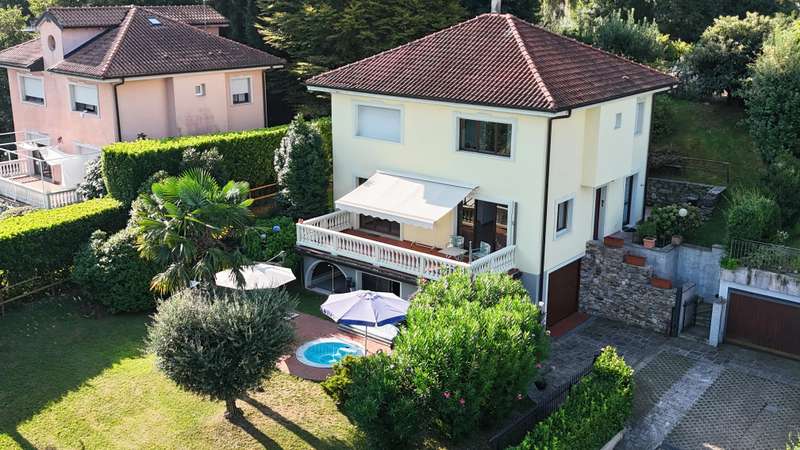 In one of the most sought-after residential areas of the first hill of Stresa, we offer for sale an elegant villa with private garden, ideal for those who want to live in contact with nature without giving up the convenience of the center. In fact, following the pedestrian path placed in front of the villa for sale, you can reach the center of Stresa in just 10 minutes on foot. This property, built in 1999, is part of a small complex of three twin villas and is perfect both as a main residence and as a vacation home. The location, quiet but not isolated, makes it easy to reach the center of Stresa on foot or by mountain bike via a pretty little pedestrian street. The villa is on three levels and is distinguished by the functional layout of the rooms: Basement: single garage, a versatile room (ideal as a guest room, gym or study), laundry, cellar and security area. Ground floor: a large living room with fireplace overlooking the terrace, dining room, eat-in kitchen and guest bathroom. Second floor: three bedrooms, two bathrooms and a refined master suite complete with private bathroom and walk-in closet. Outside, the manicured garden is home to a relaxation area with terracotta flooring, hot tub, sunbathing area and ornamental palm trees that lend an exotic and private touch. The covered terrace is perfect for outdoor dining and relaxing moments overlooking the surrounding greenery. The villa offers excellent sun exposure, bright rooms, and is in perfect condition, ready to be lived in.