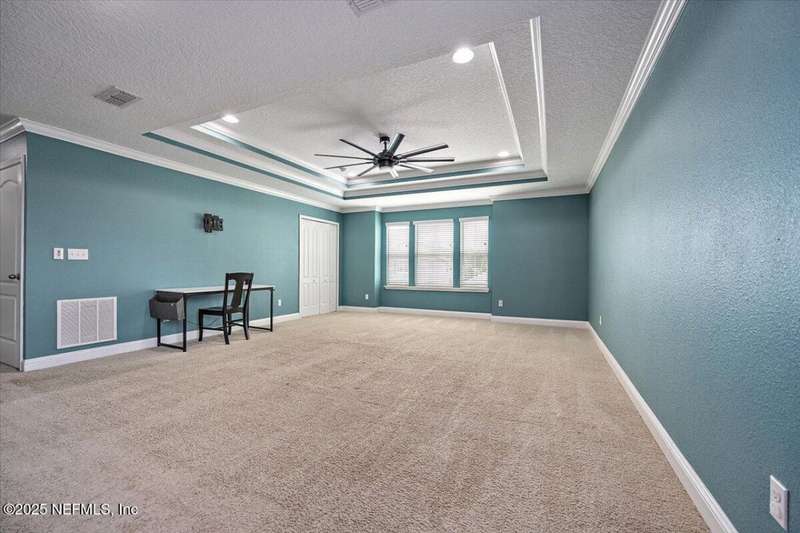 Live the Resort Style life, walk to Freedom Crossing K-8 Academy, Restaurants, Bagel and Ice Cream Shop, Community Pool & Gym. What more could you want!? This home has space for everyone and even has a ground level Guest Suite area. Sit on your Covered Front Porch or Enter this home to find a Flex Space/Office, Large Open Living Space Complete w/Wood Like Tile, Kitchen w/Large Food Prep Island, Gas Range, Tile Backsplash, Custom Glass Pantry Door, Quartz Counter looking out into the Living and Dining Space and the Screened Lanai, LARGE Privacy Fenced Backyard and Wooded Preserve - Second Level - Bedroom w/Full Bath, Hall Bath, Bedroom and Laundry, AMAZINGLY LARGE LOFT SPACE W/TRAY CEILINGS, and a Primary Suite w/Ensuite Bath and Spacious Walk-in Closet. Features: Gas Range and Tankless Water Heater, Extended Paver Patio w/Fire Pit, TV Mounts in place, Gate for Staircase and More!