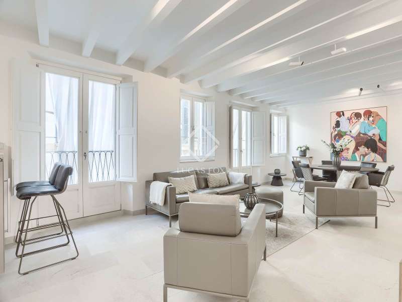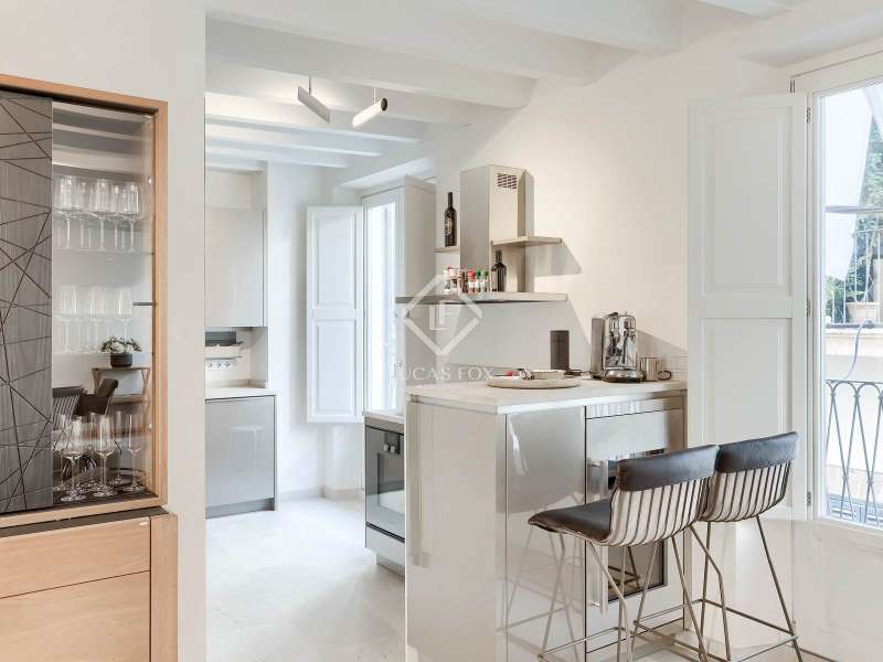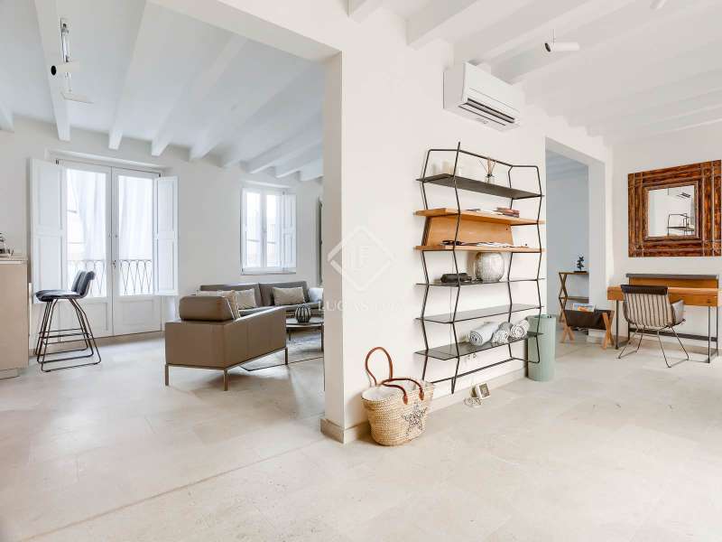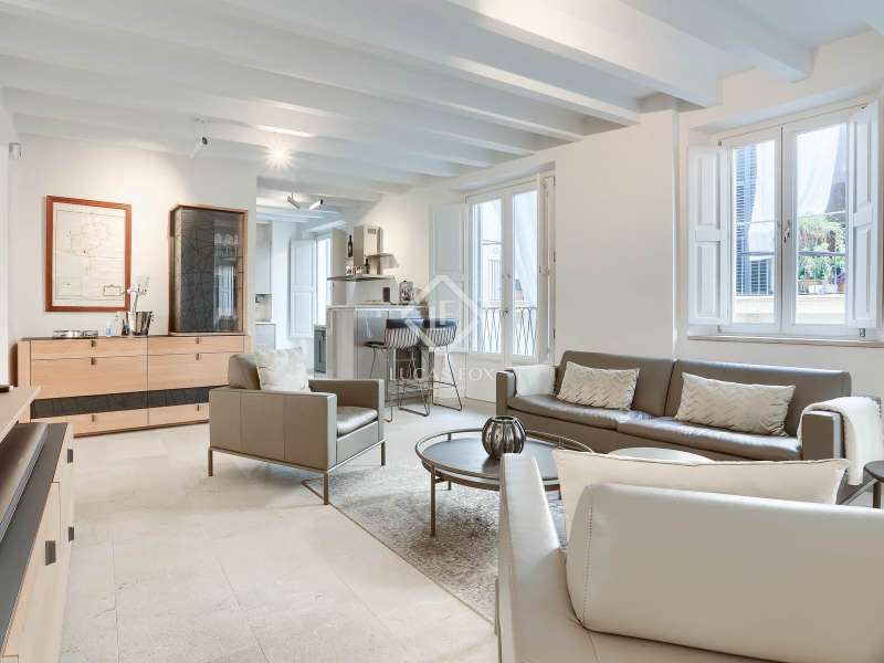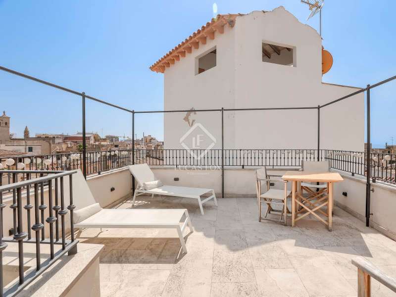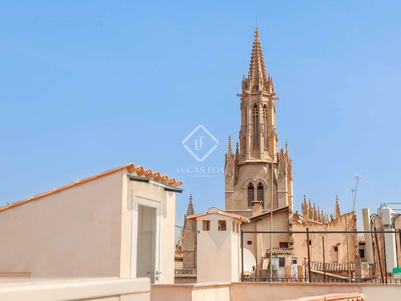 Experience the best of Palma in this exceptional, newly built luxury apartment, located in the heart of the historic Casco Antiguo district. Just steps from the picturesque Plaza Santa Eulalia, this refined residence perfectly combines timeless charm and modern comfort. Located on the second floor of a beautifully restored building, the apartment features two elegant and soothing bedrooms, each equipped with custom-made closets. The two elegantly styled bathrooms offer high-end finishes, walk-in showers, and designer amenities—a true private wellness space. The modern, fully equipped kitchen will delight food lovers with its high-end appliances and ample storage. Open to the light-filled living spaces, it's ideal for intimate dinners or convivial gatherings. Numerous windows let in beautiful natural light and open onto charming balconies overlooking the building's facade. A rare asset: a private 23 m² rooftop terrace, a true urban oasis. Soak up the sun in complete privacy or enjoy an al fresco dinner overlooking breathtaking panoramic views of the sea, Palma Cathedral, Santa Eulalia Church, and the Basilica of Sant Francesc. For added convenience, a parking space in the building is available for purchase with a car included (Fiat 500). Completely renovated in 2021, this exceptional property retains the charm of its historic setting while offering absolute modern comfort: underfloor heating, air conditioning in all rooms, sophisticated alarm system, home automation, exposed beams, stone floors and high-end fittings. You will have the opportunity to purchase a parking space in the building (includes a Fiat 500). Located in one of Palma's most desirable neighborhoods, you'll enjoy the city's best restaurants, shops, and cultural attractions right on your doorstep. Whether you're looking for a luxurious primary residence, an elegant second home, or an investment with a high rental yield, this apartment is a true gem not to be missed. Come and discover your haven of peace in Palma de Mallorca.