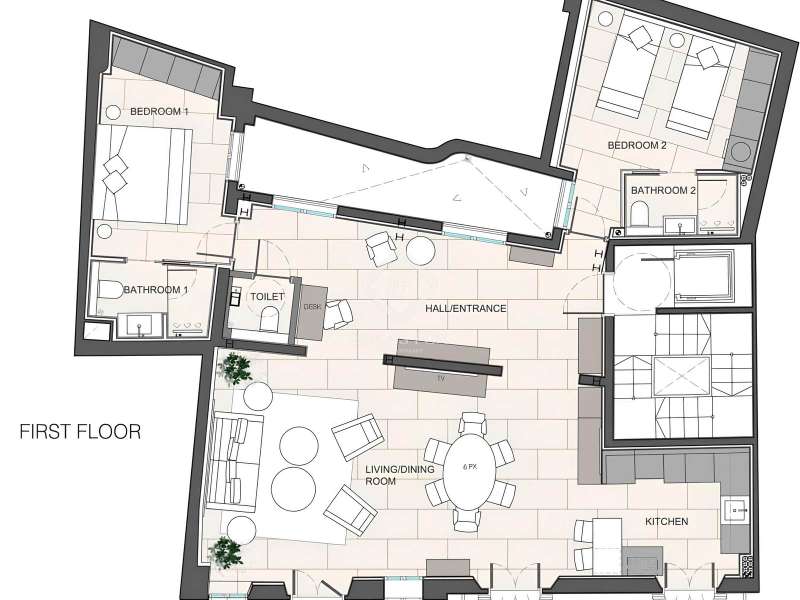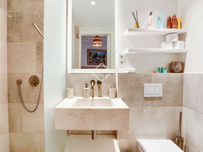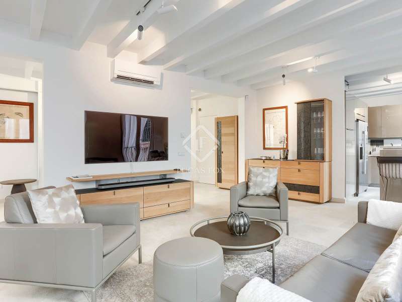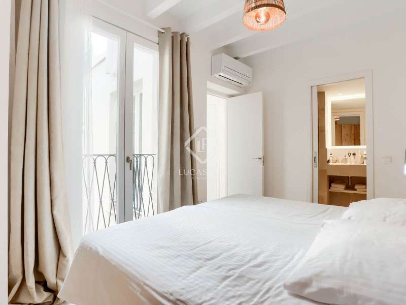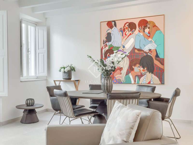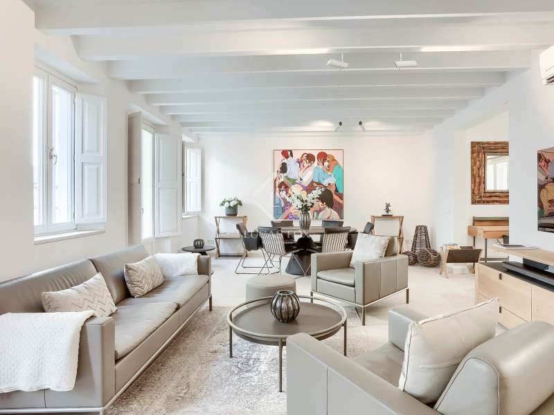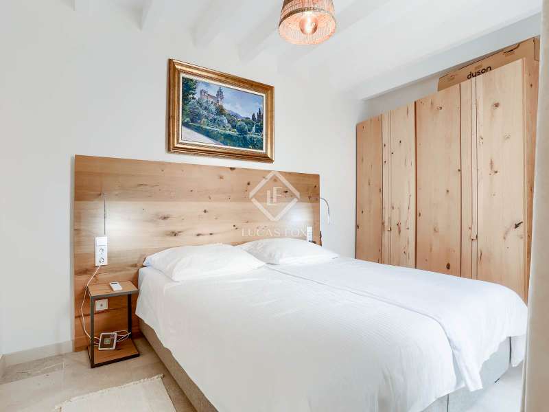Experience the best of Palma in this exceptional, newly built luxury apartment, located in the heart of the historic Casco Antiguo district. Just steps from the picturesque Plaza Santa Eulalia, this refined residence perfectly combines timeless charm and modern comfort. Located on the second floor of a beautifully restored building, the apartment features two elegant and soothing bedrooms, each equipped with custom-made closets. The two elegantly styled bathrooms offer high-end finishes, walk-in showers, and designer amenities—a true private wellness space. The modern, fully equipped kitchen will delight food lovers with its high-end appliances and ample storage. Open to the light-filled living spaces, it's ideal for intimate dinners or convivial gatherings. Numerous windows let in beautiful natural light and open onto charming balconies overlooking the building's facade. A rare asset: a private 23 m² rooftop terrace, a true urban oasis. Soak up the sun in complete privacy or enjoy an al fresco dinner overlooking breathtaking panoramic views of the sea, Palma Cathedral, Santa Eulalia Church, and the Basilica of Sant Francesc. For added convenience, a parking space in the building is available for purchase with a car included (Fiat 500). Completely renovated in 2021, this exceptional property retains the charm of its historic setting while offering absolute modern comfort: underfloor heating, air conditioning in all rooms, sophisticated alarm system, home automation, exposed beams, stone floors and high-end fittings. You will have the opportunity to purchase a parking space in the building (includes a Fiat 500). Located in one of Palma's most desirable neighborhoods, you'll enjoy the city's best restaurants, shops, and cultural attractions right on your doorstep. Whether you're looking for a luxurious primary residence, an elegant second home, or an investment with a high rental yield, this apartment is a true gem not to be missed. Come and discover your haven of peace in Palma de Mallorca.