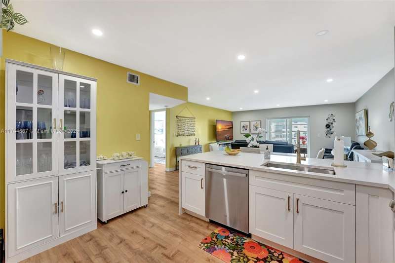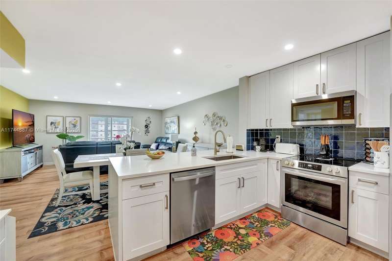 Stunningly Remodeled 1-Bedroom, 1.5-Bath Condo with Water Views! This beautifully updated 928 sq. ft. condo offers spacious living with breathtaking water views. The open-concept kitchen is a chef’s dream, featuring quartz countertops, white cabinets, stainless steel appliances, & recessed lighting. The unit is fully furnished & turn-key, showcasing wood flooring throughout & offering ample storage space. Enjoy a brand-new bathroom & a large living area that provides a perfect space to unwind. Plus, a cozy Florida room/patio allows you to relax and take in the serene lake views. Located in a HOPA-verified community, the building offers fantastic amenities including a pool, gym, shuffleboard, bowling alley, billiards, and more—all just a short walk away!