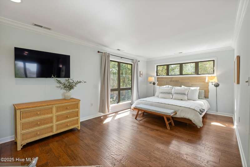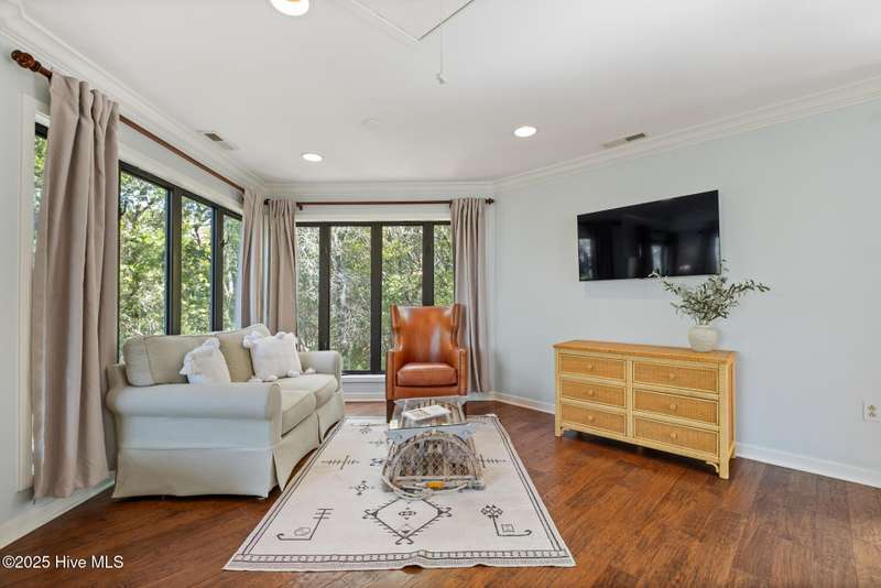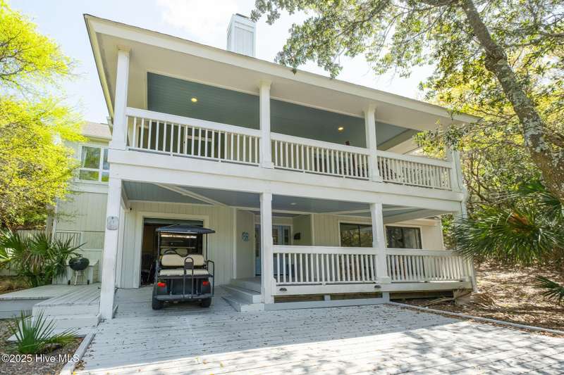 Turn-Key Island Haven | 5 BD | 3 BA | 0.26 ac | 2,437 SF Nestled at the quiet end of Racerunner Court's cul-de-sac, this furnished coastal residence delivers refined Bald Head Island living just 0.4 mi to South Beach. A deep rocking-chair porch opens to a bright foyer and two flexible bedrooms plus full bath—ideal for guests or a home office. The second level offers two additional bedrooms, full bath, and a dedicated laundry center, while the private top-floor king suite features vaulted ceilings, reading nook, and workspace. Entertain under vaulted ceilings in the great room, anchored by a wood-burning fireplace, or step onto the screened porch overlooking live-oak canopy. The window-wrapped dining area joins a chef's kitchen appointed with a stainless range and appliances, granite counters, spacious pantry, and greenhouse window. Outside, enjoy 0.26 ac of low-maintenance maritime forest, multiple covered porches, and a flat cul-de-sac perfect for biking. A 4-seater and a 6-seater cart convey along with four beach cruisers, making island exploration effortless. Optional BHI Club Lifestyle Membership unlocks golf, tennis, pools, and dining. Request your private tour today—move-in-ready homes in this enclave rarely last long!