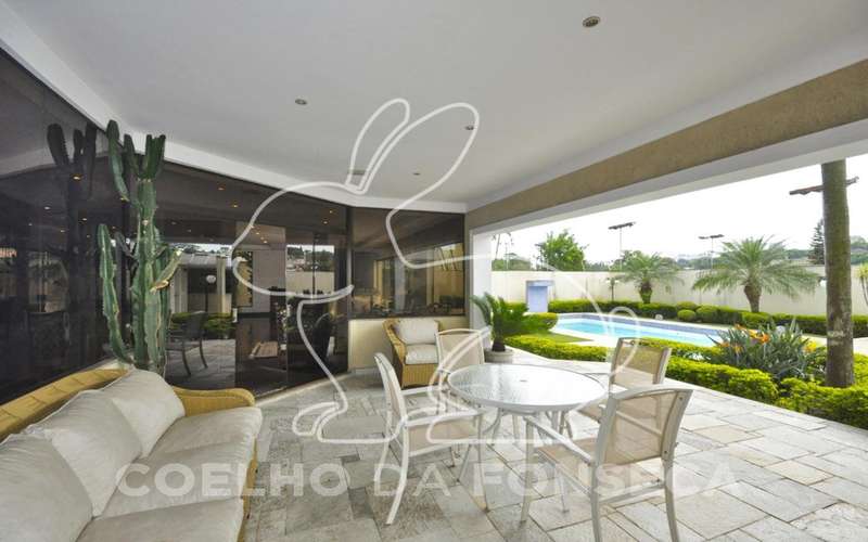 Lindo sobrado pronto para morar, com acabamento de alto padrão! Piso térreo: Hall de entrada, lavabo, espaço para adega, living de 160m² para 4 ambientes amplos, sala de lareira, sala de jantar, biblioteca, sala de almoço, cozinha, ampla área de serviços com 3 quartos de empregados, banheiro. Piso superior: 4 suítes (suíte máster com closet, hidro e sacada), sótão com escritório e sala de ginástica. Quintal com jardim, piscina, sauna e churrasqueira. Poço artesiano. Rua com segurança monitorada.