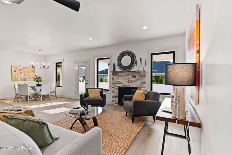 Brand new construction by Perry Tech! This stunning home sits on a quiet cul-de-sac and features 3 spacious bedrooms and 2 bathrooms. The chef's kitchen boasts sleek quartz countertops, perfect for meal prep and entertaining. The open floor plan is complemented by engineered hardwood flooring and elegant wood casing around windows. Enjoy a cozy living room plumbed for a propane fireplace, and step out to a large, covered patio overlooking the fully fenced backyard, complete with a full sprinkler system. The home also includes an EV charging station in the garage for added convenience. Thoughtfully designed with CC&Rs for neighborhood consistency and quality. This home is move-in ready and waiting for you!