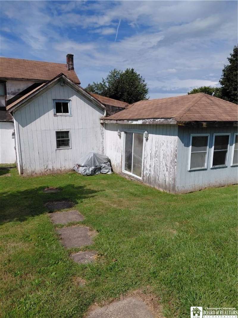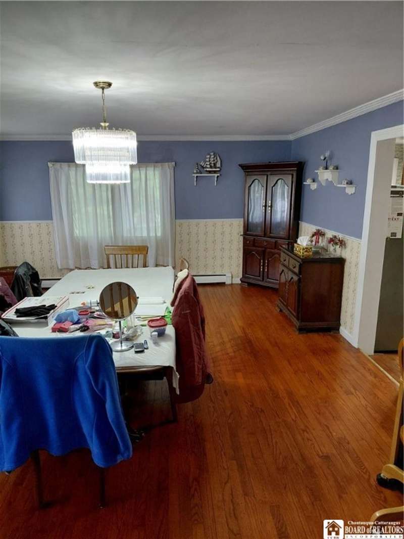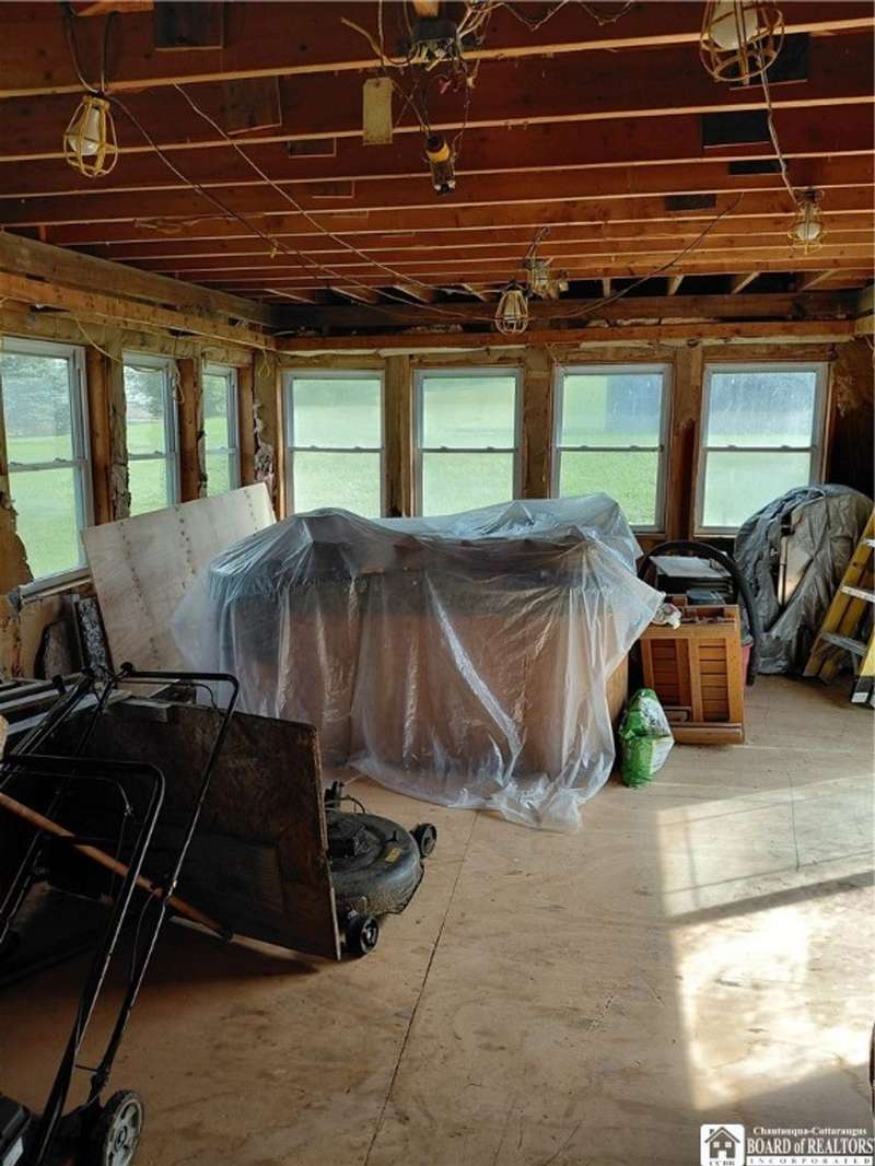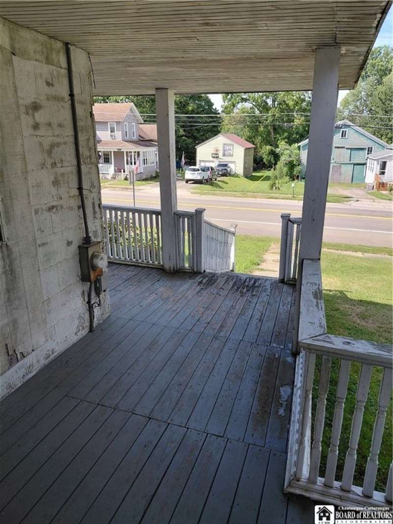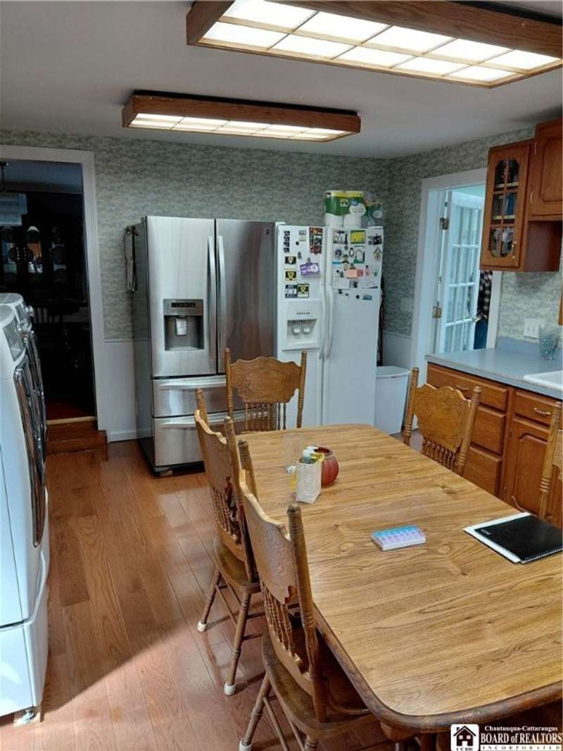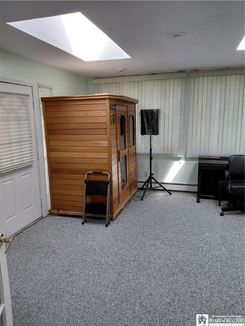 Spacious home in the Village of Cassadaga! Situated on approximately 2.7 acres, the property boasts a blacktop driveway with ample parking space. There are large rooms throughout, including a media room /office / multi use room complete with a sauna and three skylights. Convert it to a downstairs bedroom that is directly off of the country kitchen. A partially finished sun room includes a hot tub! The dining area and living spaces are vast and ample. Upstairs, there are 3 bedrooms. A covered porch opens to the front yard and street, with sidewalk access to local amenities. The local beach, boat access, and Lily Dale are minutes away.Hot Tub, Stove/Oven, Stainless Refrigerator, and Washer and Dryer are included.