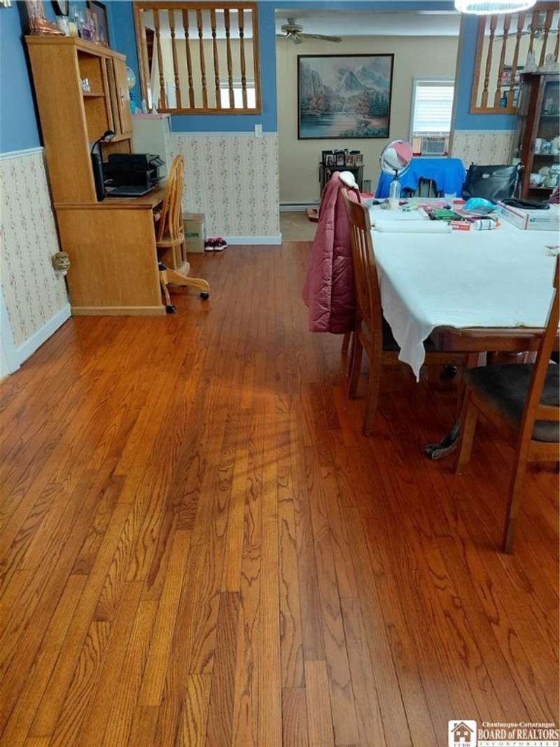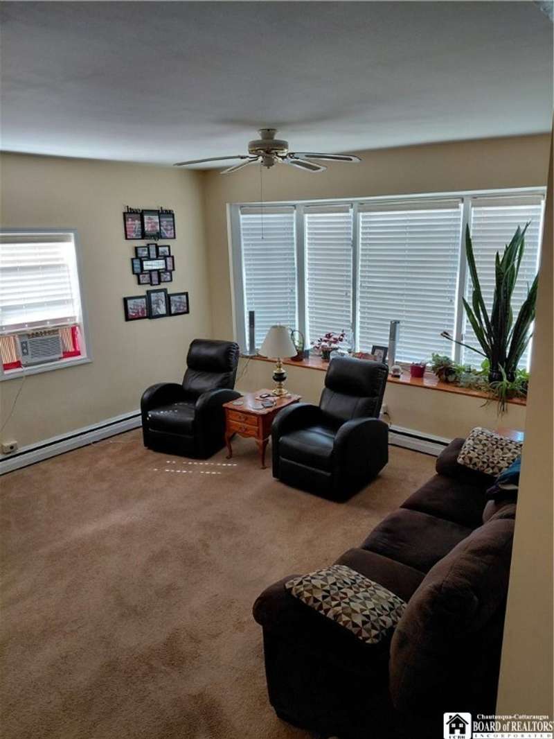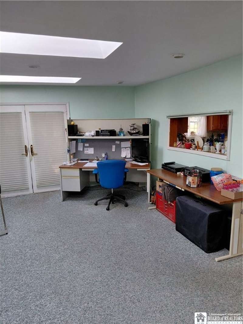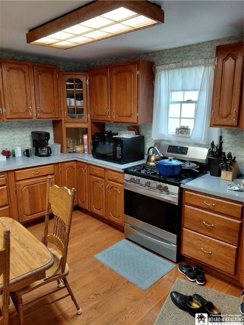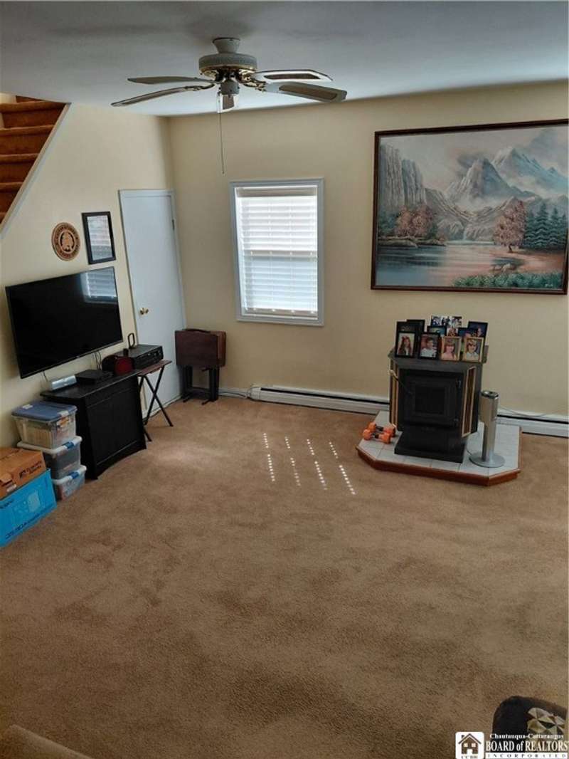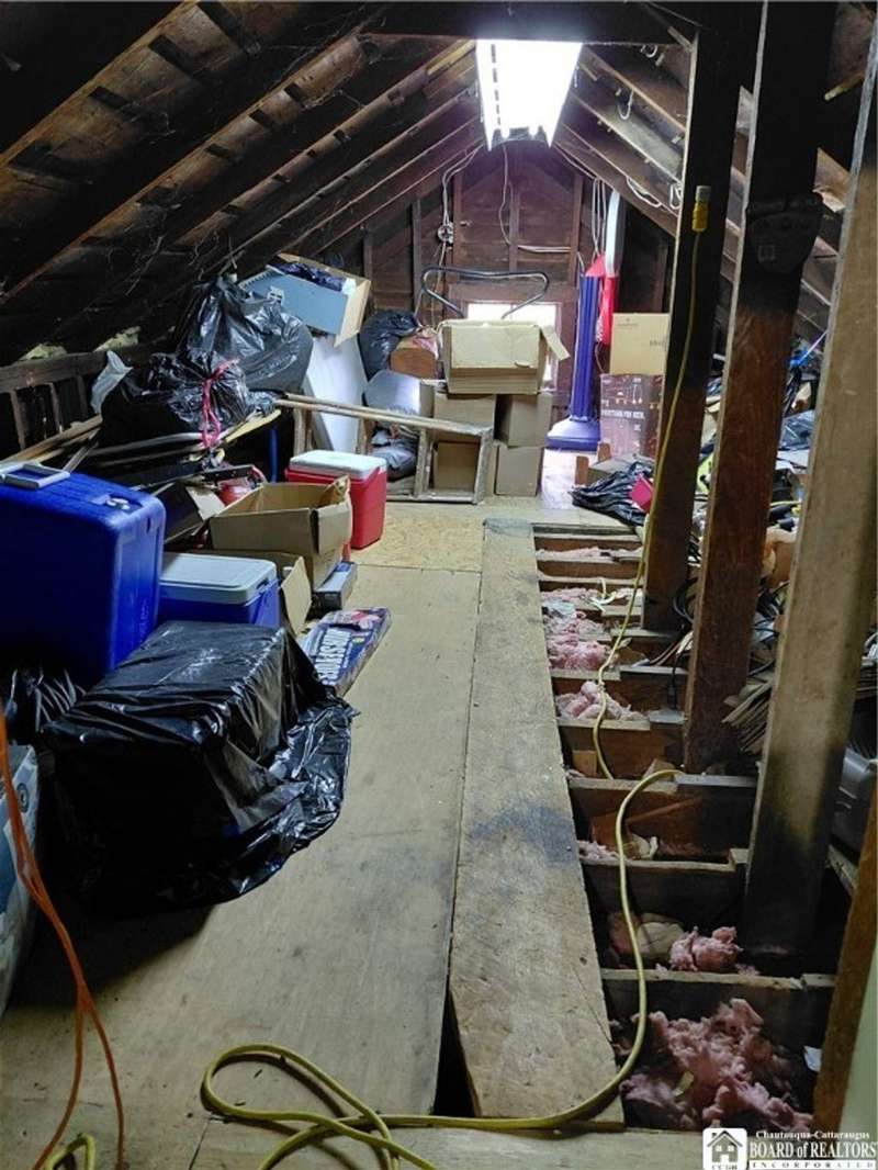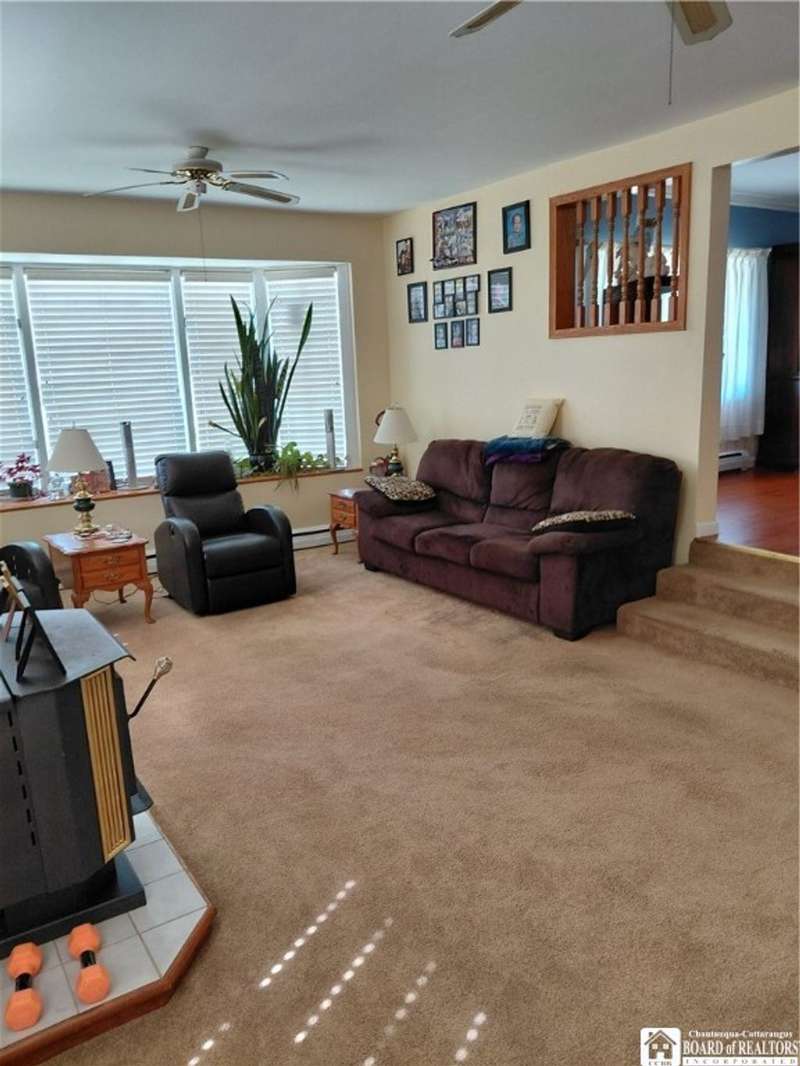 Spacious home in the Village of Cassadaga! Situated on approximately 2.7 acres, the property boasts a blacktop driveway with ample parking space. There are large rooms throughout, including a media room /office / multi use room complete with a sauna and three skylights. Convert it to a downstairs bedroom that is directly off of the country kitchen. A partially finished sun room includes a hot tub! The dining area and living spaces are vast and ample. Upstairs, there are 3 bedrooms. A covered porch opens to the front yard and street, with sidewalk access to local amenities. The local beach, boat access, and Lily Dale are minutes away.Hot Tub, Stove/Oven, Stainless Refrigerator, and Washer and Dryer are included.
