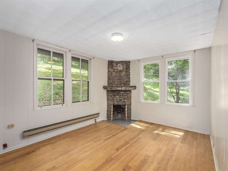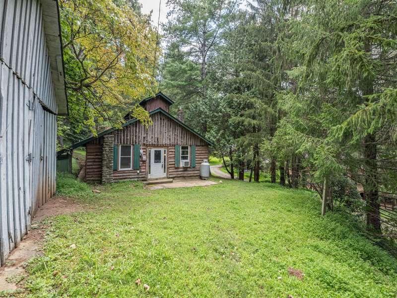 Drive out to the country but only 6 minutes to Groceries, Restaurants, and all the North Asheville Amenities. Under 10 Minutes to Downtown Asheville! This Location is Amazing! This rustic home has so much potential! The Pink Metal Vintage Kitchen Cabinets are just some of the Charming Features that the house offers. The home has a newer metal roof and propane fireplace insert is newer. The large lot offers the possibility of building another structure, buyer to verify. Sellers believe this was an old dairy barn when they purchased it in the 1970s and worked with an architect to turn it into a home, and it is older than the tax card shows. It has been a rental for many years and would make a wonderful Summer Home or Artist Retreat. Lots of parking and Wonderful Gentle (mostly flat to sloping) Topography. The Large Stone Fireplace Propane Insert provides a back up heat source and baseboard heat is throughout the house. A/C is not needed much but there is a window a/c unit. There is a large attic space with pull down stairs and better access could be updated for more living space.