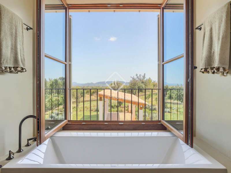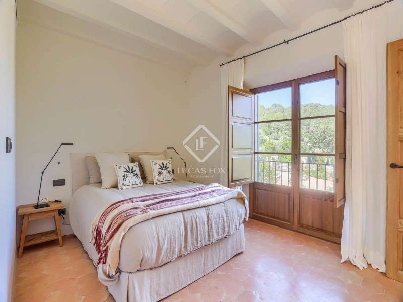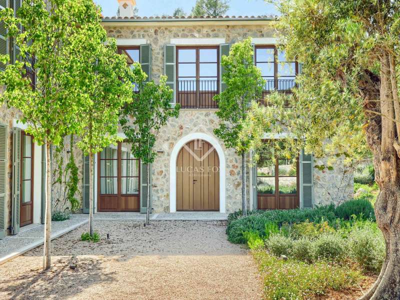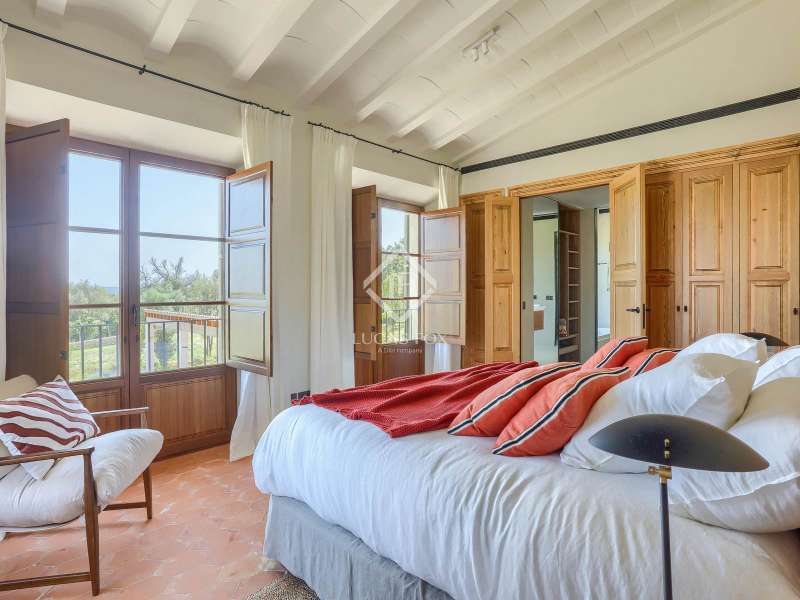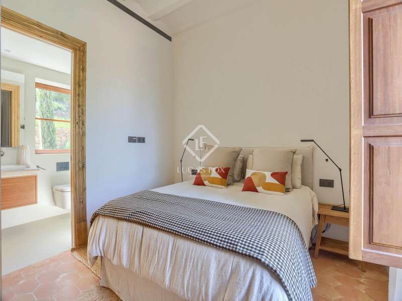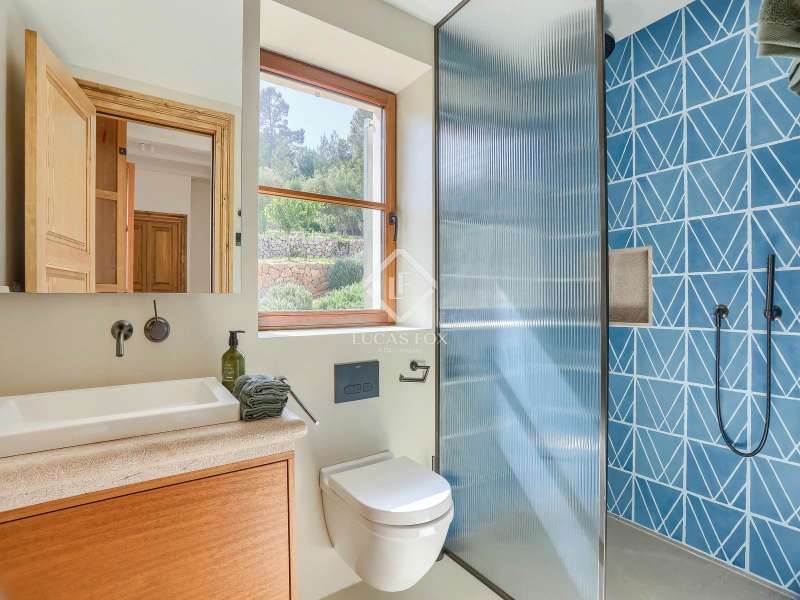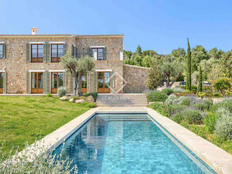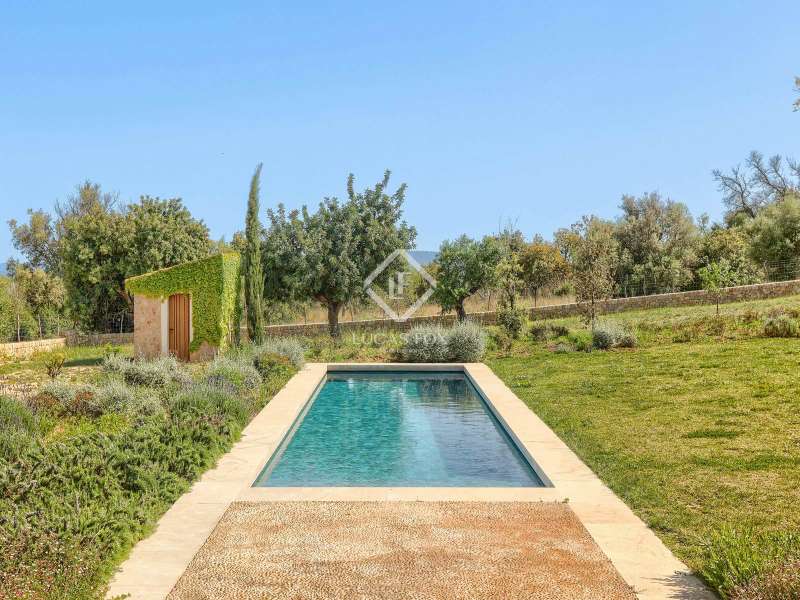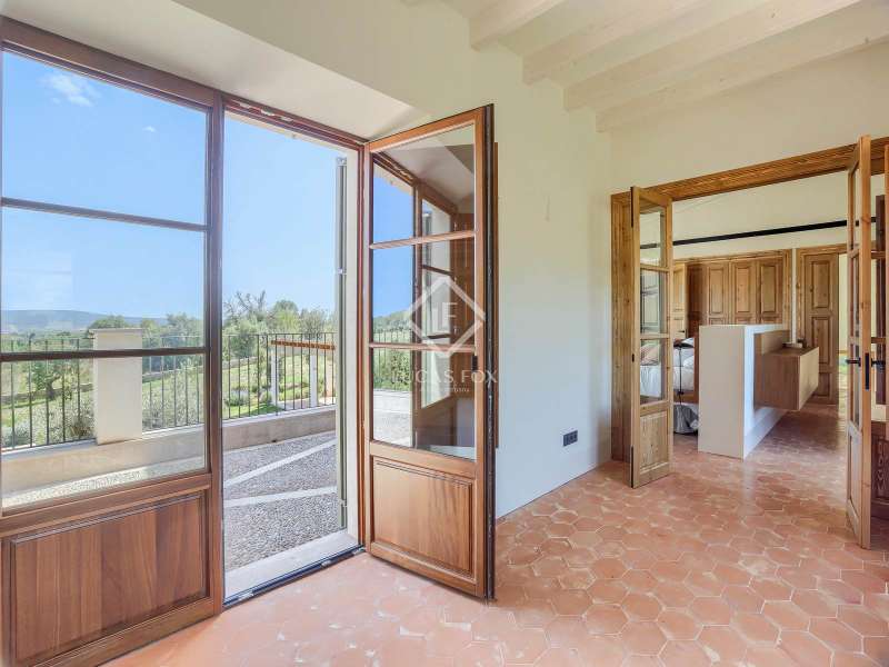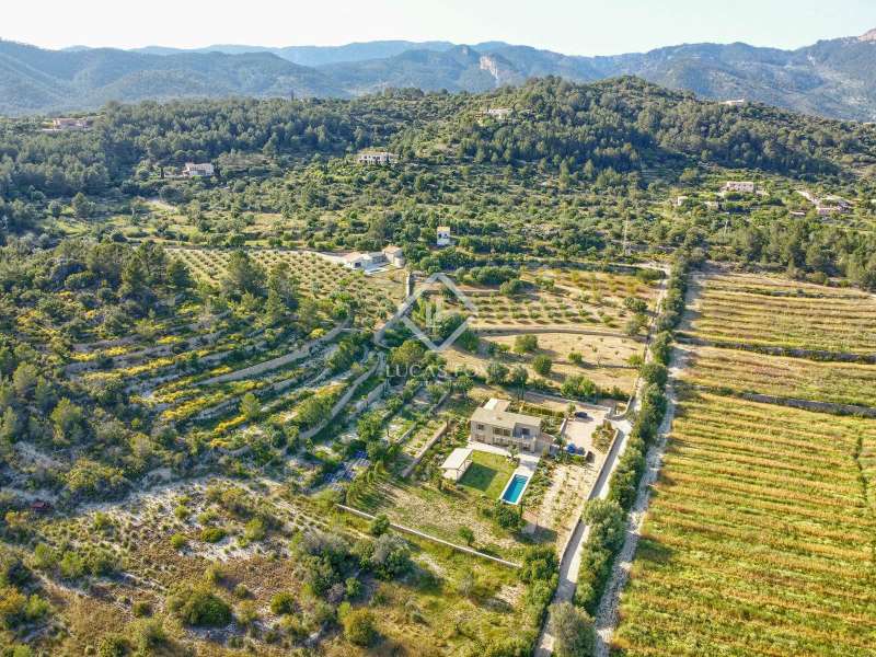 This impeccable rustic property, built in natural stone, is located in Alaró, in the Sierra de Tramuntana region, on a 14,800 m² plot. Here you will not only enjoy unparalleled tranquility and privacy, but also beautiful views. The property is spread over two floors. On the ground floor, there is a spacious, light-filled living room that blends seamlessly with the elegant, modern kitchen, which is fully equipped with high-quality materials. There are also three bedrooms, each with its own bathroom, a guest toilet, and a laundry room. The master bedroom is located on the upper floor, featuring ample light. It has its own bathroom, dressing room, terrace, and an additional space that can be used as an office. There are also two more spacious bedrooms with en-suite bathrooms. The exterior offers a splendid 50 m² covered terrace and a beautiful saltwater pool, ideal for rest and relaxation. Traditional stone walls and rock terraces shelter fruit and olive trees, creating a welcoming atmosphere. During the construction of the house, the use of local, quality materials was prioritized. Additional features include air conditioning, underfloor heating, a private well, a water tank, solar panels for both hot water and electricity, a home automation system, GESA power supply, and a security system.