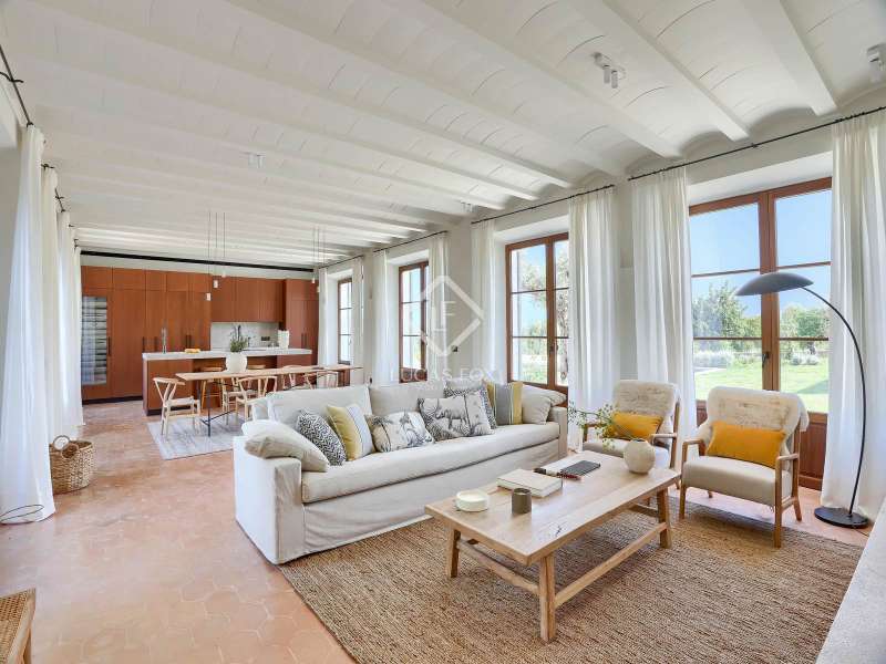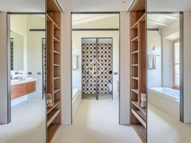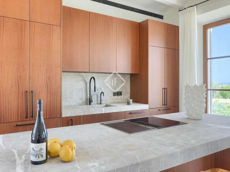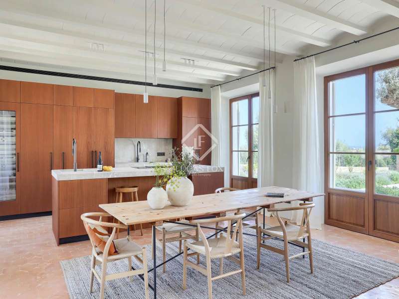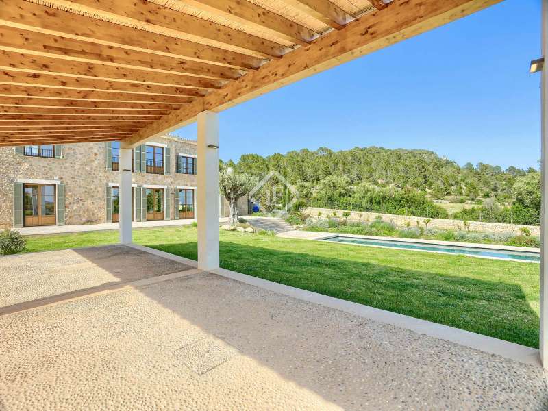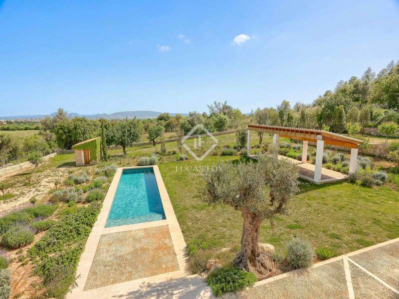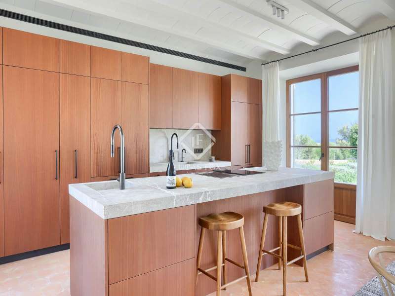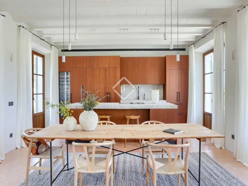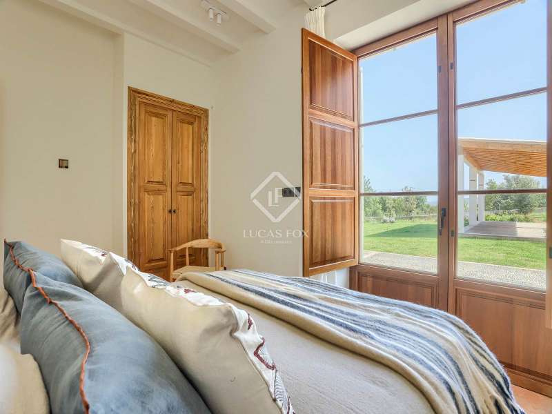 This impeccable rustic property, built in natural stone, is located in Alaró, in the Sierra de Tramuntana region, on a 14,800 m² plot. Here you will not only enjoy unparalleled tranquility and privacy, but also beautiful views. The property is spread over two floors. On the ground floor, there is a spacious, light-filled living room that blends seamlessly with the elegant, modern kitchen, which is fully equipped with high-quality materials. There are also three bedrooms, each with its own bathroom, a guest toilet, and a laundry room. The master bedroom is located on the upper floor, featuring ample light. It has its own bathroom, dressing room, terrace, and an additional space that can be used as an office. There are also two more spacious bedrooms with en-suite bathrooms. The exterior offers a splendid 50 m² covered terrace and a beautiful saltwater pool, ideal for rest and relaxation. Traditional stone walls and rock terraces shelter fruit and olive trees, creating a welcoming atmosphere. During the construction of the house, the use of local, quality materials was prioritized. Additional features include air conditioning, underfloor heating, a private well, a water tank, solar panels for both hot water and electricity, a home automation system, GESA power supply, and a security system.