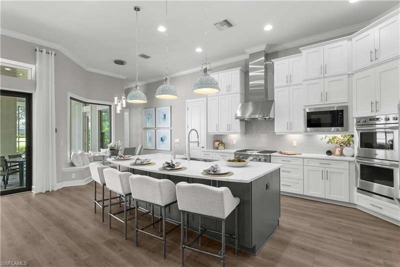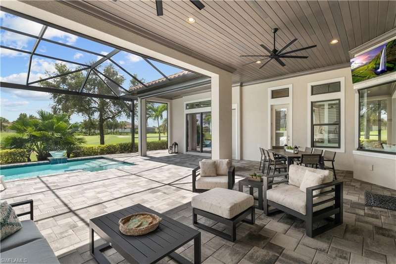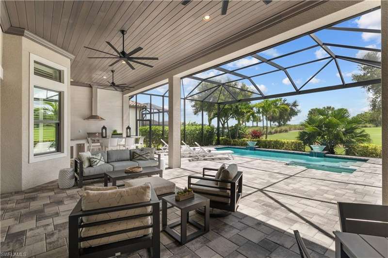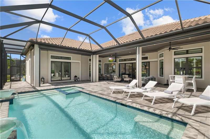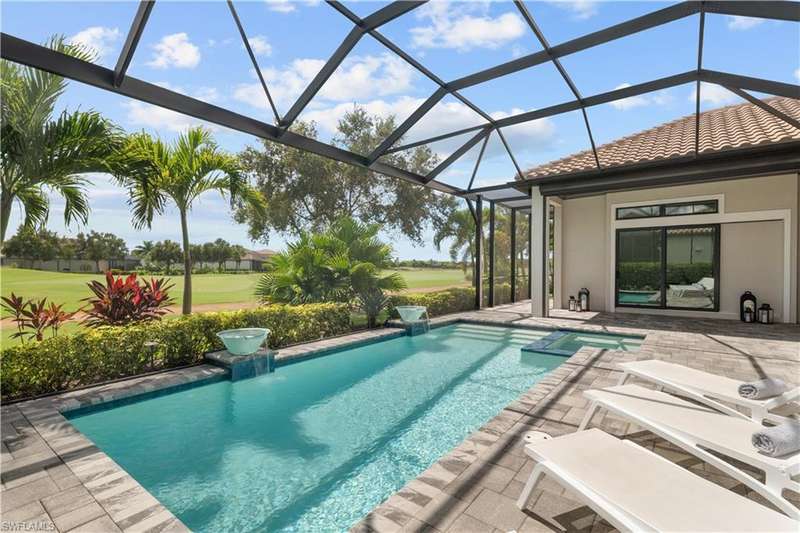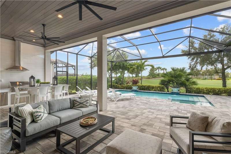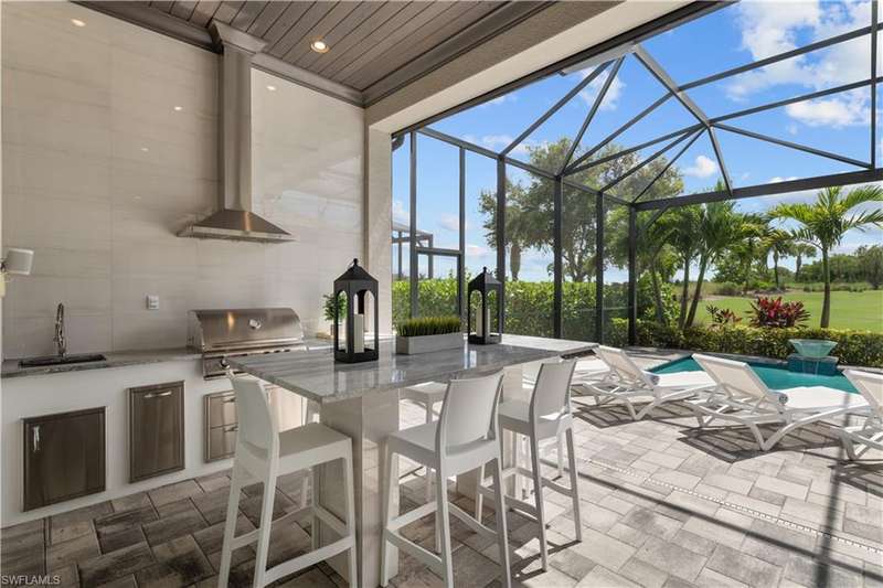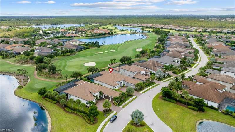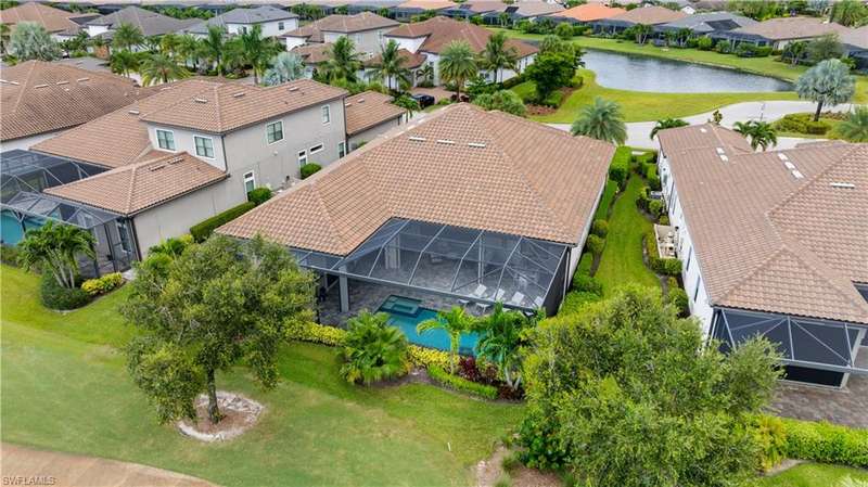 LIVE A VACATION LIFESTYLE IN ESPLANADE! FULL GOLF MEMBERSHIP! Built in 2019, this stunning Mercede floorplan home sits at the end of a cul-de-sac street on a SOUTH REAR FACING lot overlooking the 10th green and lake on the coveted Tulipano Terrace of Esplanade Golf & Country Club. Offering 3,660 sq ft of luxurious living space, this thoughtfully designed home features 3 bedrooms, den, bonus room and 3.5 baths with soaring 12-14 ceilings throughout the entire home. An open-concept great room that seamlessly extends to the lanai through a 16 pocketing sliding glass door make this home perfect for entertaining. The kitchen is a chef s dream with Monogram appliances including a GAS six burner cooktop, double wall ovens, beverage cooler, quartz countertops, and an abundance of cabinetry including double stacked upper cabinets to complete the high end look. The primary suite is a private retreat with his & hers custom closets with built-ins and a spa-inspired bath featuring dual vanities