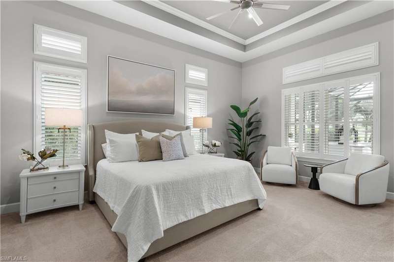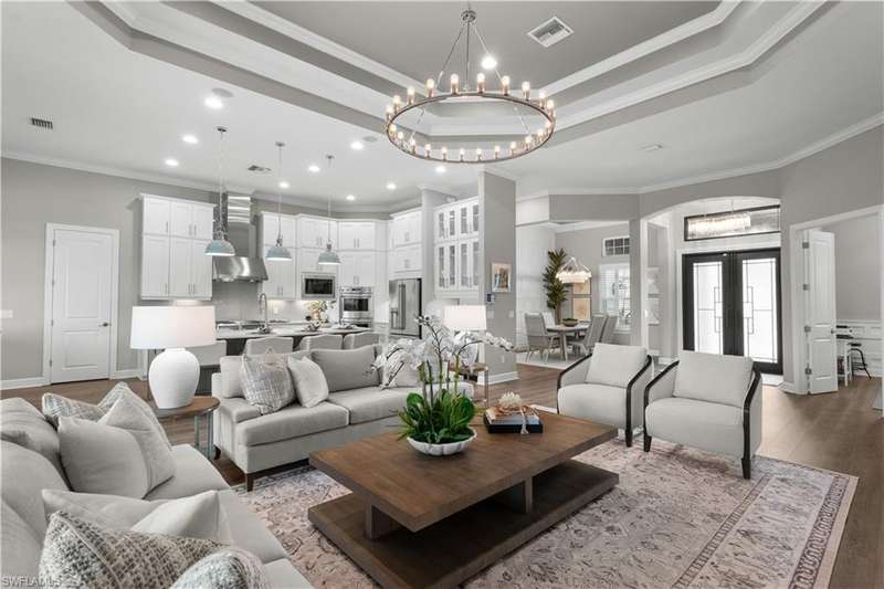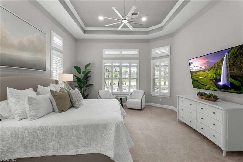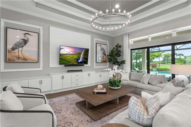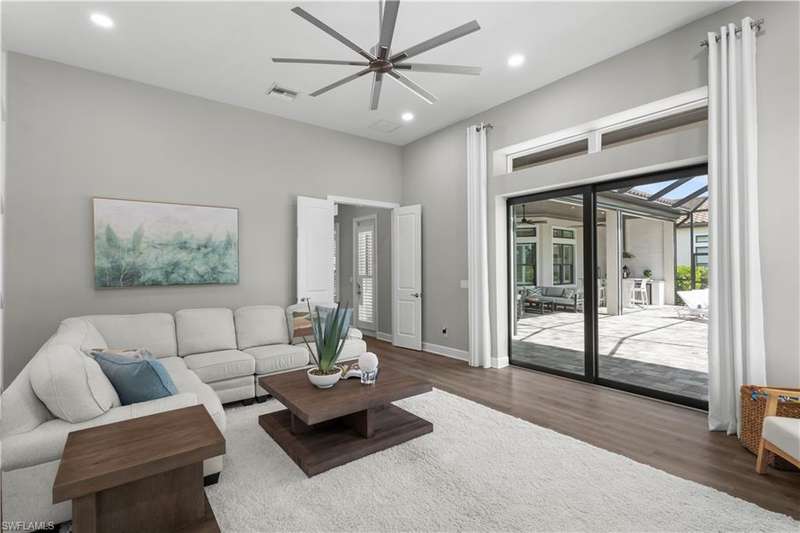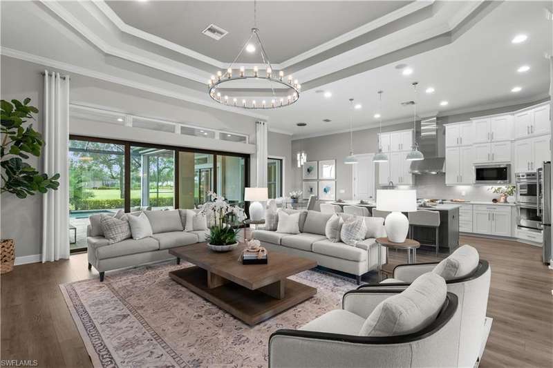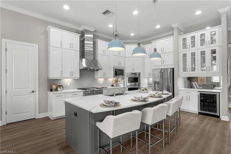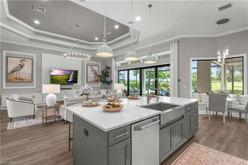 LIVE A VACATION LIFESTYLE IN ESPLANADE! FULL GOLF MEMBERSHIP! Built in 2019, this stunning Mercede floorplan home sits at the end of a cul-de-sac street on a SOUTH REAR FACING lot overlooking the 10th green and lake on the coveted Tulipano Terrace of Esplanade Golf & Country Club. Offering 3,660 sq ft of luxurious living space, this thoughtfully designed home features 3 bedrooms, den, bonus room and 3.5 baths with soaring 12-14 ceilings throughout the entire home. An open-concept great room that seamlessly extends to the lanai through a 16 pocketing sliding glass door make this home perfect for entertaining. The kitchen is a chef s dream with Monogram appliances including a GAS six burner cooktop, double wall ovens, beverage cooler, quartz countertops, and an abundance of cabinetry including double stacked upper cabinets to complete the high end look. The primary suite is a private retreat with his & hers custom closets with built-ins and a spa-inspired bath featuring dual vanities