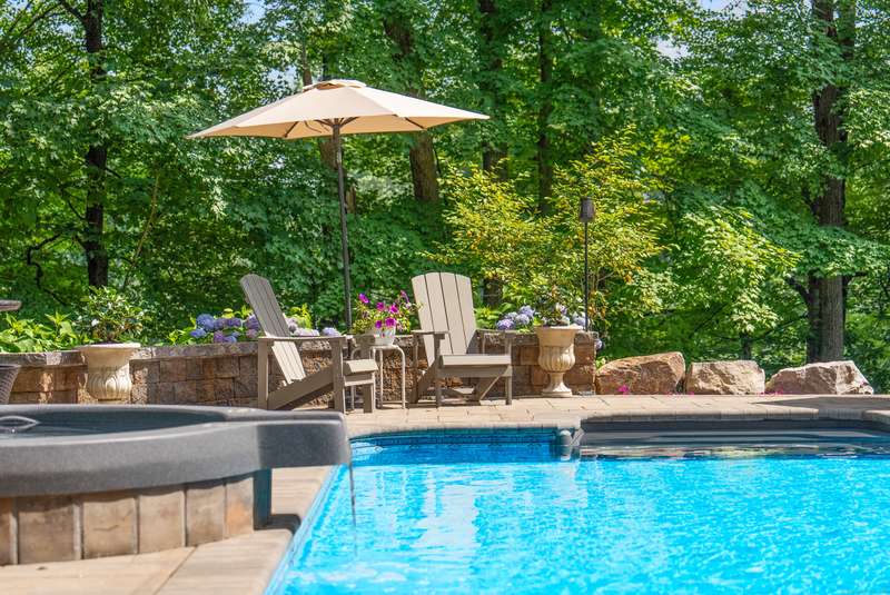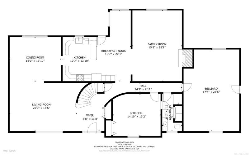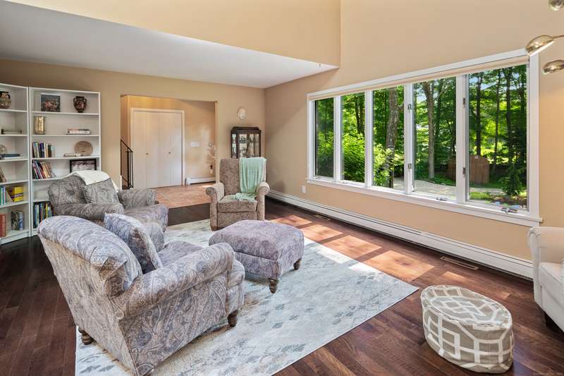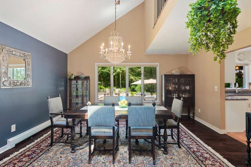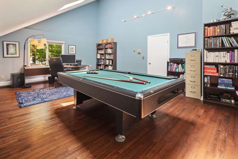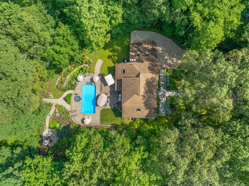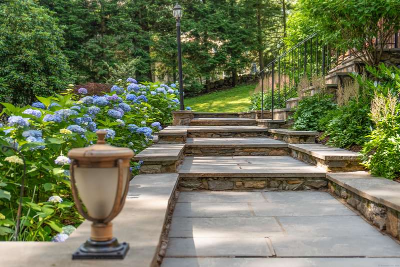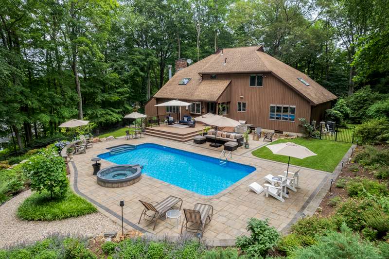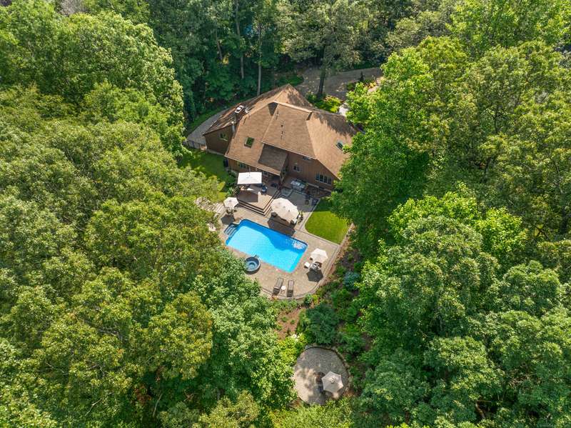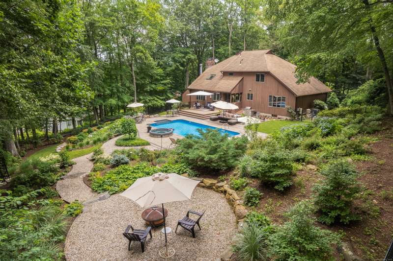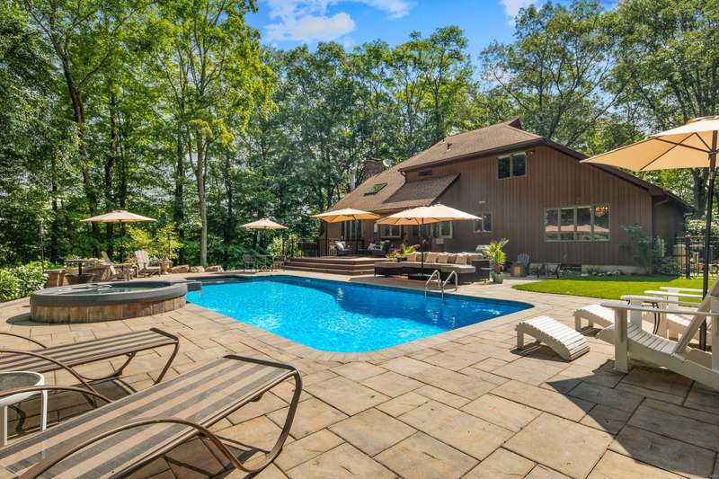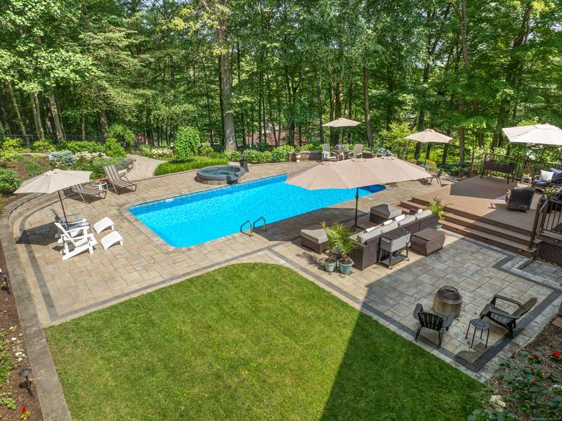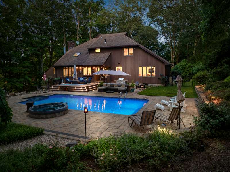 Welcome to 19 Pumpkin Hill Road located in Trumbull's highly sought-after Tashua neighborhood! This stunning Tudor style colonial offers the perfect blend of classic charm and comfortable living with 4 bedrooms, 4 baths, and over 4,000 SQ FT of living space. If you're looking for a peaceful retreat on a serene end of the cul-de-sac, this 1.4 acres has it all! From the moment you arrive you'll experience meticulously landscaped grounds designed by Stopa Landscaping, complete with elegant stone walls and a sweeping circular driveway. The private, fenced-in backyard transforms into your personal sanctuary - an entertainer's dream featuring an expansive stone patio, a shimmering in-ground Salt water pool, hot tub with waterfall, and a secluded firepit sitting area. This tranquil setting ensures year-round enjoyment and unforgettable gatherings. The home's interior boasts a seamless design, ensuring a natural flow between living areas, bedrooms are located on the first and second level. The
