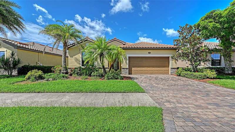 Live the Resort Lifestyle in Gran Paradiso. A sanctuary of sophistication and serenity nestled within the exclusive, 24-hour gated enclave of Gran Paradiso at Wellen Park, this exquisite 4-bedroom, 3-bath residence offers not just a home, but an elevated lifestyle. Designed for both comfort and elegance, the split floor plan is ideal for modern living, with a serene primary suite tucked privately at the rear, boasting dual walk-in closets and a spa-style ensuite bath complete with soaking tub, walk-in shower, and dual vanities. At the front of the home, a true guest suite with a private bath provides the perfect retreat for visiting family or multigenerational living, while two additional bedrooms share a well-appointed bath. Step outside and experience the unique tranquility of this quiet, golf cart-friendly community, where winding, scenic trails lead to a world of resort-style amenities. Pet-friendly and rich with activities, Gran Paradiso offers something for every lifestyle. Imagine beginning your mornings with yoga in the state-of-the-art aerobics and dance studio, spending your afternoons lounging by the 7,000 sq. ft. walk-in pool, or engaging in a lively match on the tennis, pickleball, or basketball courts. The expansive clubhouse features a billiards room, library, steam rooms, saunas, and a full-time activities director who curates a vibrant social calendar, ensuring every day feels like a vacation. Tucked within a peaceful and established neighborhood, this home is more than a residence, it's an invitation to enjoy the very best of Southwest Florida living. Whether you're sipping your morning coffee on the lanai or entertaining guests in the open living spaces, you will appreciate the privacy, elegance, and thoughtful layout this home provides. Gran Paradiso's prime location places you just minutes from white-sand Gulf beaches, the Wellen Park town center, Venice historic downtown, and the Atlanta Braves Spring Training Facility. Fine dining, boutique shopping, and quick access to I-75 and area airports make everyday life as convenient as it is luxurious. Whether you're seeking a full-time residence, a seasonal escape, or an exceptional investment, this home in Gran Paradiso delivers unmatched comfort, style, and community. Live where every day feels like a getaway. Your resort lifestyle awaits.