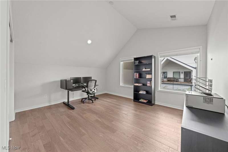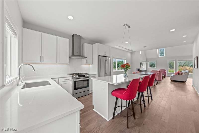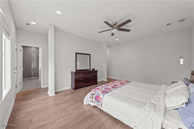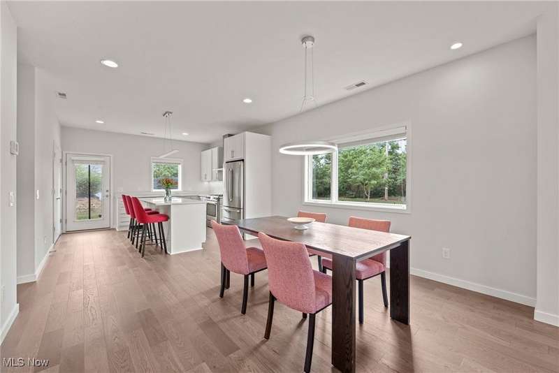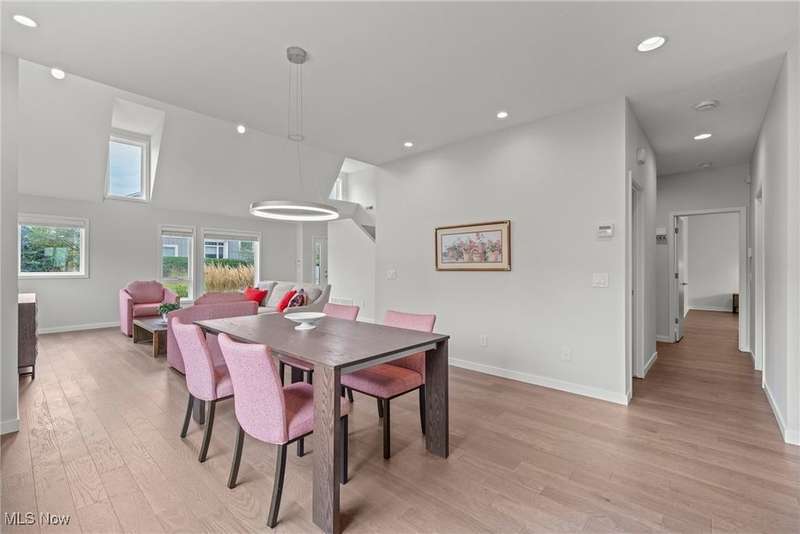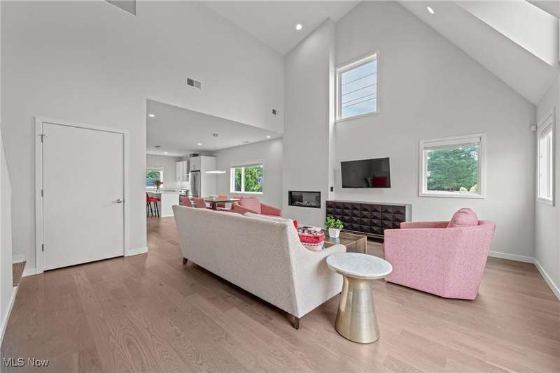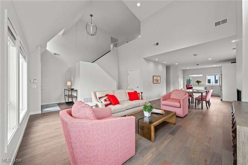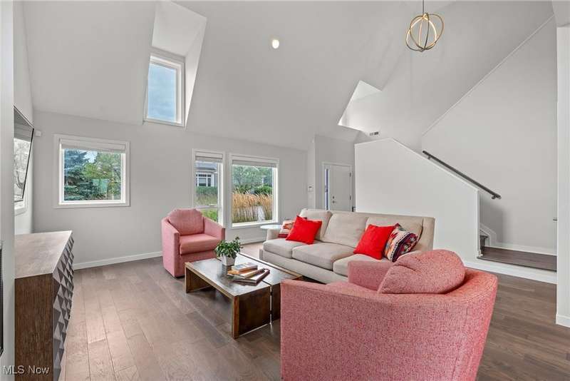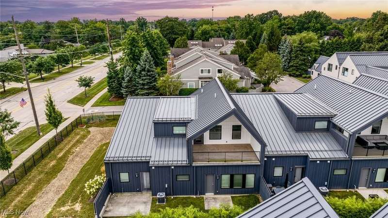 Fabulous contemporary, better-than-new townhome in the heart of Beachwood. As you enter the airy and bright foyer you are welcomed into the great room featuring soaring ceilings, large picture windows, rich hardwood flooring and a cozy electric fireplace. Adjacent is the sunny dining room and the chef's kitchen highlighted with a large center island breakfast bar, quartz countertops, Bosch appliances, subway tile backsplash and an abundance of gleaming white cabinetry with soft close drawers. A custom hood vent has been added over the range. An atrium door leads to a patio perfect for grilling. Steps away from the living room is the luxurious first floor owner's suite featuring two large walk-in closets, an atrium door leading to second patio and a soothing bathroom with dual sinks, and an oversized tile shower. Heated floor in the primary suite bathroom. The first level is completed with a laundry room, an added walk-in storage room/pantry and a powder room. The second level boasts 2 spacious bedrooms, a full bath and a loft. Enjoy summer nights on the breezy second floor covered terrace. The home is conveniently located close to shopping, restaurants and highways. Garage electric car charger. 2023 Upgrades include new hardwood flooring in primary, upstairs beds, stairwell and loft. 2025 Upgrades include new hardwood in living room to match the rest of property. Monthly HOA fee of $250.