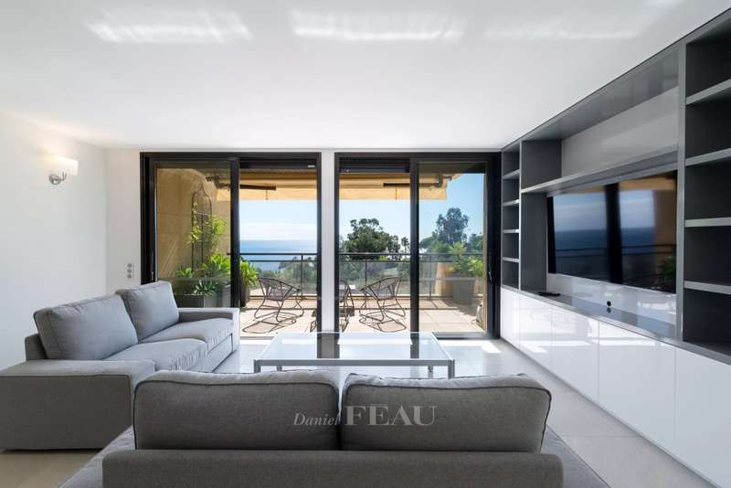 This superb apartment benefiting from four south-facing terraces overlooking the sea is in a luxurious residence set in a luxuriant garden and under 5 minutes from the beaches. It includes a spacious living/reception room, dining room and kitchen enjoying an open view of the Mediterranean, four bedrooms and four bath/shower rooms. Double garage. The residence was meticulously renovated in 2016, and benefits from two swimming pools, and a tennis court. 24/24 caretaker. Units:121