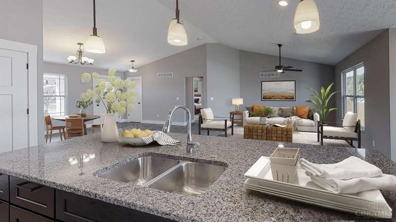 Hard-to-find quality built custom ranch - NO HOA! What a great price for a brand new home! You can pick your colors and finishes! Builder warranty - everything new - low maintenance & no worries! View of trees from your patio. Covered porch is a perfect place to unwind. Easy, one level living with open & flowing design. Features popular split floor plan allowing for a private primary suite with a massive walk-in closet & bath with a walk-in shower, exotic floor-to-ceiling tile, bathing bench & a double quartz-topped vanity. Eat-in kitchen features gleaming granite countertops, elegant Shaker soft-close cabinetry, island, stainless steel appliances & stylish Moen fixtures. The spacious great room is full of natural light & boasts a soaring cathedral ceiling that enhances the open layout. Low-maintenance, gorgeous LVT flooring in all shared living spaces & baths. Full lower level with full bath rough-in for future living spaces.