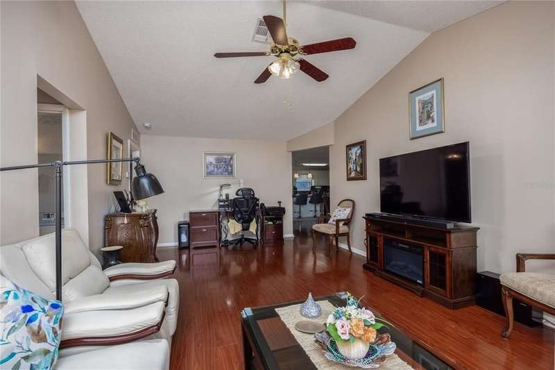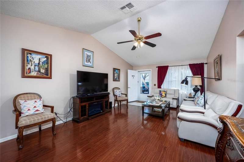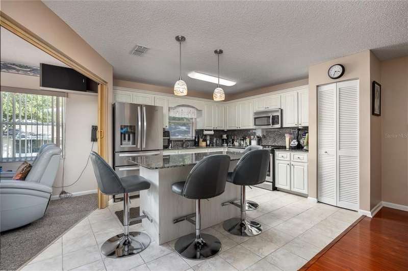 Welcome to this fully furnished two bed 2 bath end unit concrete block home in the desirable community of On Top Of The World. This home comes with all the high-end furniture and $17,000 worth of solar panels that are paid off. Walking through the front door, you will see an expansive living/dining area with high-end hardwood flooring. The kitchen features upgraded cabinets, granite countertops, and stainless steel appliances. This home also features wood flooring throughout most of the living space, with tile in the bathrooms. The living and family room combo and a nice Florida room are at the rear of the home. The spacious primary bedroom includes a bathroom with his-and-hers sinks and a spacious walk-in closet. The second bedroom and full hall bathroom can be closed off for guest privacy or as a home office. Through the dining room is the entrance into the roomy 1.5 car garage that has the washer and dryer. The monthly HOA fee includes basic cable, exterior maintenance, 24/7 guarded gates (3), and all the amenities that OTOW has to offer: swimming, tennis, fitness classes, pickleball, archery, billiards, softball, 175+ resident clubs, classes, golf cart/walking/bike riding paths and much more! A golf cart community with access to three shopping centers and multiple restaurants.