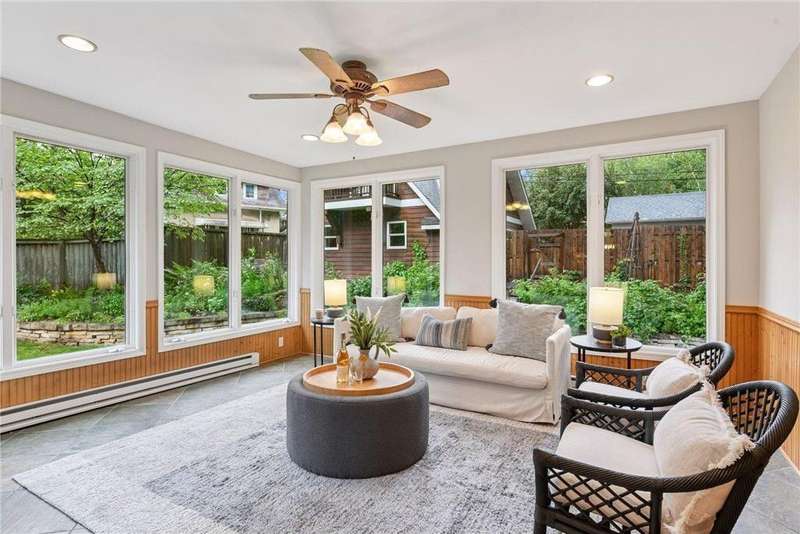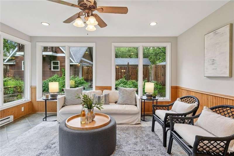 Storybook craftsman perfectly sited on a picturesque double lot, blocks to Bde Maka Ska and Cedar Lake! Enjoy complete privacy and serenity with beautifully manicured perennial gardens, stone walls, winding paver sidewalks, a circular patio, rooftop decks and an incredible covered front porch. Soaring vaulted and beamed ceilings with a grand stone woodburning fireplace give an incredible first impression upon entrance. The living room flows nicely into the formal dining with a window seat and open kitchen with granite counters and a breakfast bar. Fabulous sunroom has 3 sides of windows and a French door leading out to the conversation patio, gardens and fully fenced lawn. 3 bedrooms and 3 bathrooms including an owner’s room with seating area and large private rooftop deck. Cozy family room lower is the perfect place for movies and games. A rare find, triple garage with additional off-street parking for 4+ features a finished loft above, heated and cooled, which makes for an incredible private office, studio, or guest quarters. Walkability galore; lakes, parks, trails, and conveniences are all just steps away. Your urban oasis awaits!