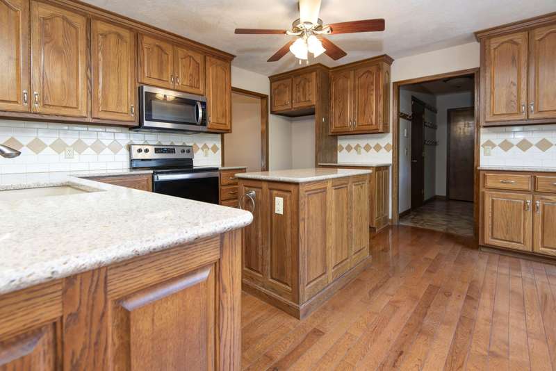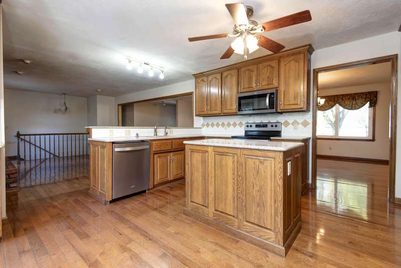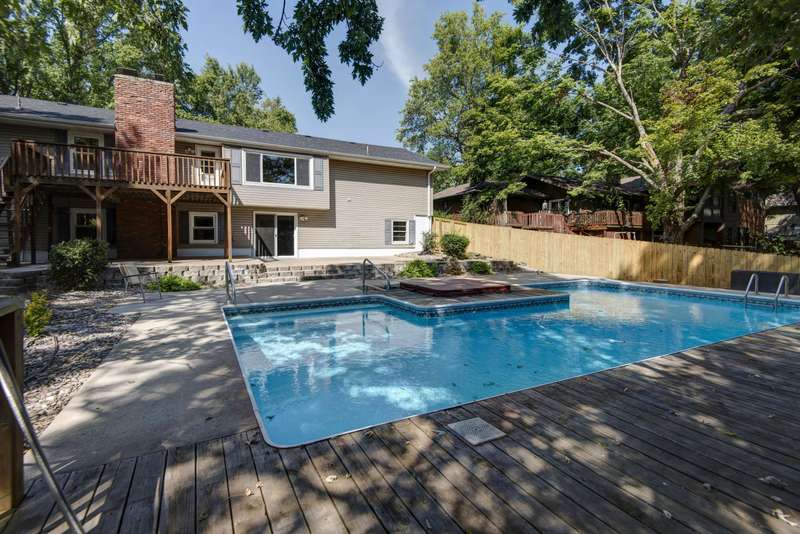 Wheel of Fortune pool! Seller used winnings from her appearance on Wheel of Fortune to put in swimming pool! Don't miss this house with a cool story! Great walkout basement home on .53 acre lot is located in desirable SW Springfield location. This home features: 4 bedroom, 3 full baths, formal dining, 3 living areas, 2 car garage and in-ground swimming pool! The main floor has living room with formal dining area, nice family room with gas fireplace. Updated kitchen (2020) with quartz counter tops, tile backsplash, bar seating, island, newer stainless steel appliances, pantry and breakfast nook dining area. Master bedroom with full bath with walk-in shower. Two more bedrooms, 2nd full bath, and laundry room. The basement has large family room with rec area, 2nd gas fireplace, wet bar and 4th bedroom that is also a 2nd master ensuite with walk-in closet, built-in desk, full bath with double vanities, jetted tub/shower. Storage room with utility sink and water softener. The backyard is your own private oasis with large sports pool with 2 wings. It's great for swimming laps or playing volleyball or badminton. The pool is heated and has fiberoptic lighting with multiple colors. Large patio around pool with built-in hot tub. The large fenced backyard also has deck, covered patio and storage shed. The backyard backs up to park at McBride elementary which has walking trails and frisbee golf course. It's an easy walk to park or McBride Elementary. Lots of updates over the past 4 years including all the big ticket items. New 95% Efficient HVAC in 2022! Hardwood floors on main floor in living room, formal dining room, family room, kitchen and dining area and hallway. Located on quiet dead-end street! This home has been loved and cared for by the same family for over 32 years! Call today for your private showing!