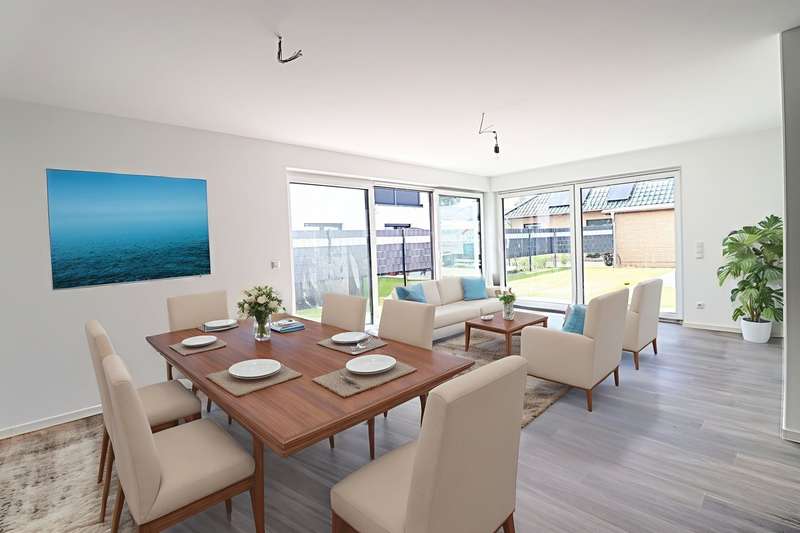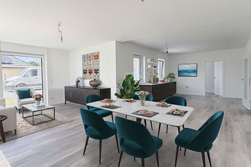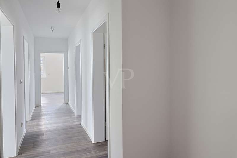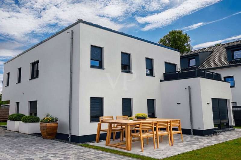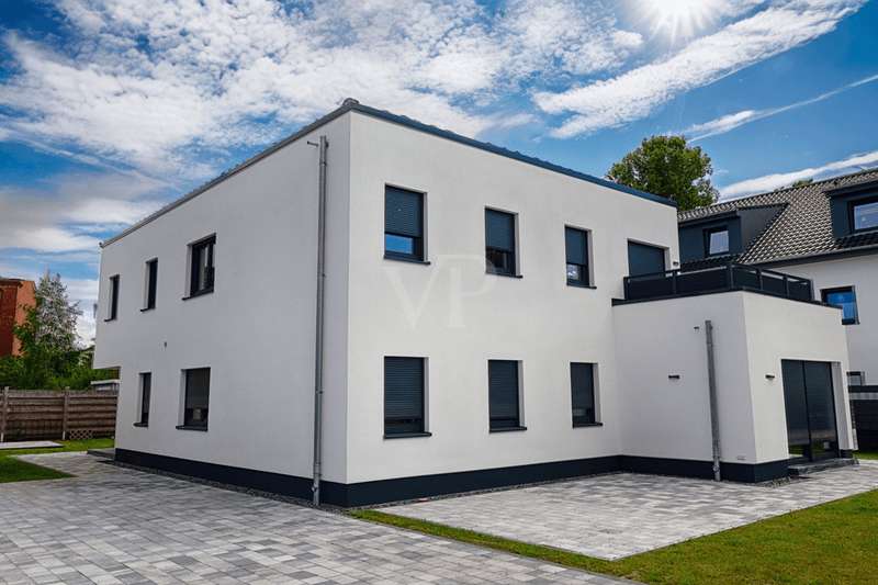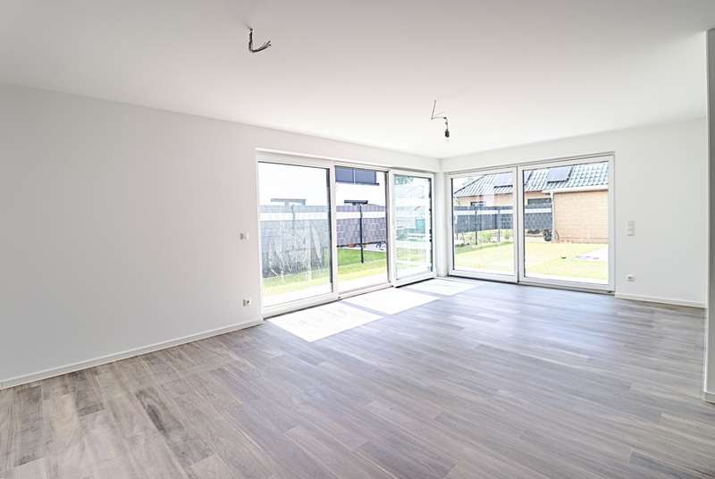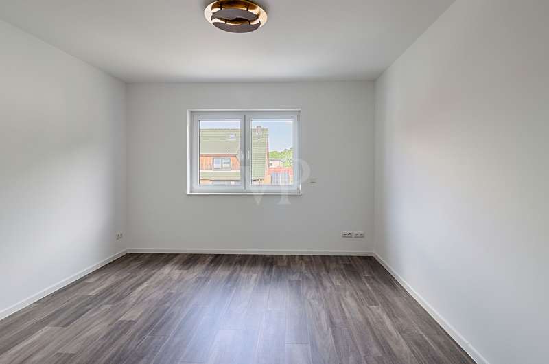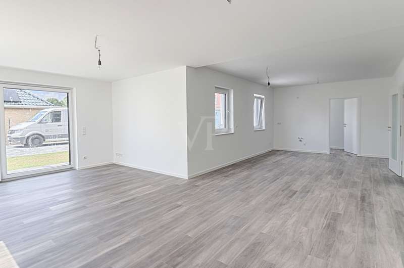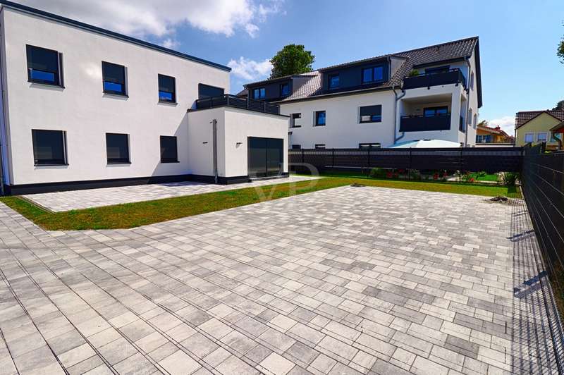 This appealing first floor apartment offers a generous living space of approx. 132 m² and is part of a new building from 2025. The property is in mint condition and impresses with its high-quality fittings, which include both central heating and underfloor heating. The apartment has a total of four rooms, including three well-proportioned bedrooms, which are ideal for families or couples with an additional need for work or guest rooms. The bathroom has a modern design and offers enough space for daily requirements. The room layout is well thought-out and functional, allowing optimal use of the living space. The living area is open plan and invites you to linger. Large windows provide plenty of natural light and a pleasant living atmosphere. The kitchen is directly adjacent to the living area and offers enough space for modern and functional furnishings. The property is situated on a fenced plot in a quiet location, which guarantees additional security and privacy. The apartment is situated in the second row, which contributes to the peaceful surroundings and offers welcome seclusion. This allows for undisturbed living while still offering the benefits of good connections to the surrounding urban infrastructure. The property also has two parking spaces. These offer the option of installing a wallbox, ideal for electric vehicles and a contemporary approach to mobility. This is a special feature that offers the future residents of the property flexibility and convenience in their daily lives. The apartment's fittings can be described as upscale, which is reflected in the choice of materials and the quality of the construction work. These features guarantee a high level of living comfort and enhance the appeal of the property for discerning buyers who value quality. Overall, this apartment offers an excellent opportunity for prospective buyers looking for a modern, well-connected and high-quality home. Arrange a viewing today to see the benefits of this property for yourself.