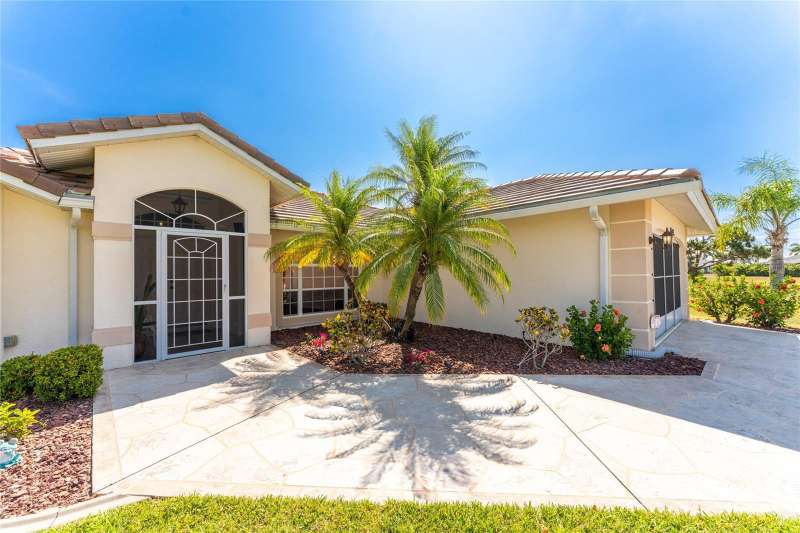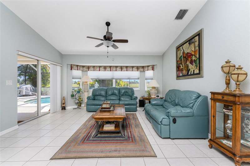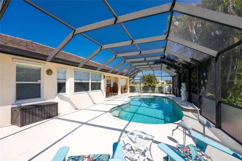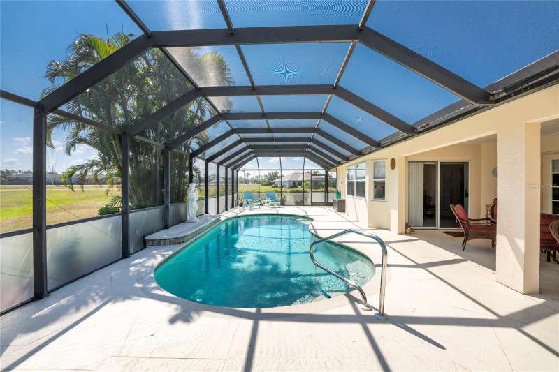 SIGNIFICANT PRICE REDUCTION! Welcome to your new home in beautiful Burnt Store Lakes located in desirable X flood zone. This lovingly maintained ONE-OWNER 3-bedroom, 2-bathroom POOL HOME with LIVING AREA, DINING AREA, FAMILY ROOM exudes pride of ownership inside and out. This home features a NEW 2023 STYLISH FLAT TILE ROOF AND GUTTERS and spacious tiled living areas with high ceilings. Step into the inviting great room that seamlessly combines living and dining spaces, ideal for entertaining guests. The kitchen is a chef's delight, equipped with plenty of WOOD CABINETS, a stylish tile backsplash, solid surface counters, STAINLESS FRIGIDAIRE APPLIANCES and a EAT-IN AREA WITHIN THE KITCHEN. Off the kitchen, a comfortable FAMILY ROOM awaits, perfect for relaxing and casual gatherings. Enjoy panoramic views of the pristine pool, thanks to the expansive glass doors that flood the interior with natural light. Solar window film ensures energy efficiency while custom window treatments and blinds add a touch of sophistication. Retreat to the primary bedroom suite featuring plush carpeting, his-and-her closets, and a luxurious ensuite bathroom with a high vanity, shower, and whirlpool tub. Two additional guest bedrooms and a dedicated laundry room with GE WASHER and DRYER provide ample space and convenience. Outside, enjoy the tranquility of your .29-ACRE LANDSCAPED OASIS, complete with its PRIVATE WELL FOR IRRIGATION, a STAMPED CONCRETE DRIVEWAY AND WALKWAY, CONCRETE CURBED PLANTING BEDS, and a SPRAWLING GREENBELT for added privacy. The HEATED POOL, nestled within a SPACIOUS LANAI and POOL CAGE, offers the ultimate retreat for soaking up the Florida sunshine year-round. This home is not just about luxury; it's also about practicality. This home comes with a BACKUP GENERATOR, SURGE PROTECTION, RHEEM A/C, as well as a WHOLE HOUSE WATER FILTRATION SYSTEM, every detail has been thoughtfully considered for your comfort and convenience. Burnt Store Lakes is a beautiful Deed Restricted Community with new custom homes being built throughout the neighborhood. Public water and sewers are in place, and this home has its own well to irrigate your lawn and plantings. Burnt Store Lakes Residents enjoy the Community Park which has covered picnic benches, a playground, and restrooms. There is a kayak ramp for Residents only that accesses Charlotte Harbor and the incredible wildlife in the Charlotte Harbor Aquatic Preserve such as Manatees, porpoises, sea turtles and an abundance of game fish. Next door at Burnt Store Marina, SW Florida’s full-service deep-water marina, restaurants are open to the public and amenities such as golf and boat dockage may be available. It’s just a short drive to Downtown Punta Gorda, one of Florida’s best small towns, with plenty of restaurants and town activities to enjoy. Just across the bridge in Port Charlotte is the new Allegiant Airways Sunseeker Resort. Or to Cape Coral, one of the largest cities in Florida. It doesn’t get any better than this to live your dream Florida Lifestyle. Schedule your private showing today and come enjoy the Florida lifestyle.