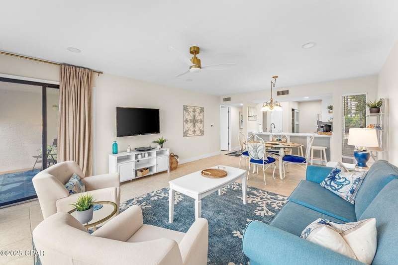 Welcome to this exceptional 2-bedroom, 2-bath villa located at Edgewater Beach & Golf Resort in Panama City Beach. Offering an ideal blend of luxury, privacy, and resort living, this villa has been fully remodeled with high-end finishes and is perfectly positioned as an end-unit for enhanced privacy and convenience. Whether you're looking for a private coastal retreat or an investment property, this villa checks all the boxes.Situated on the first floor, this villa offers easy, stair-free access. One of the standout features of this property is its rare second private patio, providing a unique outdoor space for dining, relaxing, or enjoying the serene views of the resort. It's a rare find within the community and an attractive bonus for those looking for additional outdoor living space.The villa has been thoughtfully remodeled from top to bottom, including new wiring, plumbing, HVAC, and a hot water heater, ensuring long-term reliability. The open-concept living area has been modernized, creating a bright, airy space that flows seamlessly from room to room. Large windows let in plenty of natural light, while the removal of outdated features like popcorn ceilings gives the space a contemporary, updated feel. The living and dining areas are designed for both relaxation and entertaining, providing a comfortable atmosphere for everyday living.At the heart of the home is a beautifully designed kitchen. It features stainless steel appliances, including a refrigerator, oven, microwave, and dishwasher. Updated cabinetry provides ample storage, while the elegant granite countertops add both style and durability. This kitchen is perfect for both hosting guests and preparing meals in a functional, modern space.The master suite is a true sanctuary, offering generous closet space and en-suite bathroom. The bathroom features a modern walk-in shower, sleek fixtures, and contemporary finishes, creating a relaxing and luxurious retreat after a day spent enjoying the resort amenities or the beach. Directly outside the master bedroom patio you can view the tranquil lagoon pond filled with majestic ducks and turtles.The guest bedroom offers comfort and privacy, making it perfect for visiting friends or family. The second full bathroom has been completely updated as well,with high-end finishes, providing a refreshing experience for your guests.Resort Amenities Just Steps Away-Edgewater Beach & Golf Resort is renowned for its extensive array of amenities, all located just steps from your front door. Enjoy direct access to the pristine beach, perfect for sunbathing, swimming, or taking peaceful evening walks. Golf cart shuttles are available throughout the entire resort, Golf enthusiasts will love the on-site nine-hole exclusive golf course, while tennis, pickleball, shuffleboard, and basketball courts provide plenty of recreational opportunities. For those seeking relaxation, the resort offers pools, hot tubs, and a fitness center.This villa's prime location means that dining, shopping, and a luxurious spa are all within walking distance. No car is necessary--everything you need, from world-class cuisine to boutique shopping and pampering spa treatments, is just a short stroll away.With its fully remodeled turn-key interior, rare second patio, and access to exceptional resort amenities, this villa is an ideal property for anyone looking to move in or generate rental income. A rare opportunity- this exceptional villa unit 401 is a league of its own and should be on the top of YOUR list!!Schedule a showing today to experience all this condo has to offer! Don't Miss out on a Amazing chance to own this impeccable GEM at Edgewater and Beach Resort!