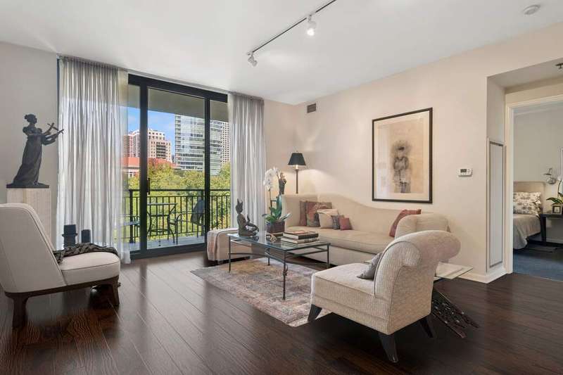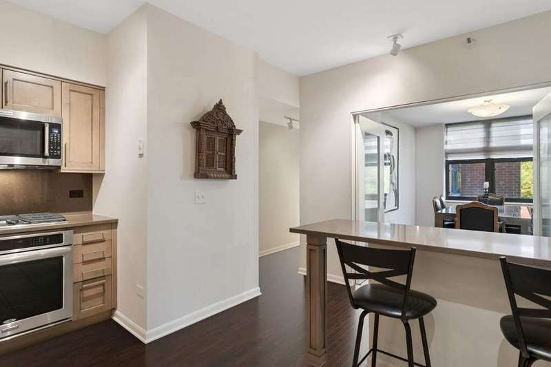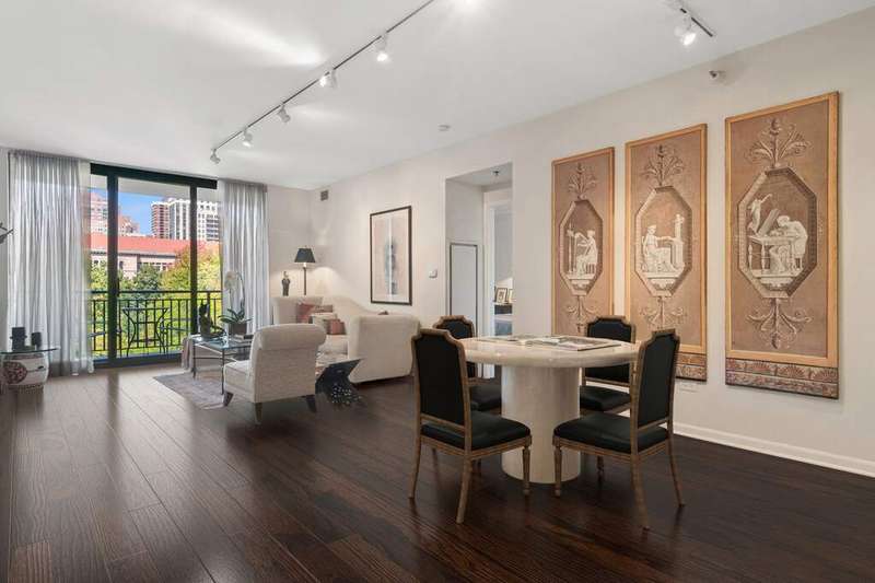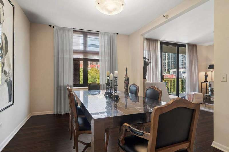 Fabulous location of this 3 bed 2 bath home at the Park Newberry with views of Washington Park and the Newberry Library. Large sized living room and includes a 3rd bedroom that was converted to a separate dining room. Both rooms have built in cabinets for additional storage for all your entertaining accessories. Eat in kitchen with stainless appliances, granite counter tops, and breakfast bar. Entrance to your private balcony with view of Washington Park off the living room. Spacious primary suite includes dual custom walk in closets, en-suite bathroom with dual vanities, walk in shower and separate tub. This split floor plan which offers privacy for the large 2nd bedroom with a built in desk has an enormous custom walk in closet, 7'X16". Unit features 2 zoned heating and air conditioning and full sized washer/dryer. Recent renovation of the amenities , including lobby and hallways, a renovated amenity floor with gym, party room, and business center, and modernization of all five elevators. Building includes sundeck, mail room, bike room & dry cleaner. A deeded garage space (#P229) with an adjacent storage room is included. The building is pet-friendly (two dogs up to 25 lbs. each) and offers 24-hour door staff, on-site management, and 24 hour maintenance Amazing location that is close to restaurants, Whole Foods, Michigan Ave and Oak Street Shopping, Washington Park, and transportation. (3rd Bedroom was converted to dining room and can easily be converted back, floors are virtually staged from tile to wood)