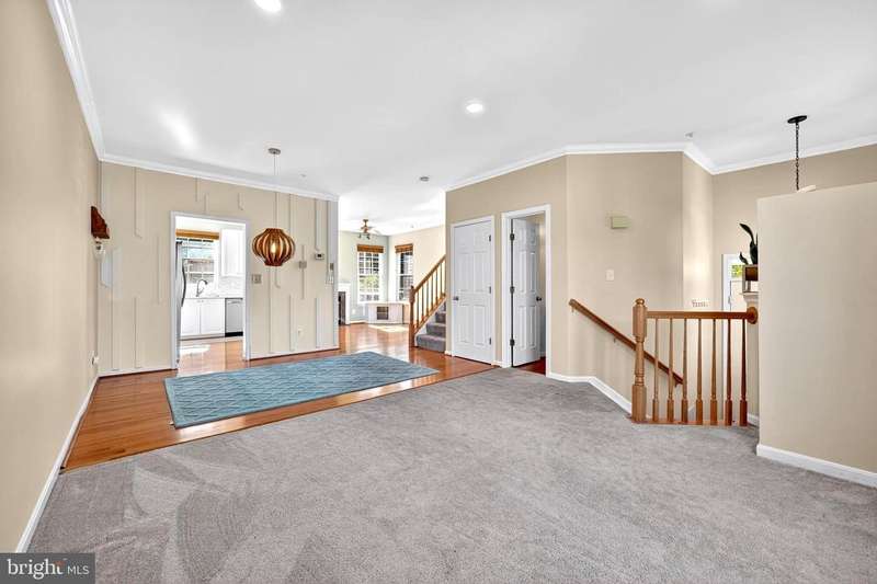 PRICE REDUCED $10,OOO. HURRY! BE IN YOUR BEAUTIFUL NEW HOME FOR THE HOLIDAYS! Artistry in Motion- Step into a home that's not just lived in, but lovingly curated. This stunning end-unit townhome, nestled in the sought-after Perrywood community, is more than MOVE-IN READY -it's a showpiece of elevated living. You're greeted by a soaring foyer with 10-foot ceilings and gleaming hardwood floors that set the tone for sophistication. Custom crown molding flows gracefully through the foyer, powder room, dining room, and living room. Luxurious faux wood blinds frame every window, casting the perfect light on custom designer finishes throughout. The powder room makes a statement with bold wallpaper and a striking backsplash. The open concept living room invites relaxation with custom built-ins and plush carpet, while the adjacent dining area captivates with hardwood flooring, elegant molding, and a stunning artistically designed accent wall. The kitchen is a chef's delight, featuring stainless steel appliances, hardwood floors. The designer kitchen is an effortless connection to the warm and welcoming family room. Centered around a cozy fireplace with a marble surround, hearth, and mantle, this space is the heart of the home. In the family room designer touches abound-from the custom blinds to a sleek ceiling fan that complements the overall aesthetics. DO NOT MISS THE NEW (MAY 2025) CUSTOM CRAFTED ENTERTAINMENT DECK AND PATIO that is perfect for relaxing or entertaining family and friends. Upstairs, discover three spacious bedrooms, each with cathedral ceilings that lend a sense of airy grandeur. The hall bath is a vision in contrast-white cabinetry, bold black fixtures, and floating shelves come together in a crisp, modern design. The primary suite is your personal retreat, featuring a walk-in closet, vaulted ceiling, and a spa-inspired ensuite bath. Indulge in the jetted tub, framed by luxury vinyl plank, or refresh in the separate glass-enclosed shower under a cathedral ceiling and skylight. Even the cabinetry sparkles with custom artistic drawer pulls. The lower level is designed for living and entertaining. A bright recreation room with recessed lighting opens to a new (2025) beautifully custom crafted brick patio, perfect for gatherings or quiet moments. A second powder room continues the artistic theme with designer wallpaper and black accents that tie it all together. This is more than a home. This is artistry in motion. Bold, beautiful, and undeniably unique-your new lifestyle begins here.