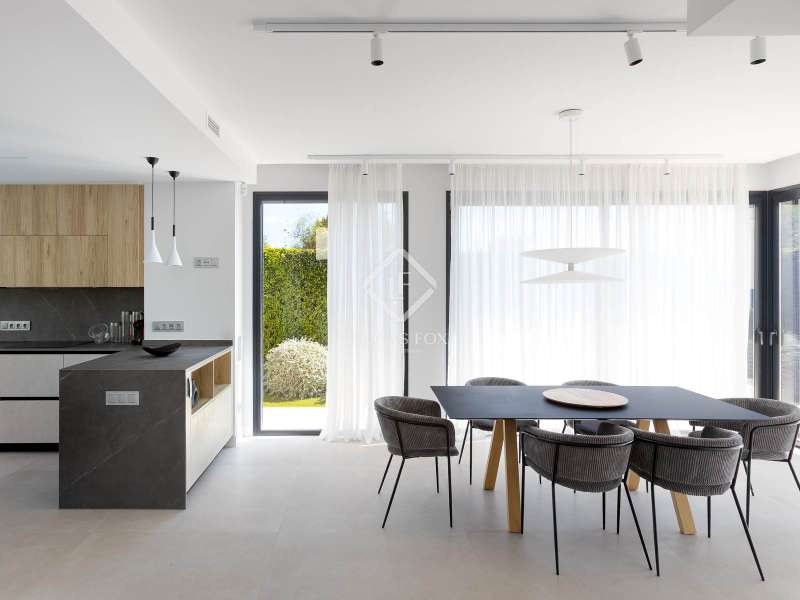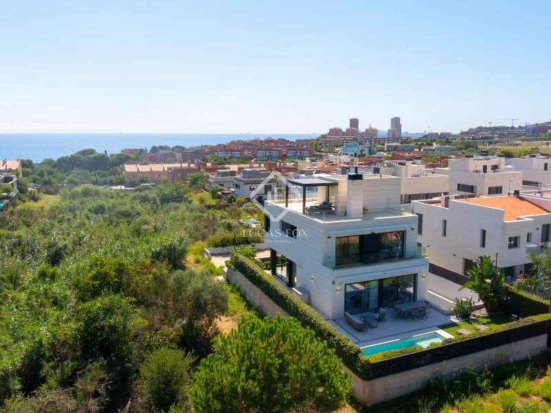 Located in a quiet residential area of Montgat, just 20 minutes from centre Barcelona, this property is within walking distance of the beach, the prestigious international school, and just a 5-minute car from the renowned El Masnou marina. This bright and comfortable property has been designed to offer a modern and sophisticated lifestyle, blending contemporary architecture with high-quality finishes and cutting-edge technology. With a constructed area of 355 m², the house offers spacious living spaces ideal for family-friendly life. Its elegant suites feature private bathrooms, built-in wardrobes , and large floor to-ceiling windows offering spectacular views of the Mediterranean Sea. The bathrooms are equipped with designer faucets and high-end materials. The spacious, open-plan living-dining room blends seamlessly with the modern open kitchen, equipped with high-end appliances , and offers direct access to the garden. Among its many outdoor spaces, there are several private terraces with sea views, including a large terrace on the top floor, ideal for relaxing and contemplating the surroundings. The low-maintenance garden features a modern pool and is surrounded by green areas that provide privacy and tranquility. The property features an advanced security system with video surveillance cameras, perimeter sensors, motorized blinds, and panoramic windows. It also features ducted air conditioning, underfloor heating, a solid oak staircase, a water softener, and an electric car charging station.