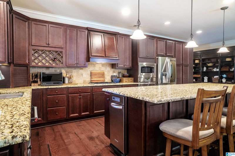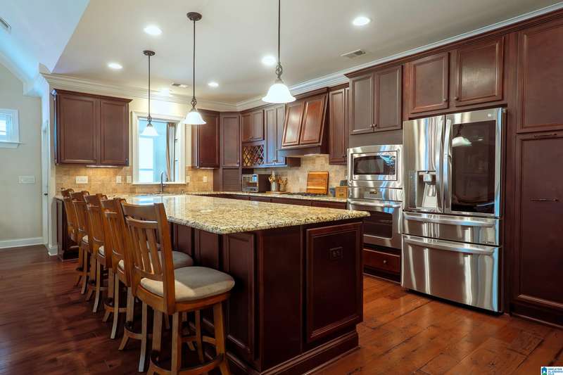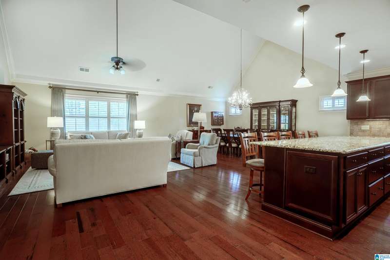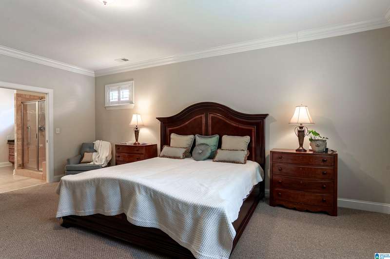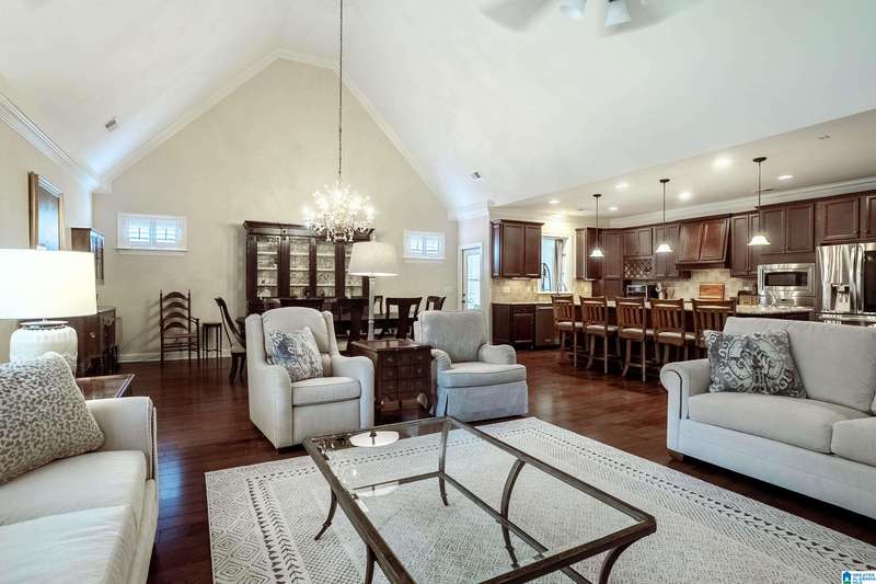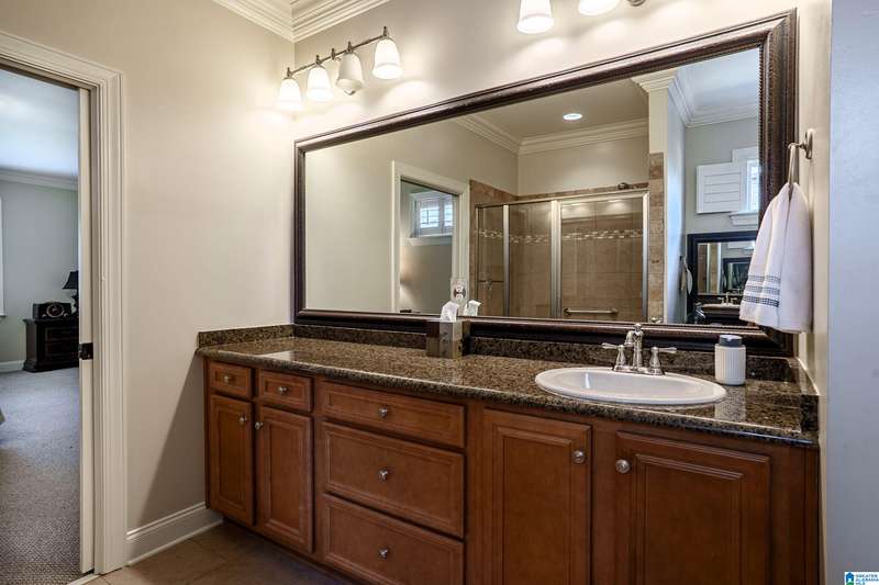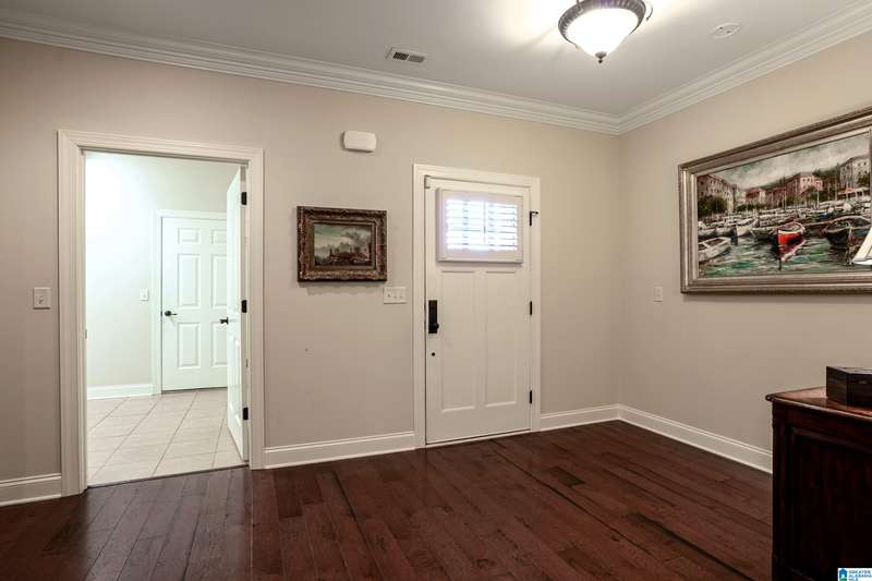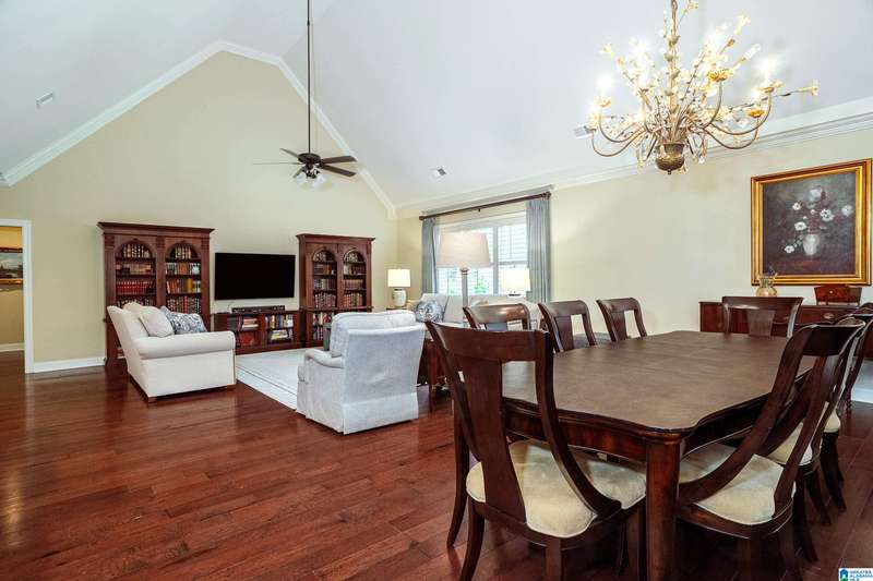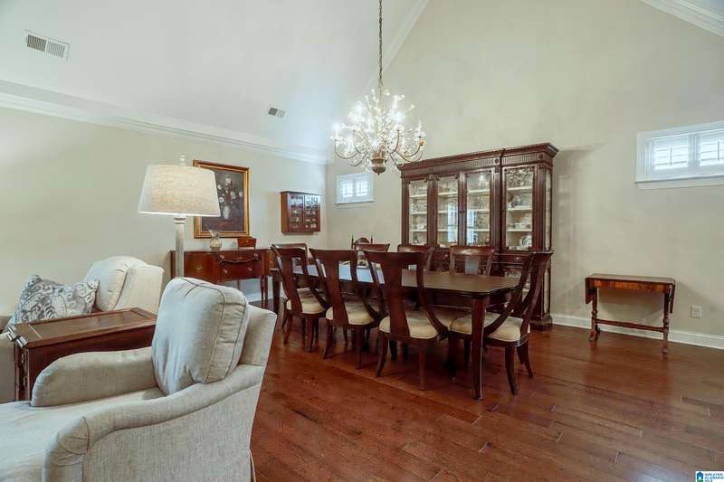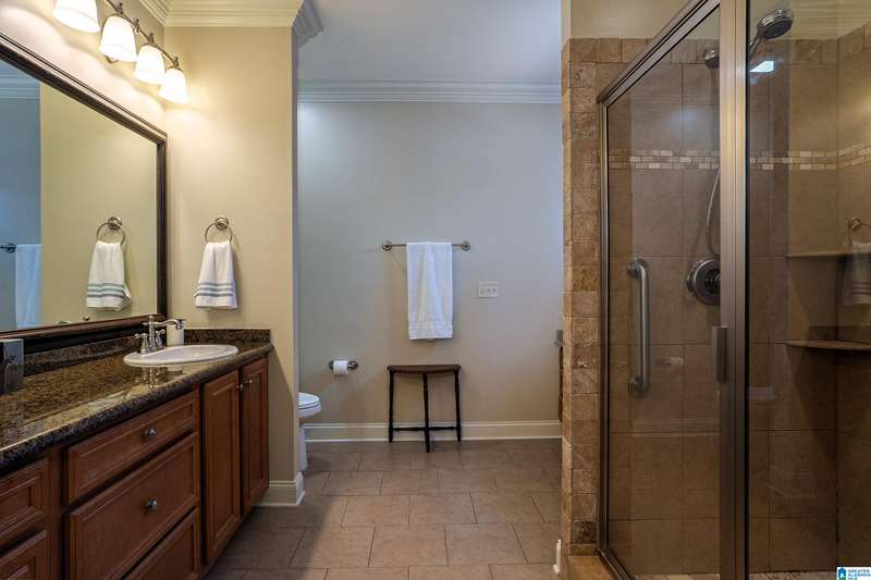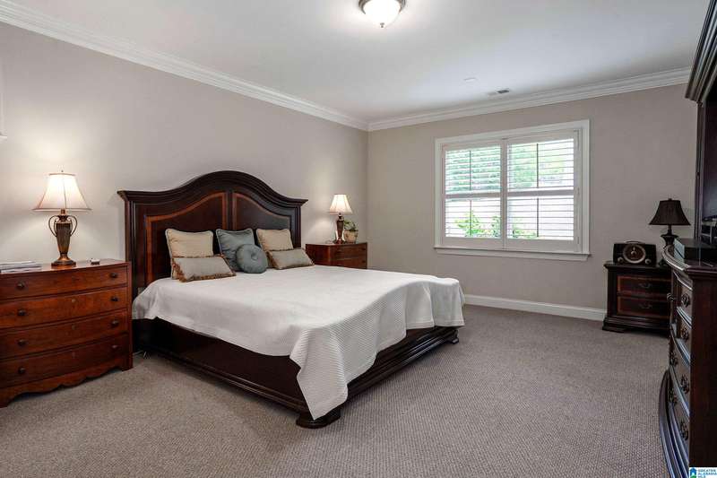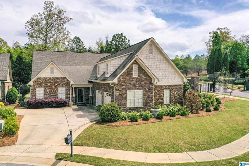The Cottages of Danberry, an adult (55+) gated community in Inverness, Hoover, is the setting for this 3BR (2 on the main), 3.5BA home with 3359 +/- SF of open living. Attractive features include wooden floors, soaring ceilings, moldings, granite counters and plantation shutters. The spacious family room is open to the kitchen and dining room, making it perfect for relaxing. The kitchen has dark cabinetry, huge island, gas cooktop, pantry and plenty of work and storage space. A sunroom provides access to the rear patio and yard area. The master suite has 2 walk-in closets and the bath area has a large shower and his/her vanity areas. A second BR has a walk-in closet and full bath with a walk-in jetted tub/shower combination. An office/den at the front of the home offers a half bath. Large upstairs suite with full bath - just a perfect retreat. Spacious garage and large laundry. Complete yard maintenance is provided with your HOA fees. Additional opportunities at the senior center.