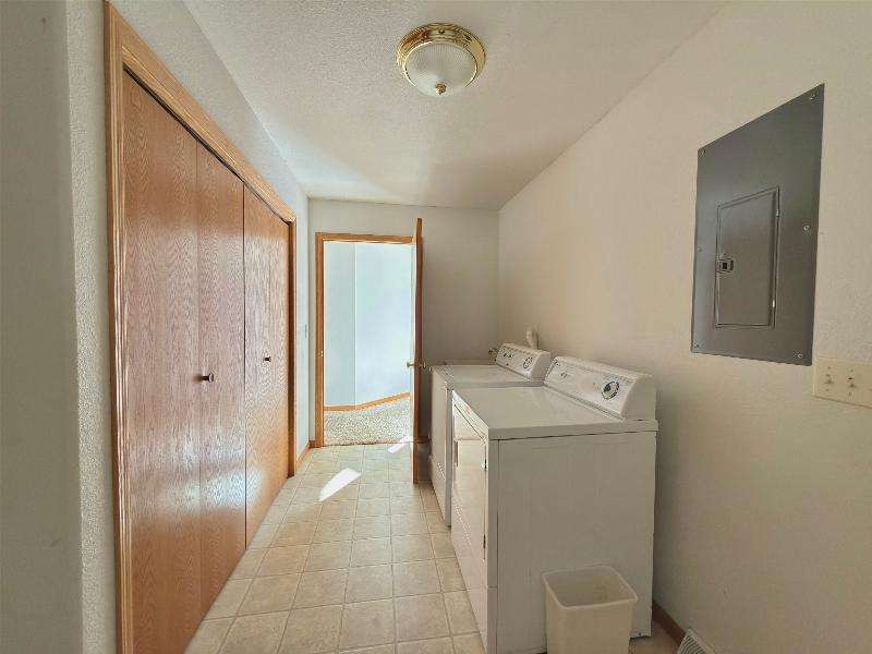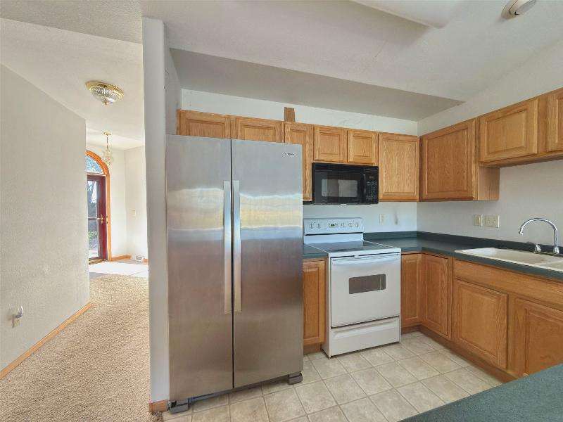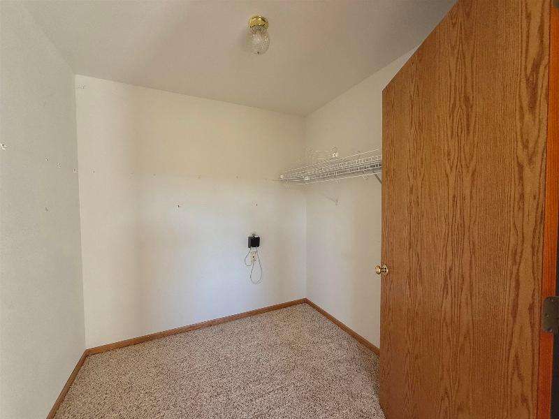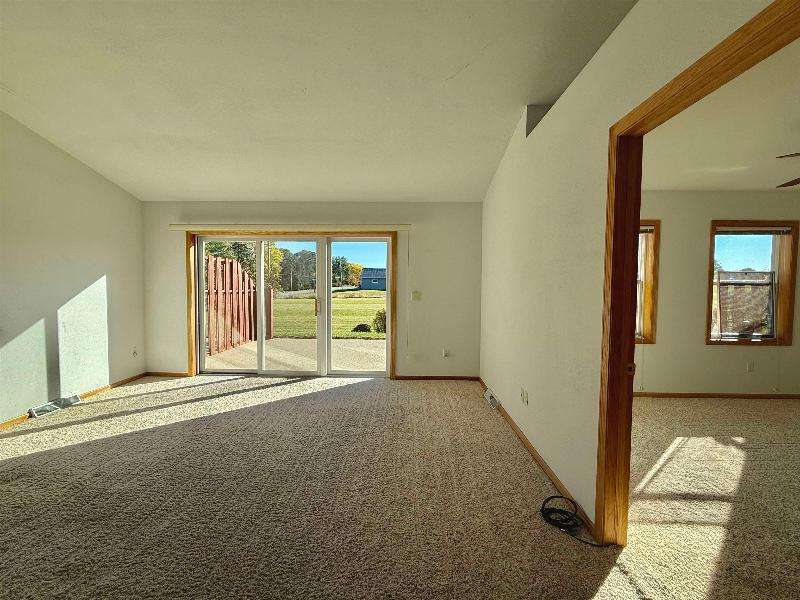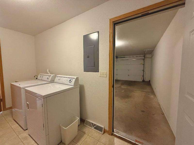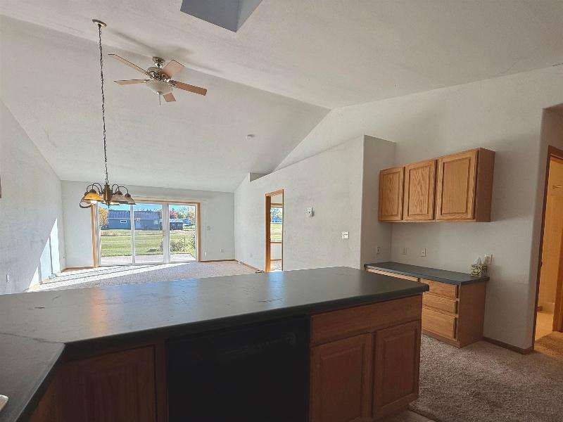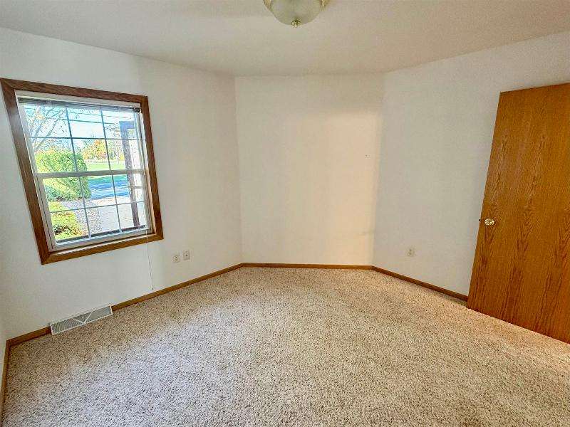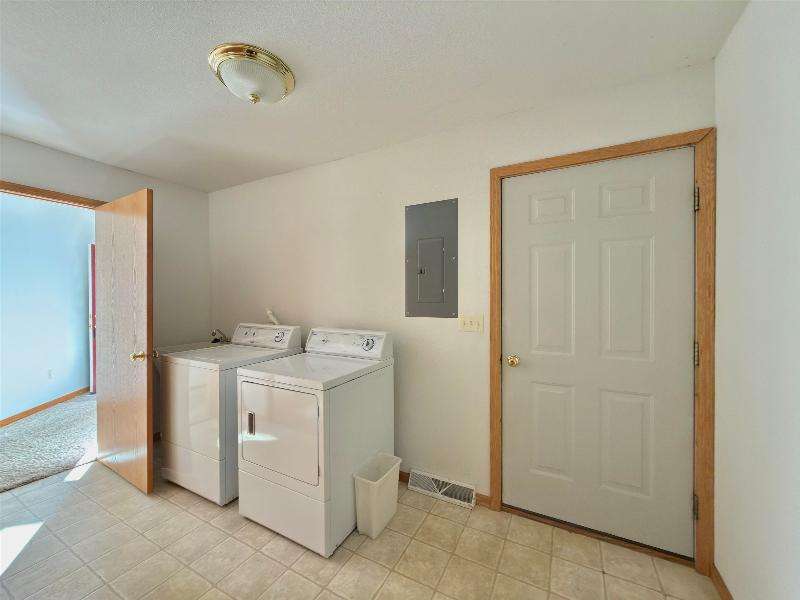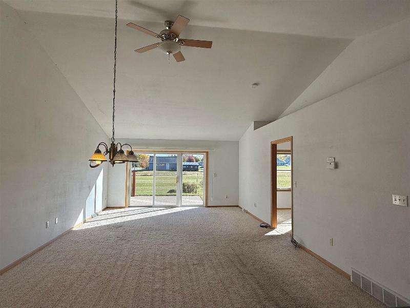 Give yourself a break from lawn care and snow removal when you call this condo home! This zero entry 2 bedroom condo offers many accessibility features such as wide doorways, step in shower, low pile carpeting, and main floor laundry. The cathedral ceilings and skylight make this good sized unit feel even larger. Full basement with plenty of room to add finished square footage to your property and is already stubbed for a 3rd bath. Attached 2 car garage, forced air heating and central air conditioning. Condo fees $133 monthly and include snow removal and lawn care. Flooring and cosmetic updates are needed.