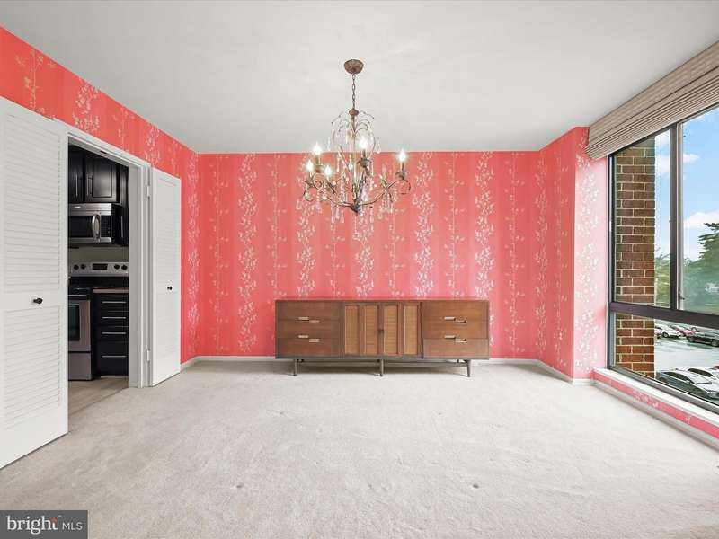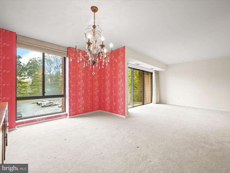 Introducing this spacious two bedroom, two bathroom condo on the fourth floor of the desirable 7 Slade building in the Suburban Oaks community. Inside, a generous living room opens to a private covered balcony through sliding glass doors, while an elegant formal dining room flows into a well-appointed kitchen featuring stainless steel appliances and 42-inch cabinets. The primary suite offers two walk-in closets, a vanity dressing area, and a private bathroom with a walk-in shower. A second bedroom includes built-ins, a walk-in closet, and easy access to the second full bathroom with a tub shower. Additional highlights include in-unit laundry, private gated parking, a doorman in the lobby, and an outdoor community pool. All utilities are included in the monthly condo fee. Ideally located in Pikesville with convenient access to 695, 795, shopping, dining, and public transit options. Some images have been virtually staged.