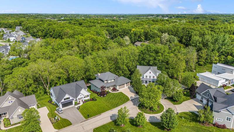 A Truly Special Offering in Waterleaf! For the first time, this thoughtfully designed custom home is available in the highly desirable Waterleaf neighborhood. Nestled at the end of a cul-de-sac, the residence sits on a half-acre wooded lot, bordered by a lush common area that enhances privacy and serenity-a perfect setting for enjoying nature's quiet beauty.Step inside to a light-filled, open-concept layout where soaring ceilings & carefully curated designer details create an atmosphere of understated elegance. The home's upper level features a luxury primary suite, cozy yet spacious family room, & two additional bedrooms-ideal for relaxation and entertaining.The daylight lower level offers a generous 4th bedroom, 3rd full bath, inviting game area, and a 2nd family room. Welcome Home!