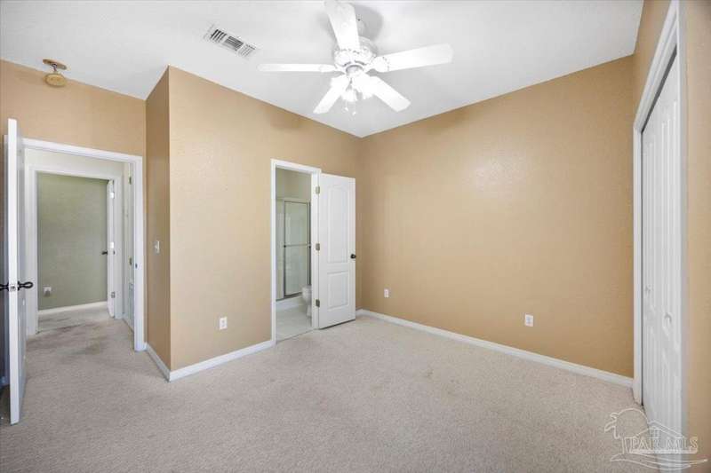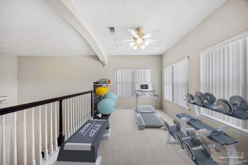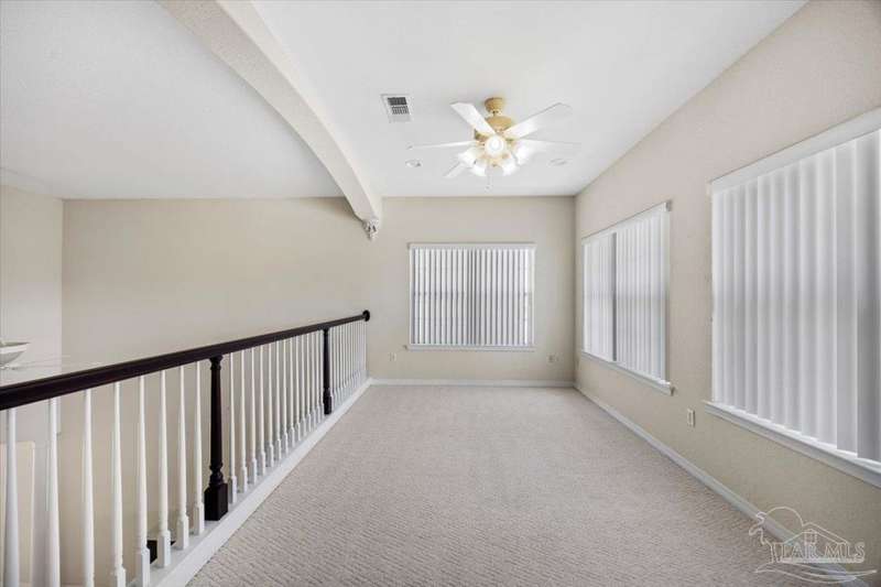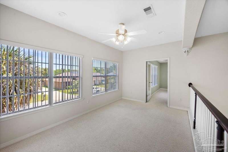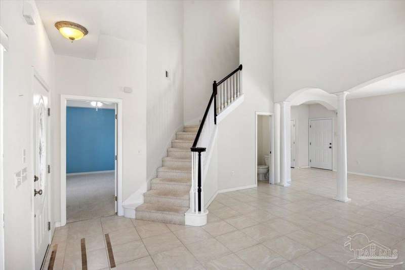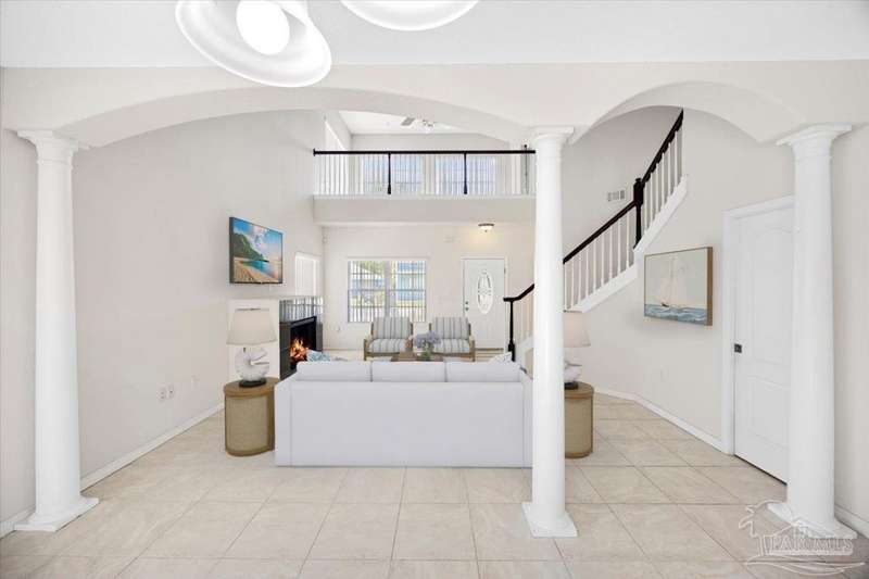 WELCOME HOME to your southern dream oasis with calm coastal breezes of the quiet and serene Innerarity Point. You have easy access to the calm waters of the Intercoastal, Perdido Bay, Johnson Beach, & Perdido Key Beach as well as several boat launches in the area. NAS Pensacola is just minutes away and if you like The Blue Angels you're in for a treat as you can see from your balcony. This beautiful 3 bedroom 3 and half bath home welcomes you from the moment you pull up. There's one bedroom on the bottom floor & two bedrooms on the second floor with each bedroom has its own en-suite with an additional half bathroom on the bottom floor. Upstairs you find a very large master suite that connects with a loft to use as an at-home gym, study room, a place to enjoy your morning coffee or evening relaxation. The roof is 2020, HVAC is 2022, water heater is 2022, and the water filtration system is 2022. The Cathedral-style ceilings show off the vastness of the living room. There is a master bedroom located on the main floor!! LVP flooring in the main living areas with new carpet in the bedrooms and stairway. The community has a 25' access to the bay to enjoy fishing, canoeing, paddle boarding or sunsets over the bay just steps away. Schedule your showing now before this beautiful home is gone!