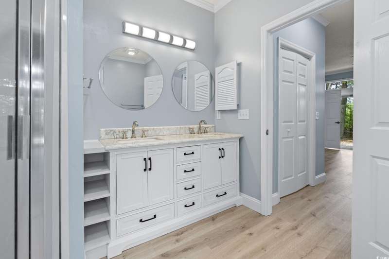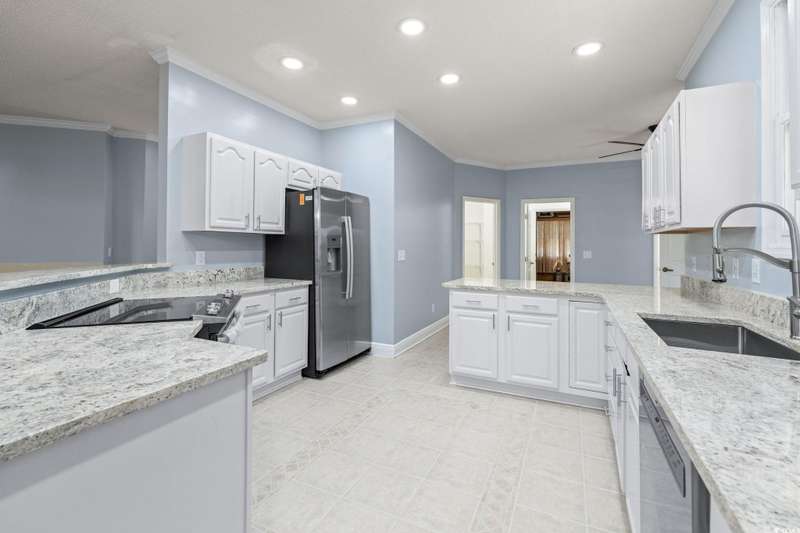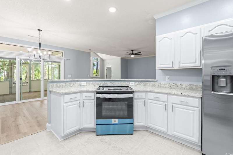 This inviting 3 bedroom, 2.5 bathroom home in the prestigious Tidewater Plantation golf course community has been completely transformed with numerous premium upgrades! Every detail has been professionally updated including: Newer HVAC system (July 2024), LVP flooring throughout, seven replacement windows in the great room (January 2025), five new hurricane-rated sliding glass doors, and beautiful Level 2 granite countertops in the kitchen and all bathrooms. The gourmet kitchen boasts new stainless steel appliances, sink, and faucets, while the primary suite features a new vanity and custom his & hers walk-in closets. Additional upgrades include new light fixtures and ceiling fans throughout, updated electrical outlets, fresh interior and exterior paint, painted garage floor, and new window screens. The outdoor space has been enhanced with 10 trees professionally removed for better views and natural light. Relax on the screened porch overlooking the wooded setting, or enjoy the paver patio - perfect for coastal living! Home is situated on a lot where the adjacent lot beside of it is wooded and private with no home on it. Come visit this home and discover the tranquility of its location. Tidewater Plantation offers resort-style amenities including golf, tennis, swimming, fitness center, beach cabana access, and clubhouse. This turnkey home combines luxury upgrades with the best of coastal golf course living. Don't miss this opportunity to own a completely renovated gem in one of the area's most desirable communities!