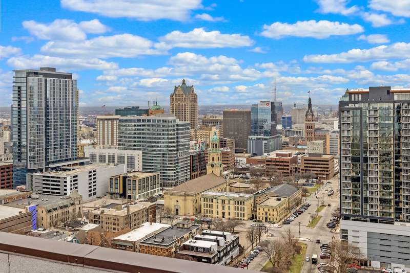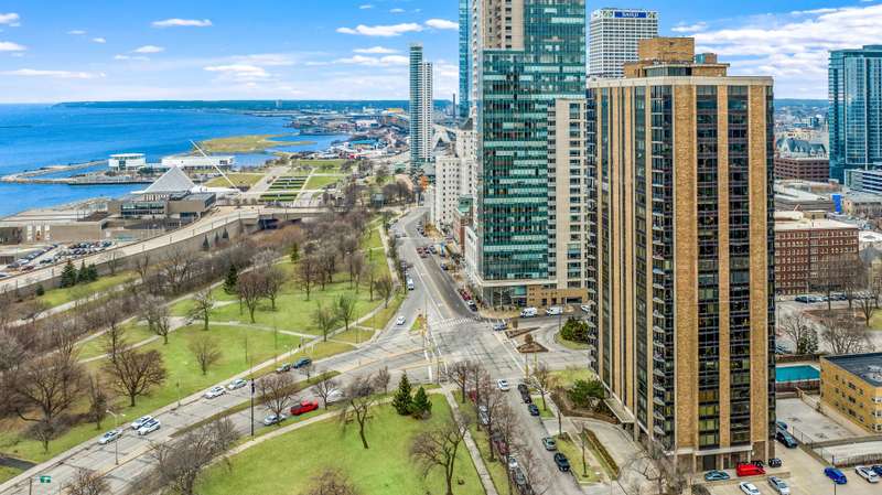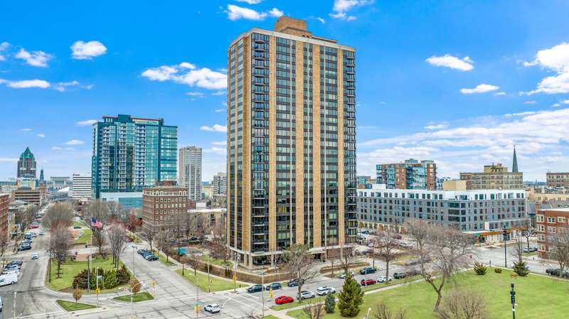 Searching the city wide for a unique space to compliment your lifestyle? This eastern facing unit explodes w/light and offers tree top and lake views. This home has been in the same family for decades. Some updates include freshly painted walls (for sale) and updated flooring in the baths. At this affordable price, we will let you design and create your own dream pied-a-terre. Condo amenities include 24-HR security, snappy new community room, lobby and hallways, heated outdoor pool/grilling area, exercise room, 28th FL observatory/laundry, strong reserves and new windows. Condo fees include heating/cooling. Stoll MKE's "Greenvich Village" marveling at historic buildings & new skyscrapers. East side hot spots, the lake, museum and trendy shops are just steps away. Grab the MKE Hop and go!