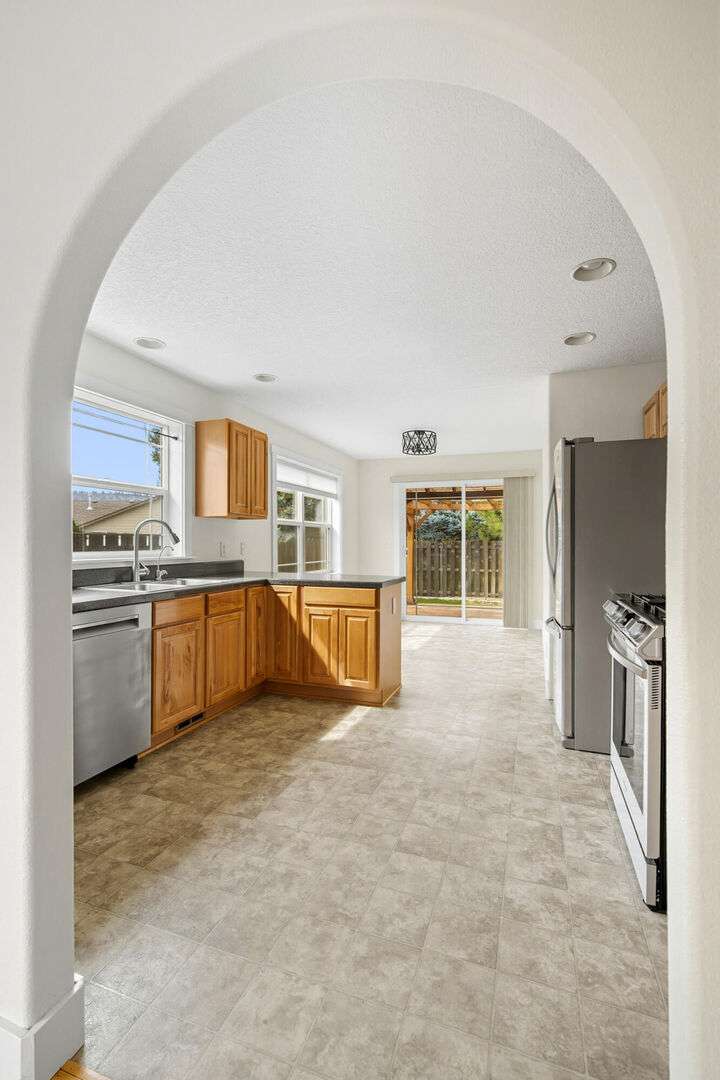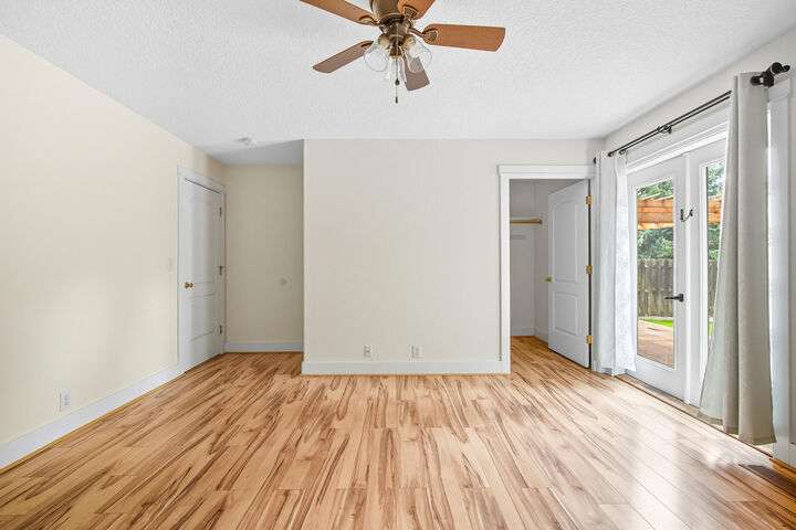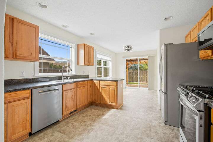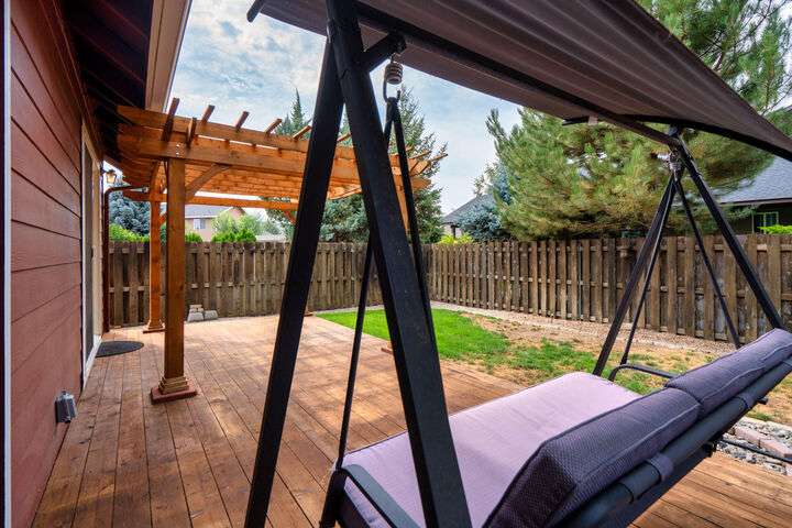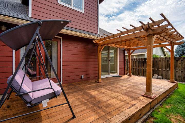 This charming 3-bedroom, 2.5-bath townhome is nestled on a quiet cul-de-sac, offering comfort, convenience, and a little extra privacy. The main-level primary suite makes life easy, with a spacious walk-in closet and French doors that open right to your own backyard retreat. You'll love the warm wood floors downstairs and newer carpet upstairs for a move-in-ready feel. Out back, enjoy a private, fully fenced yard—complete with a new pergola and wood deck—perfect for gardening or relaxing with a morning coffee. And the location? You're just around the corner from Gervis Park, Meadow Lakes Golf Course, and the Crook County Library—so there's always something to do close to home.
