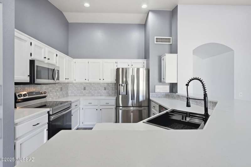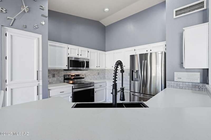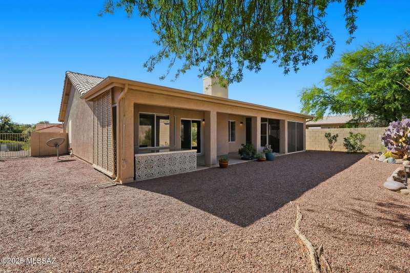 Welcome to this beautifully remodeled 2BD/2BA, (1600 sq ft) patio home located in the highly sought-after SaddleBrooke 55+ active adult community. Step inside to find a tastefully updated interior featuring a separate living room and family room, offering multiple spaces to relax or entertain. The inviting family room showcases a cozy gas fireplace and seamlessly flows into the dining area and chef's kitchen perfect for hosting or enjoying quiet evenings at home. The spacious owner's suite offers a luxurious ensuite bath with double vanities, a walk-in shower, and a generous walk-in closet. Split floor plan provides added privacy for guests, giving everyone their own comfortable retreat. Enjoy Arizona living at its finest with an expansive covered patio, large low-maintenance yard,