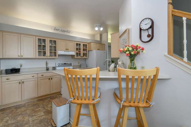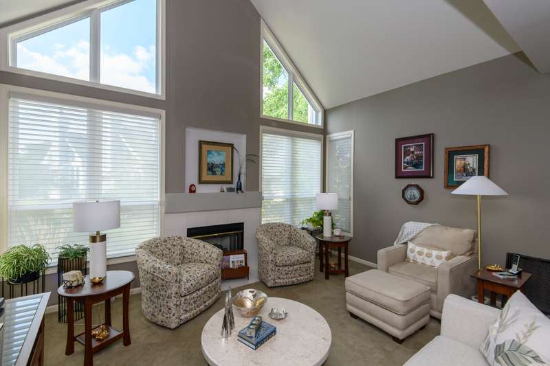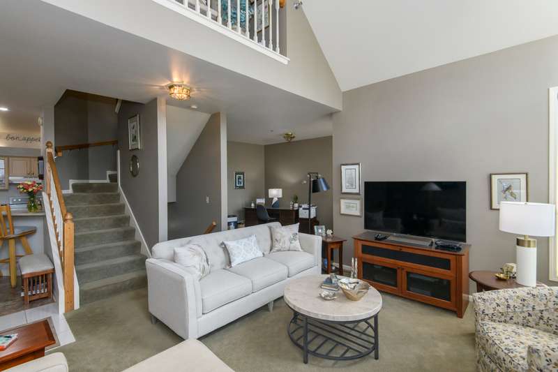 Welcome home! This stunning 2-bedroom Waterford Square condo offers style and comfort. The open-concept kitchen and stunning Great Room featuring soaring cathedral ceilings, abundant windows, and a cozy gas fireplace. The Kitchen includes a breakfast bar and ample cabinetry. Upstairs you'll find a spacious Primary Suite with a huge walk-in closet and updated bath with dual vanities, plus a large 2nd bedroom and loft- perfect for a home office. Enjoy your private tree-lined entrance and zen extra-large patio for morning coffee or sunset dinners. Extras include first-floor laundry, full basement, and pet-friendly living. Condo fees include water/sewer. Conveniently close to parks, shopping, and more!
