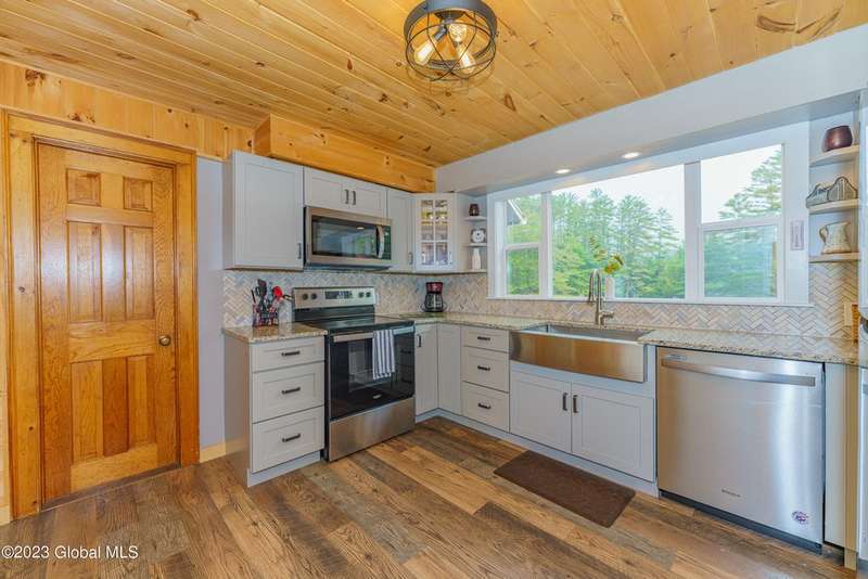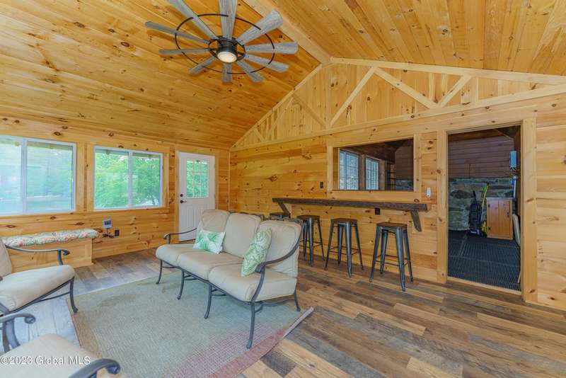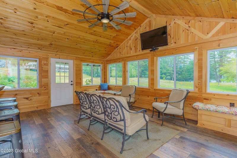 Experience rustic charm and modern comfort in this beautifully renovated farmhouse with 173 feet of direct lakefront and a private beach. Ideal as a year-round home, seasonal retreat, or income-generating rental, it features 5 spacious bedrooms and 2 full baths. The large backyard includes a versatile two-season outbuilding?great for parties or intimate weddings. Enjoy paddle boards, kayaks, a rowboat, docks, and more. A smaller structure offers potential as a guest house or studio. Close to Gore Mountain, Lake Placid, Lake George, hiking, snowmobiling, and shopping. Sold fully furnished?just bring your suitcase and enjoy lake life!