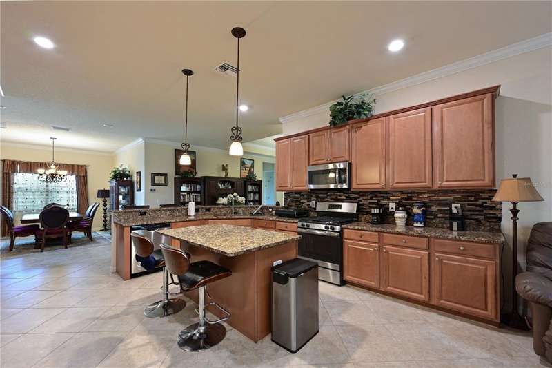 Discover luxury living in the picturesque, gated community of Bridgewater in Lakewood Ranch, Florida. This meticulously maintained home blends comfort, style, and the best of the Florida lifestyle.As you arrive, you'll be greeted by lush landscaping, a 3-car garage, and an elegant brick paver driveway and walkway. Step inside and you'll find an inviting open layout featuring 10' ceilings, tray ceilings, and crown molding throughout, setting the tone for timeless elegance.The gourmet kitchen is the heart of the home, complete with granite countertops, GE stainless steel appliances including a gas stove, solid wood cabinetry, and a spacious pantry. An eat-in breakfast area flows seamlessly into the living space, making it ideal for both everyday living and entertaining.From the living area, large sliding doors open onto a spacious screened lanai with serene water views-the perfect backdrop for morning coffee or evening gatherings.This split floor plan offers privacy and functionality. The primary suite is a true retreat with tray ceilings, crown molding, a massive walk-in closet, and a spa-like bathroom featuring dual vanities, a soaking tub, and a walk-in shower. Three additional bedrooms provide comfort for family or guests. The outside security camaras will stay with the property.Living in Bridgewater means enjoying maintenance-free landscaping in a community celebrated for its curb appeal and welcoming atmosphere. Residents enjoy parks, playgrounds, walking trails, and lakes, plus a vibrant social scene with clubs, outings, and events planned year-round.All of this is located in top-rated Lakewood Ranch school districts, just minutes from UTC Mall, outlet shopping, fine dining, championship golf courses, and some of the world's best beaches.This home is a must-see-schedule your private showing today! Occupancy Available March 2026