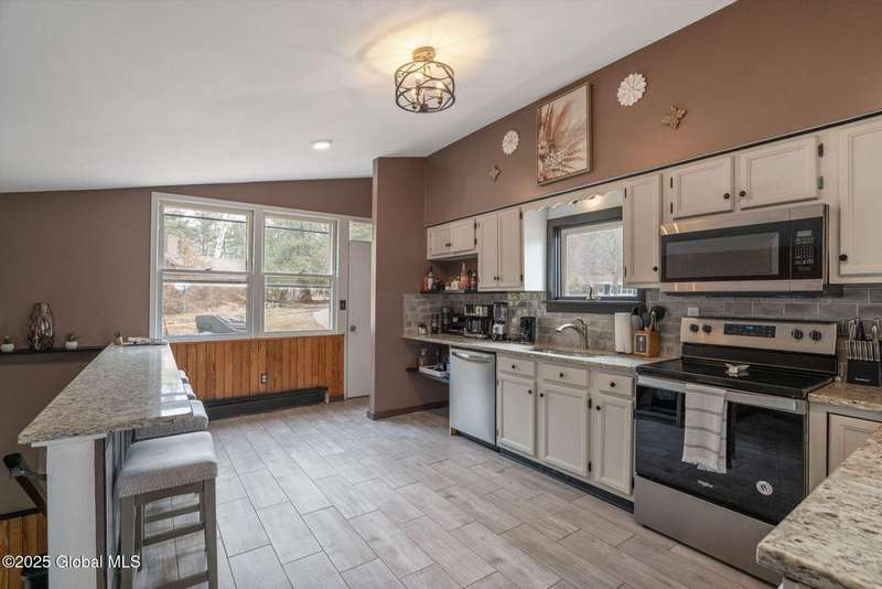 Discover Adirondack Living at Its Finest - 4A High Pines Terrace, Warrensburg, NYTucked on a quiet cul-de-sac, this peaceful retreat offers the perfect blend of seclusion and convenience. Featuring Very spacious Livingroom/dining room , 2 bedrooms, and 2 full baths, enjoy an open layout with a cozy fireplace, bright living spaces, and a well-appointed kitchen. Large windows frame beautiful wooded views. HOA includes Heat!! Completely Redone 2022 Includes Granite Countertops, Refinished Hardwood Floors Appliances, Remodeled both Bathroom, Ceramic tile floors, removed, painted complete!! Relax on the spacious deck or explore nearby Lake George, hiking trails, and Gore Mountain. move-in-ready condition, this home is your year-round Adirondack escape. Agent is an owner.Agent is the owner.